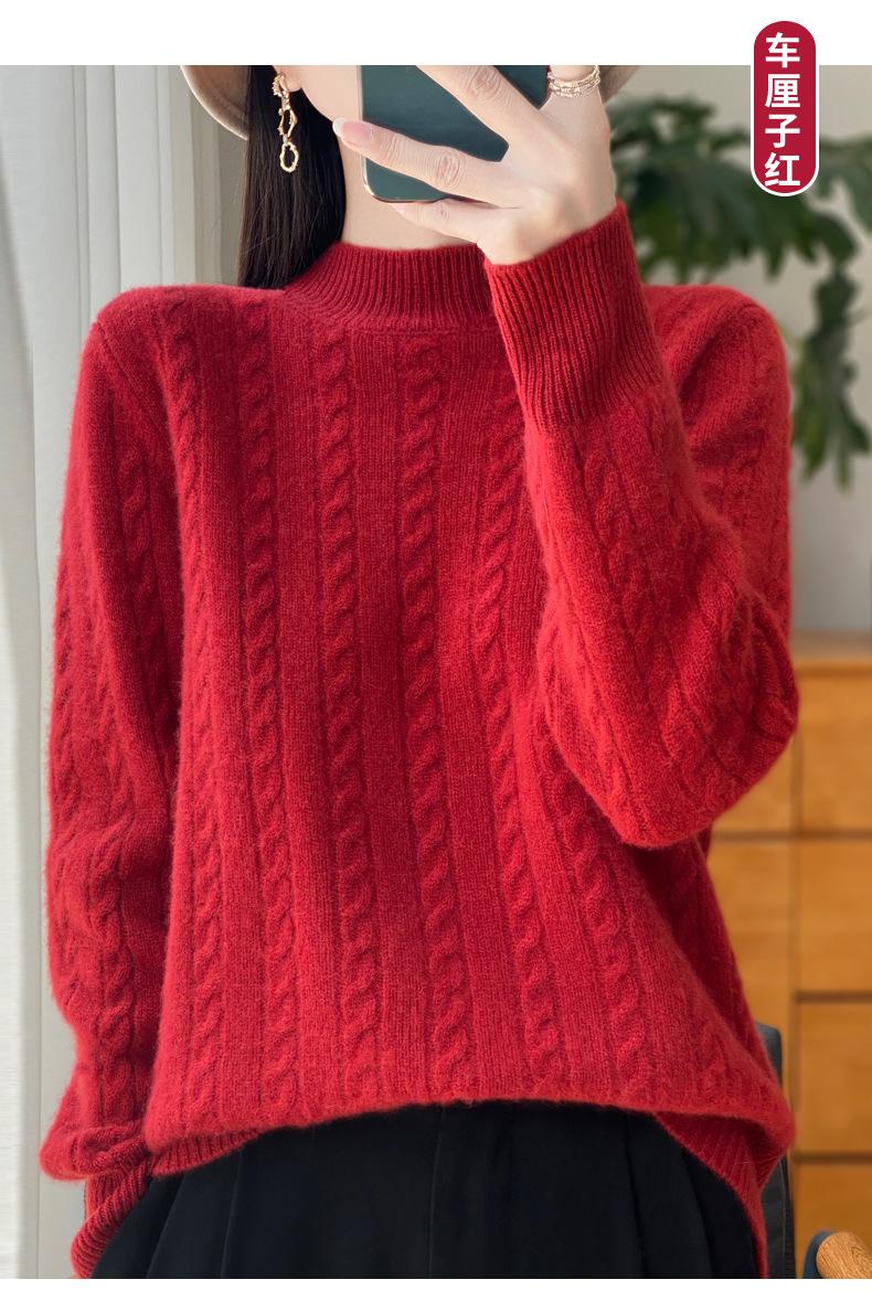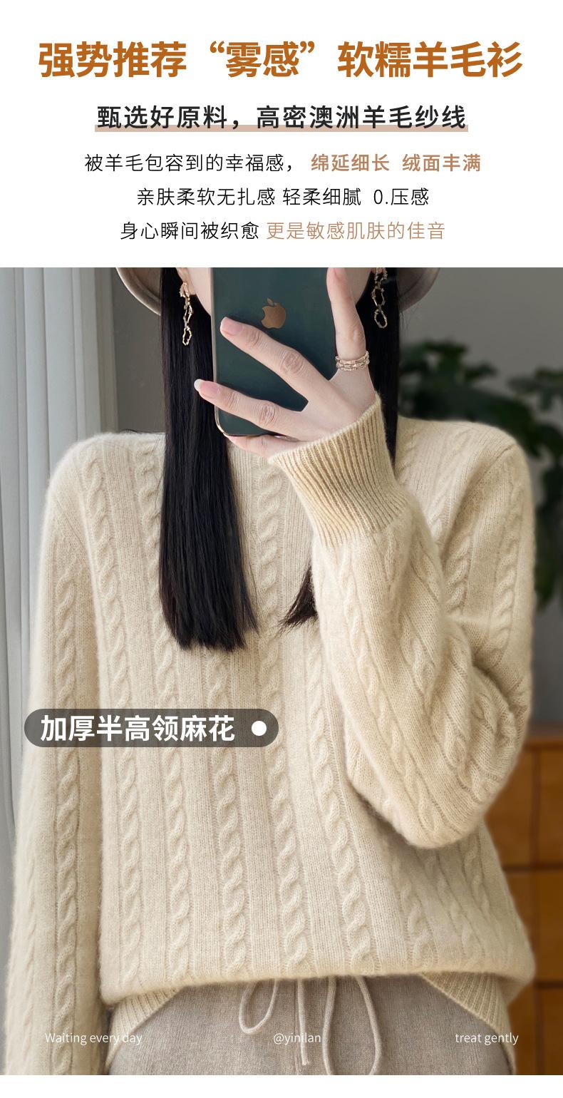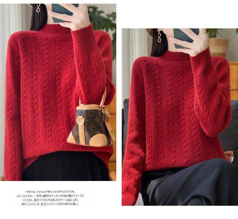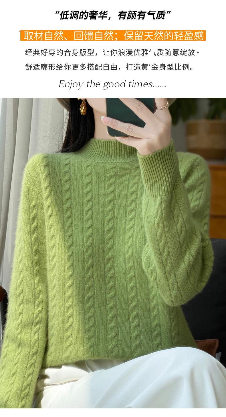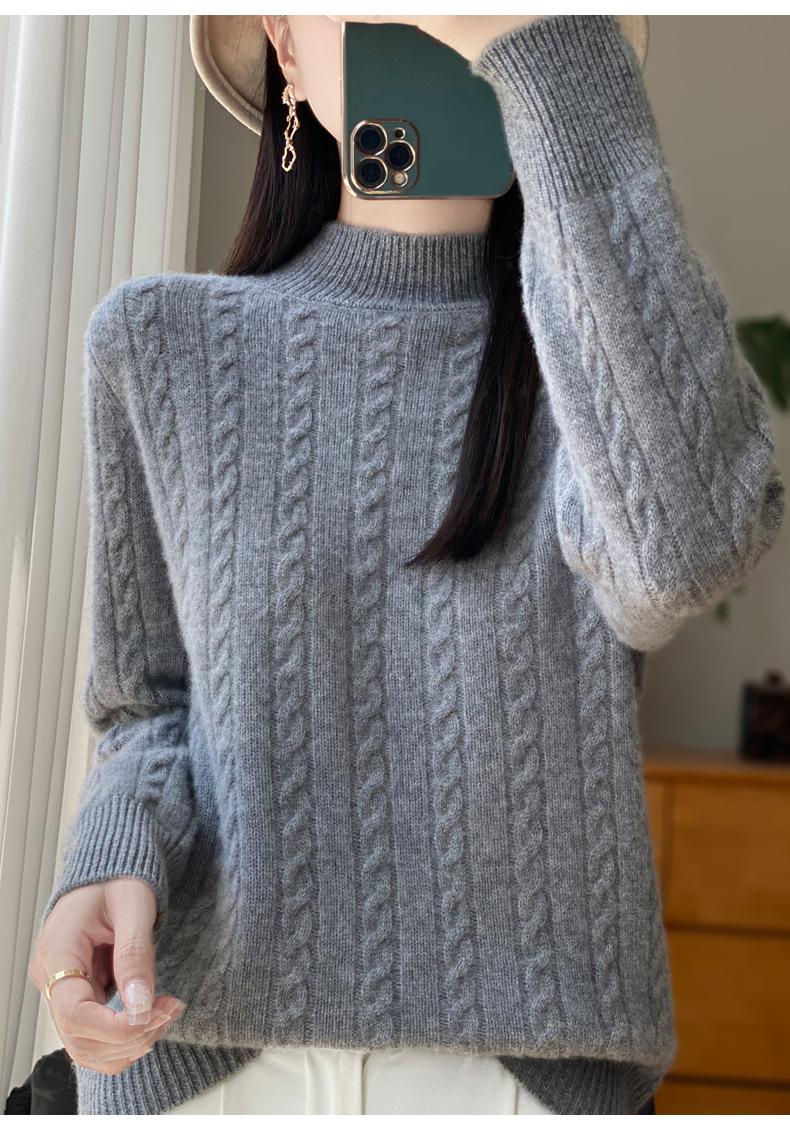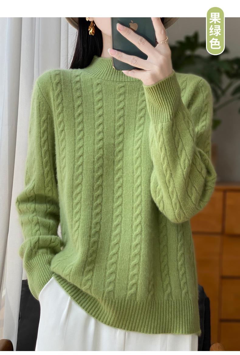 100% Lana Otoño e Invierno 2025 Nuevo Jersey de Cuello Alto Medio para Mujer Tejido de Trenzas Corto para Usar Debajo