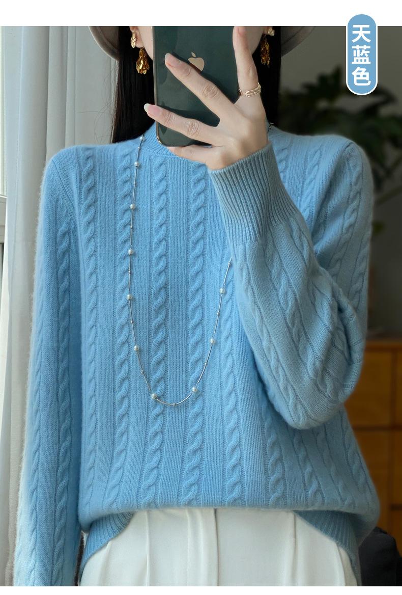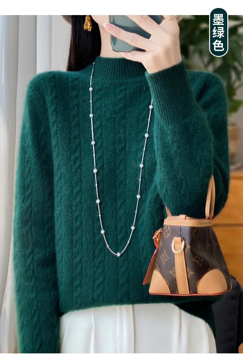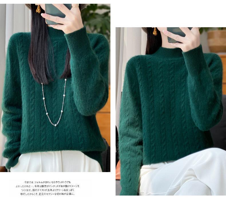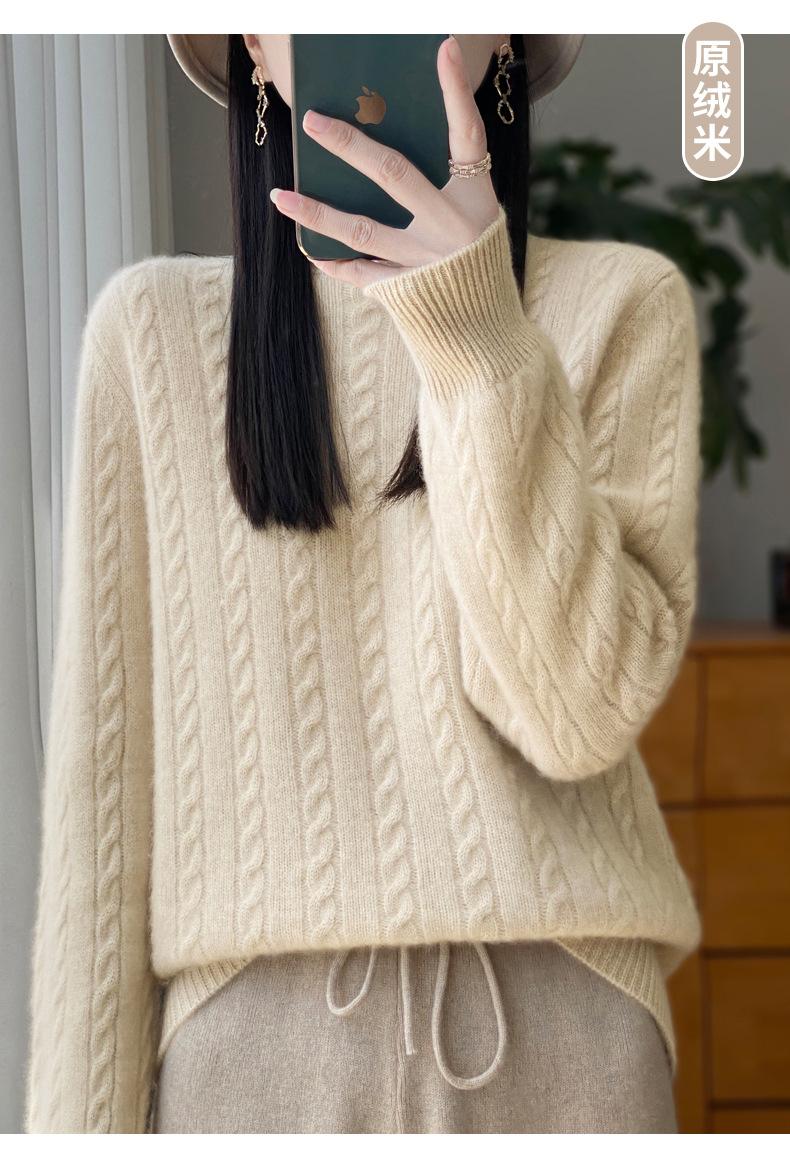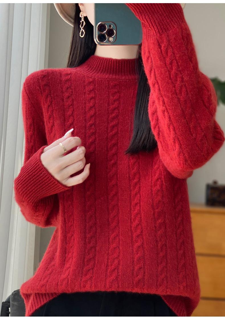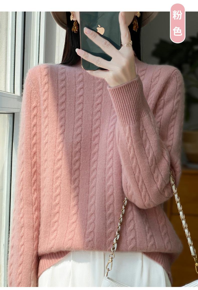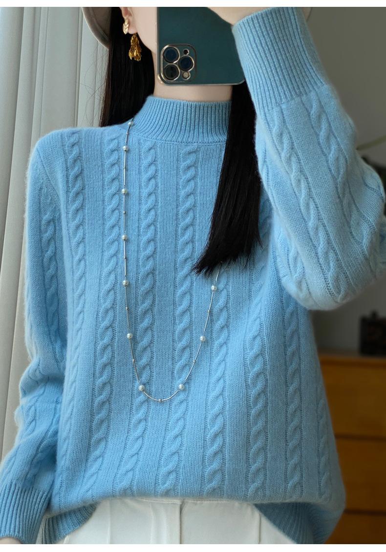 100% Lana Otoño e Invierno 2025 Nuevo Jersey de Cuello Alto Medio para Mujer Tejido de Trenzas Corto para Usar Debajo