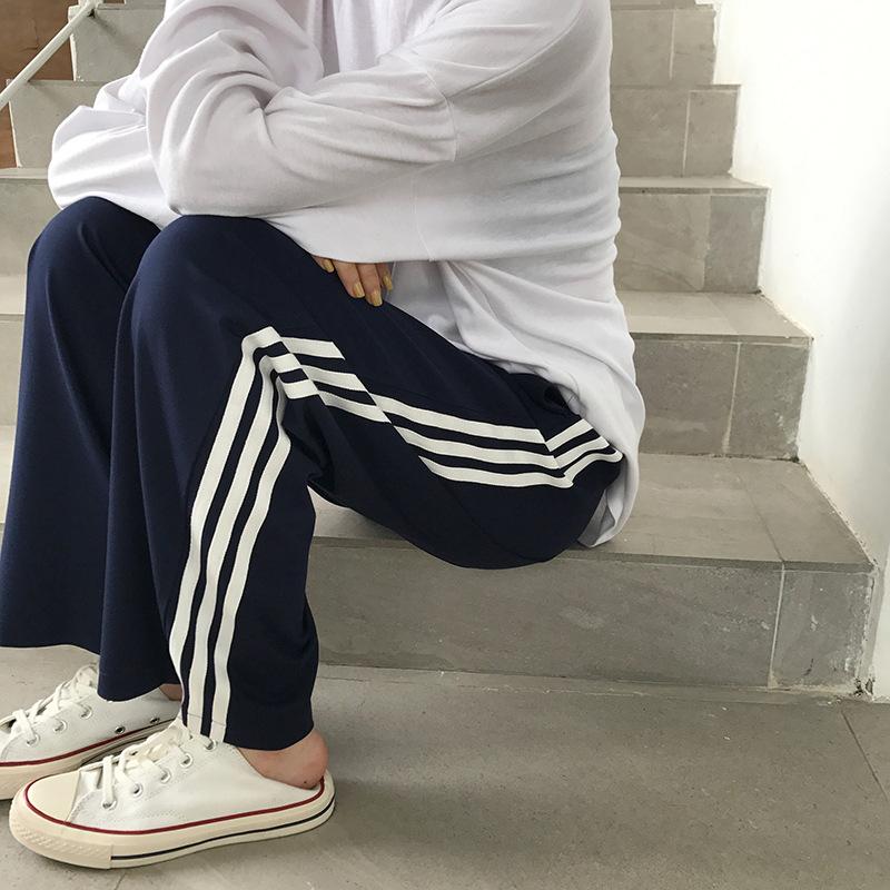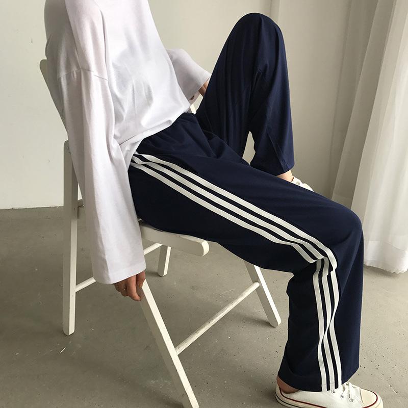 Pantalones deportivos casuales a rayas 2025 para mujer, modernos, finos, adelgazantes, de pierna ancha y con múltiples combinaciones, pantalones rectos pequeños.