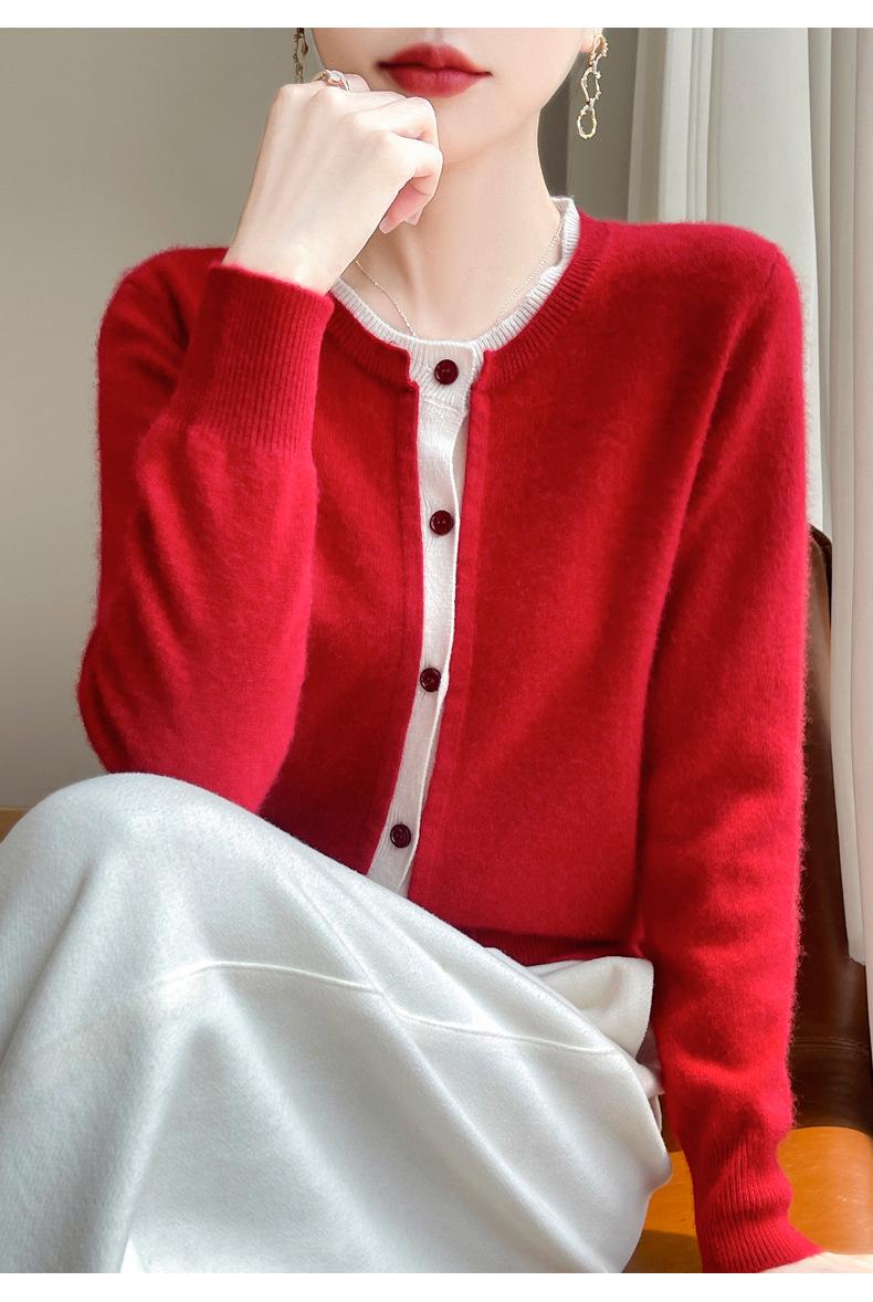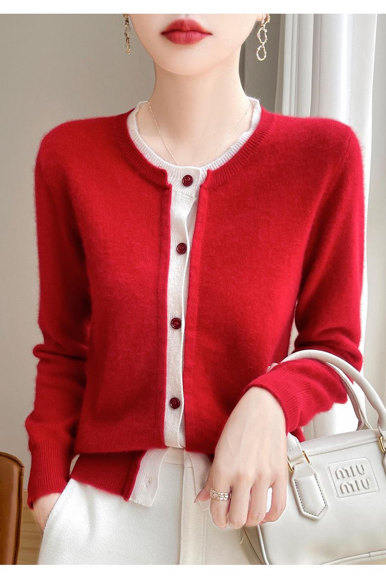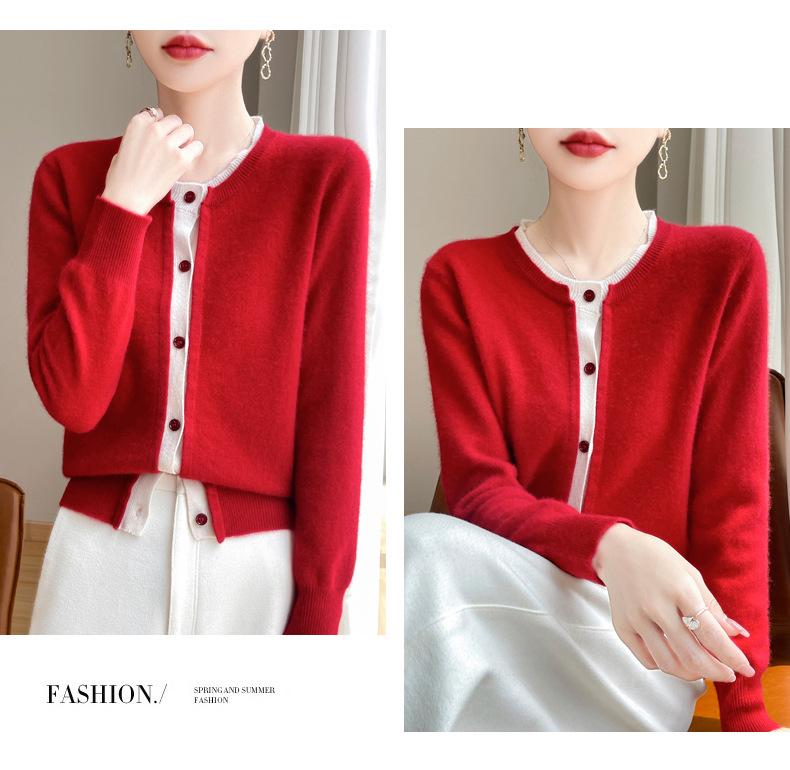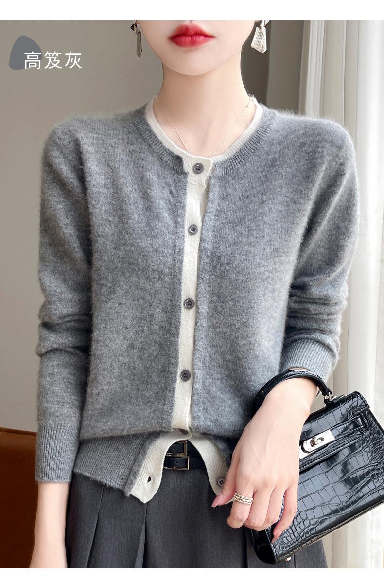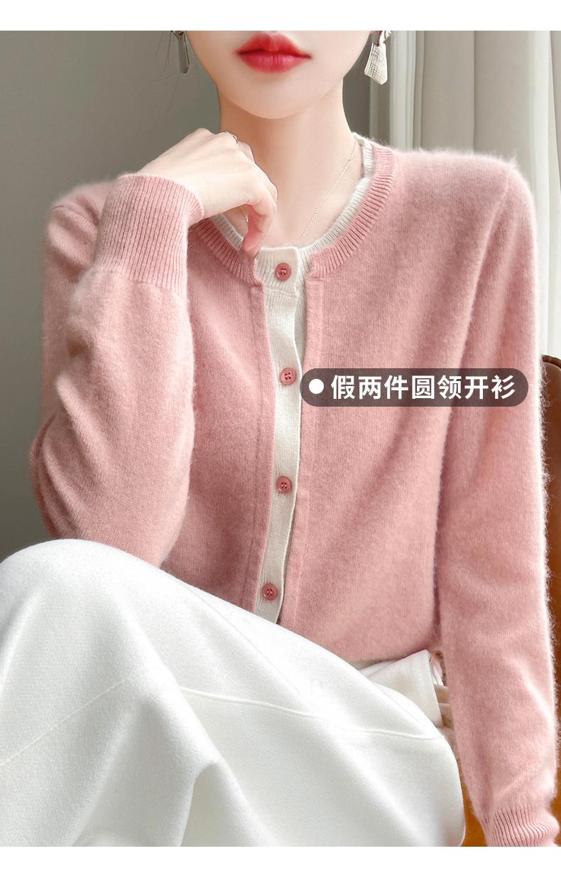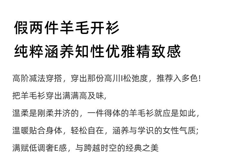 Cárdigan de punto de dos piezas falso para mujer, otoño e invierno 2024, 100% lana pura, suave y encerado, diseño de abrigo superior Sense