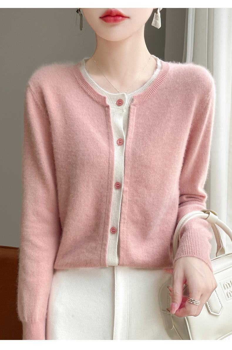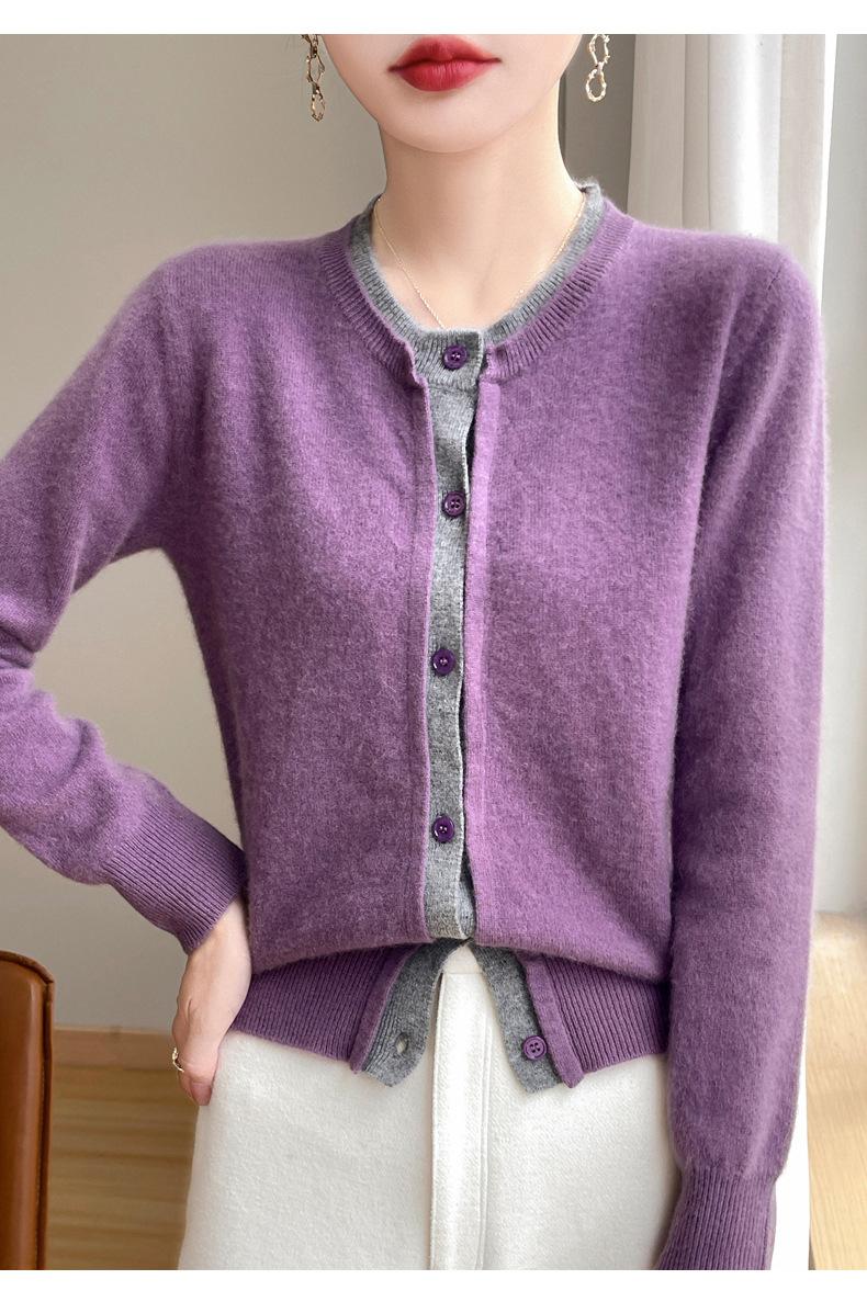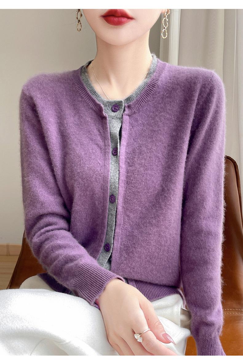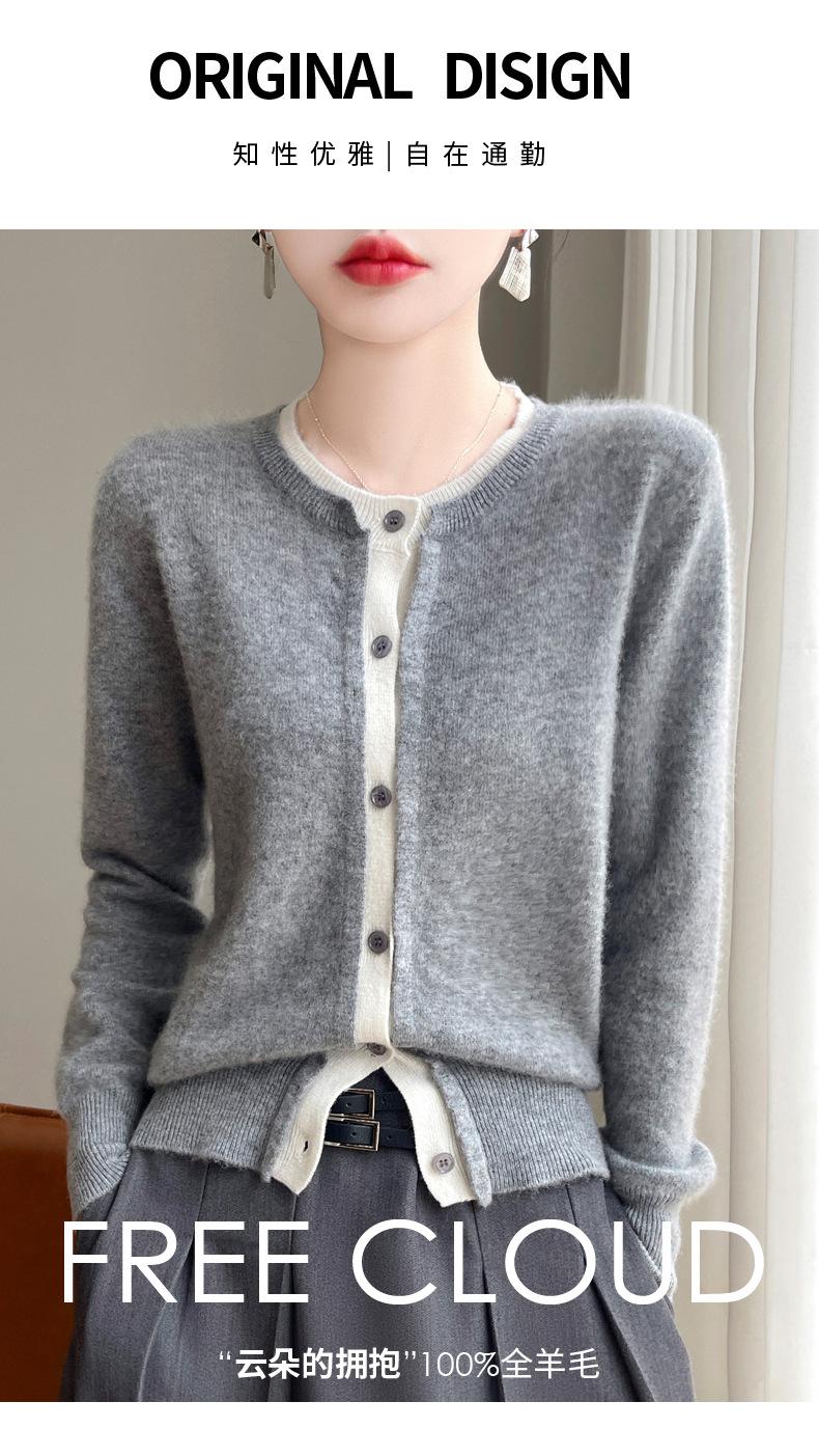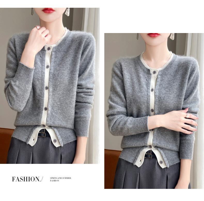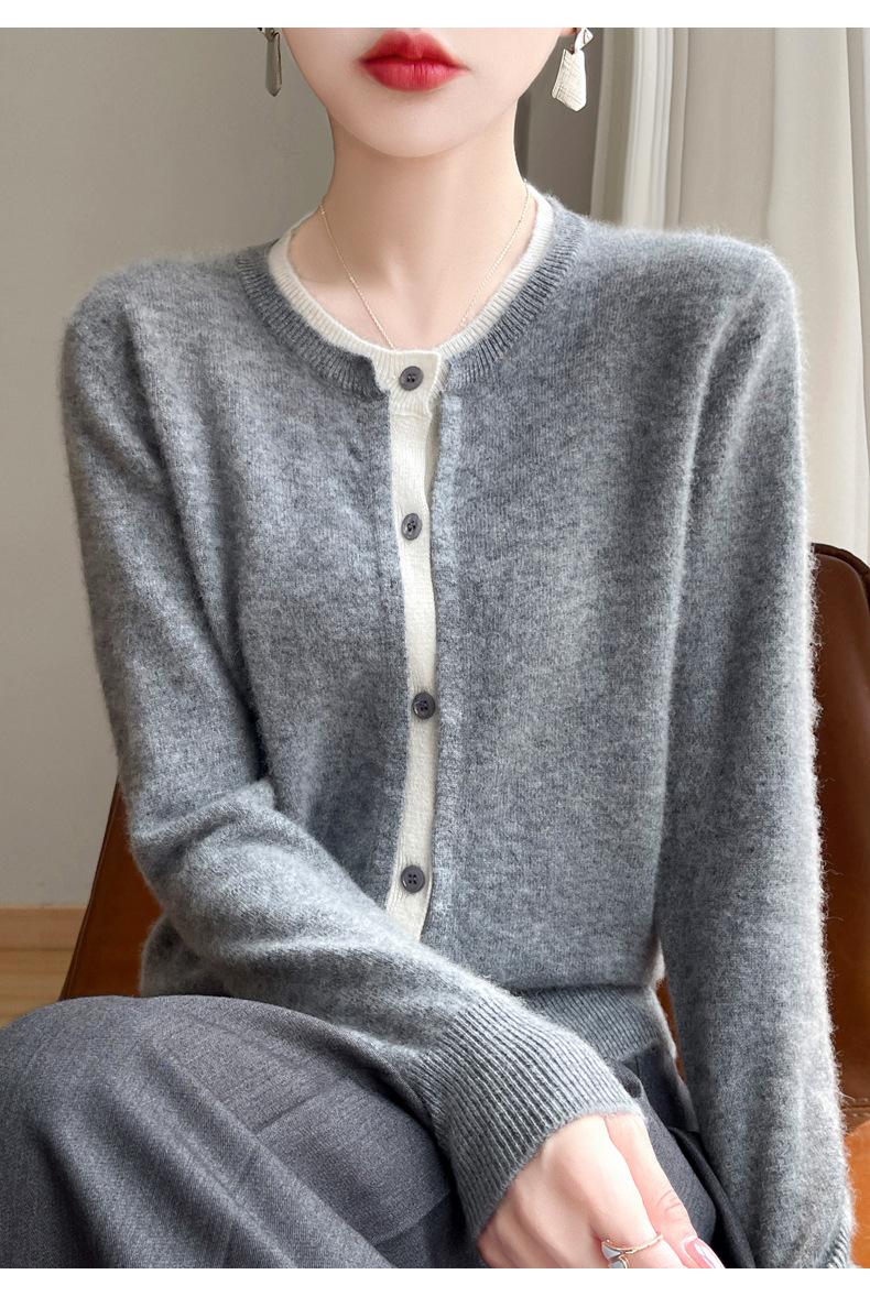 Cárdigan de punto de dos piezas falso para mujer, otoño e invierno 2024, 100% lana pura, suave y encerado, diseño de abrigo superior Sense