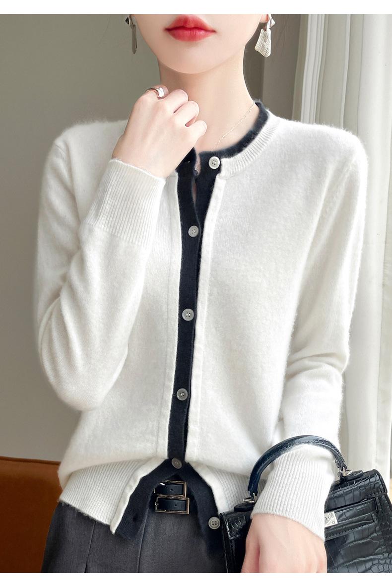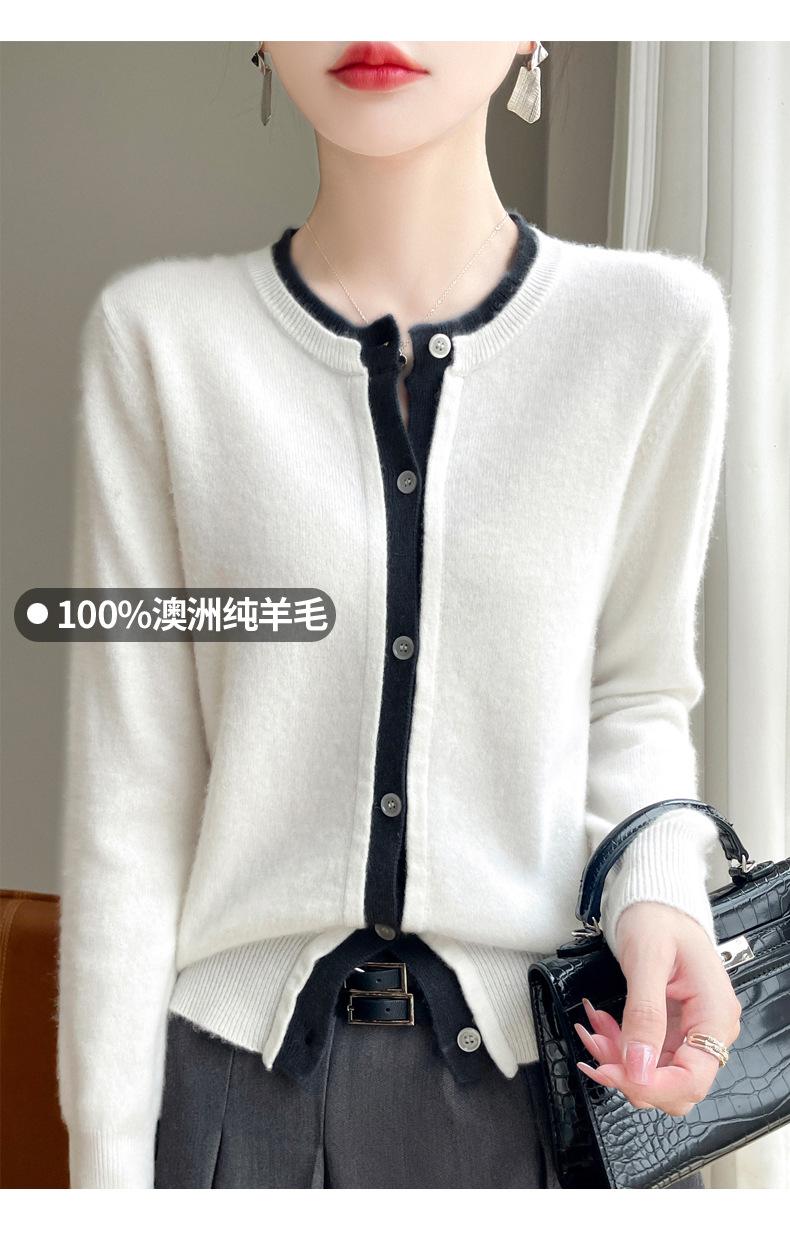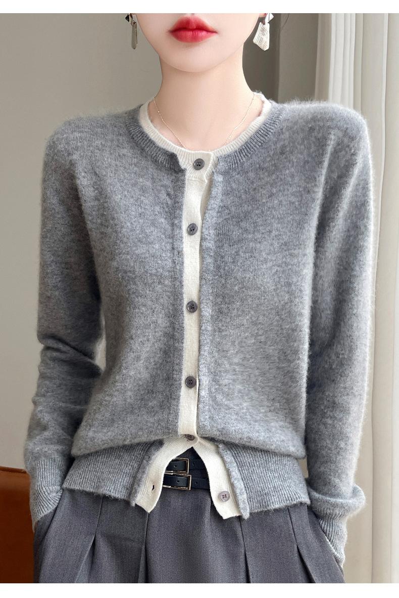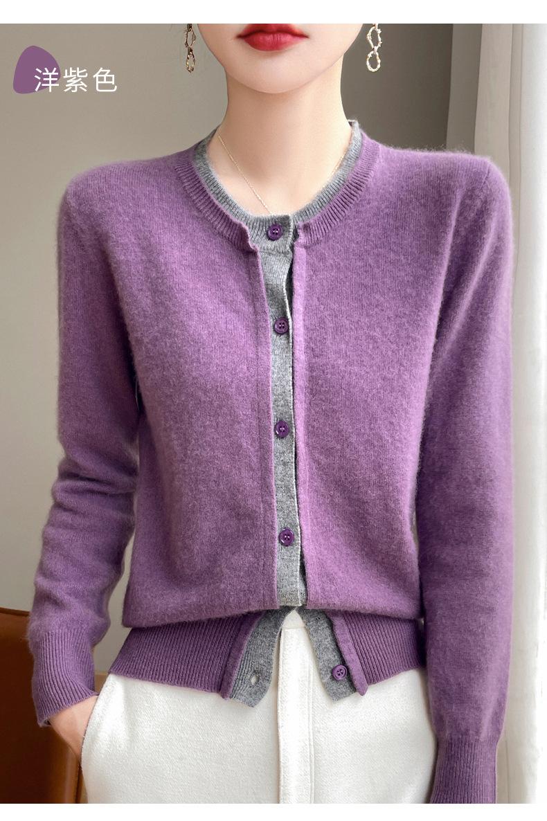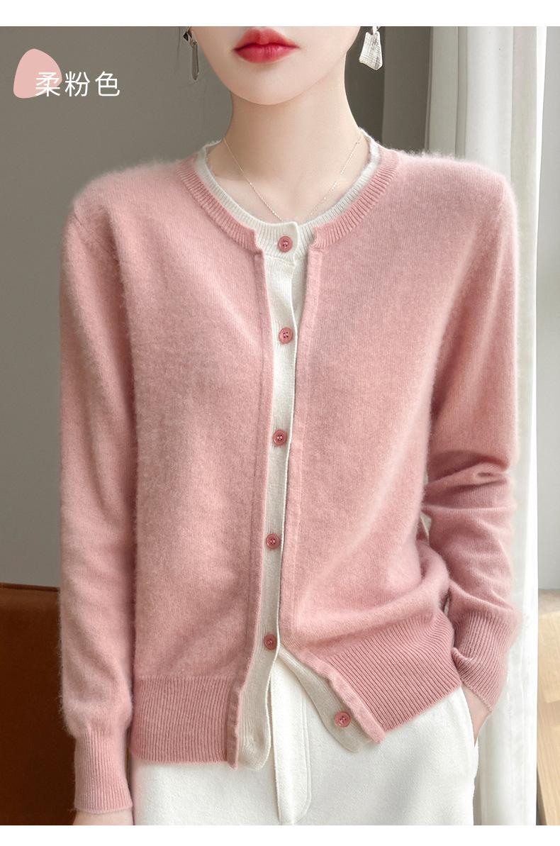 Cárdigan de punto de dos piezas falso para mujer, otoño e invierno 2024, 100% lana pura, suave y encerado, diseño de abrigo superior Sense