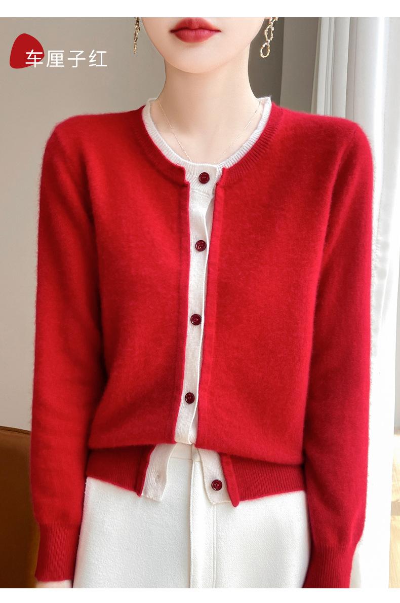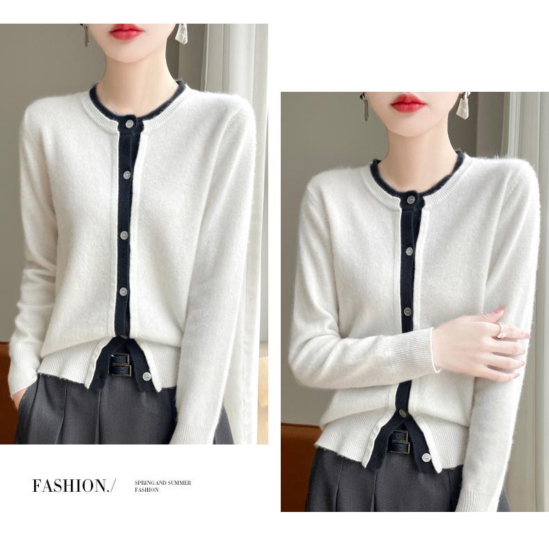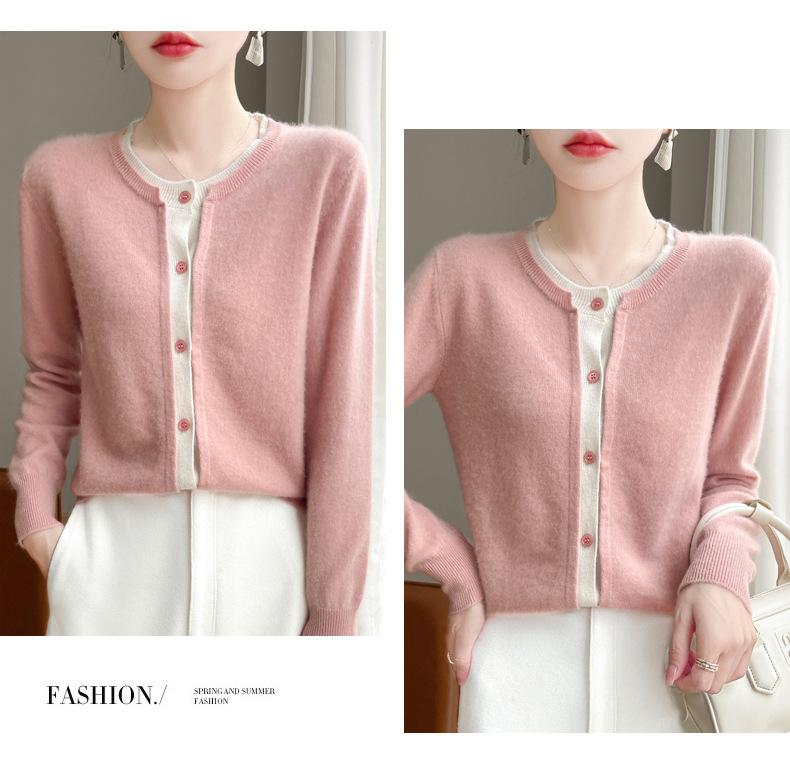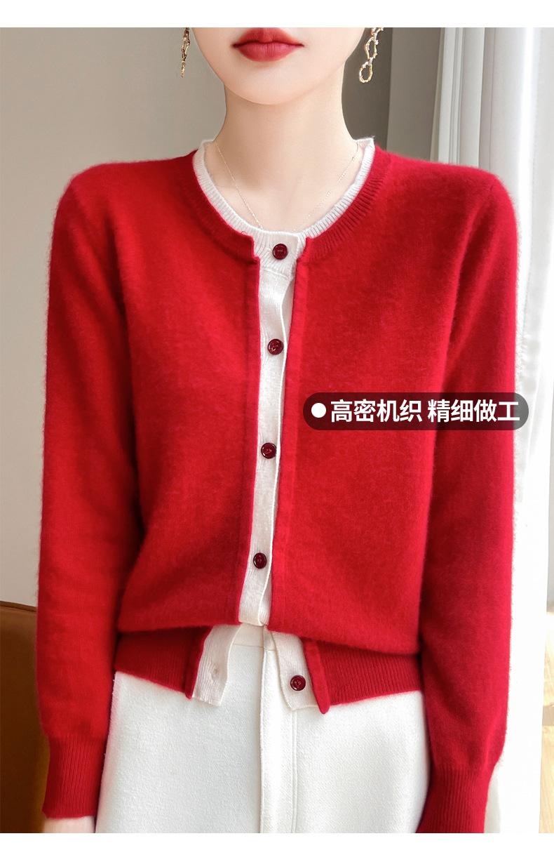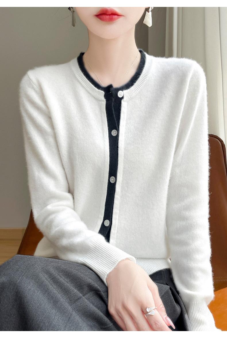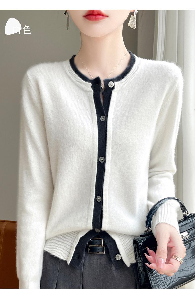 Cárdigan de punto de dos piezas falso para mujer, otoño e invierno 2024, 100% lana pura, suave y encerado, diseño de abrigo superior Sense