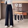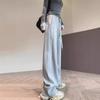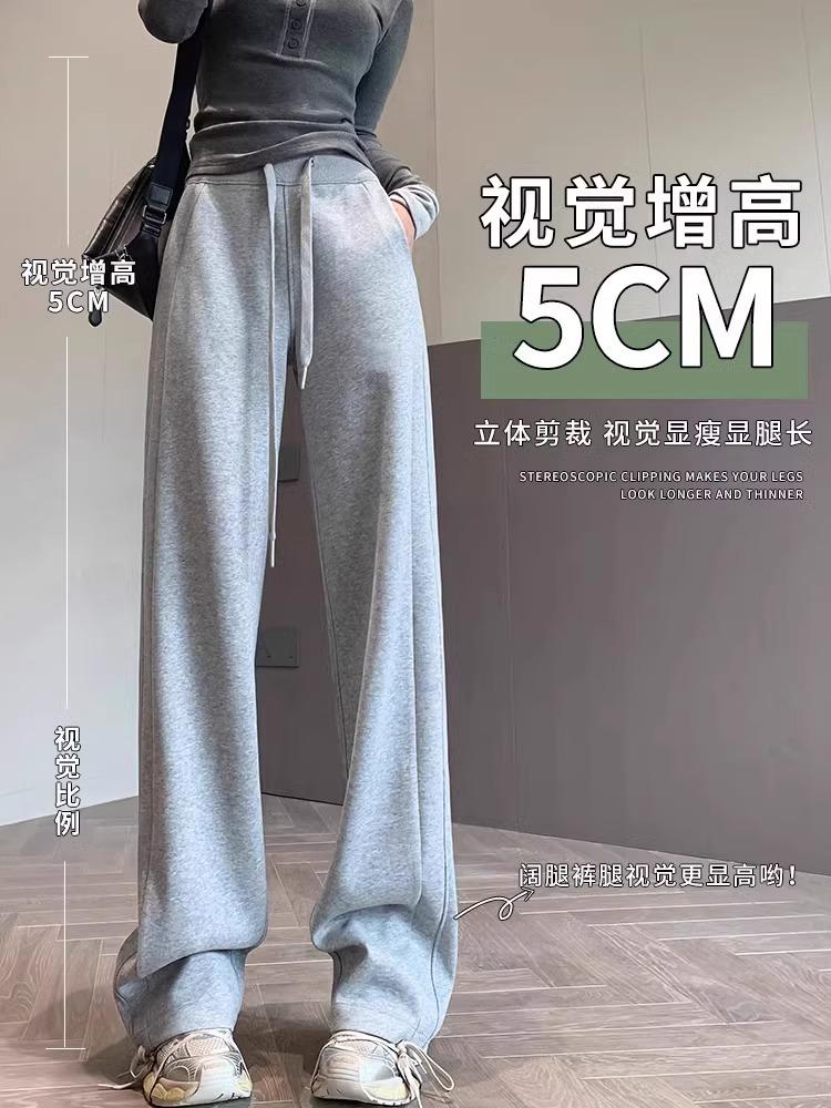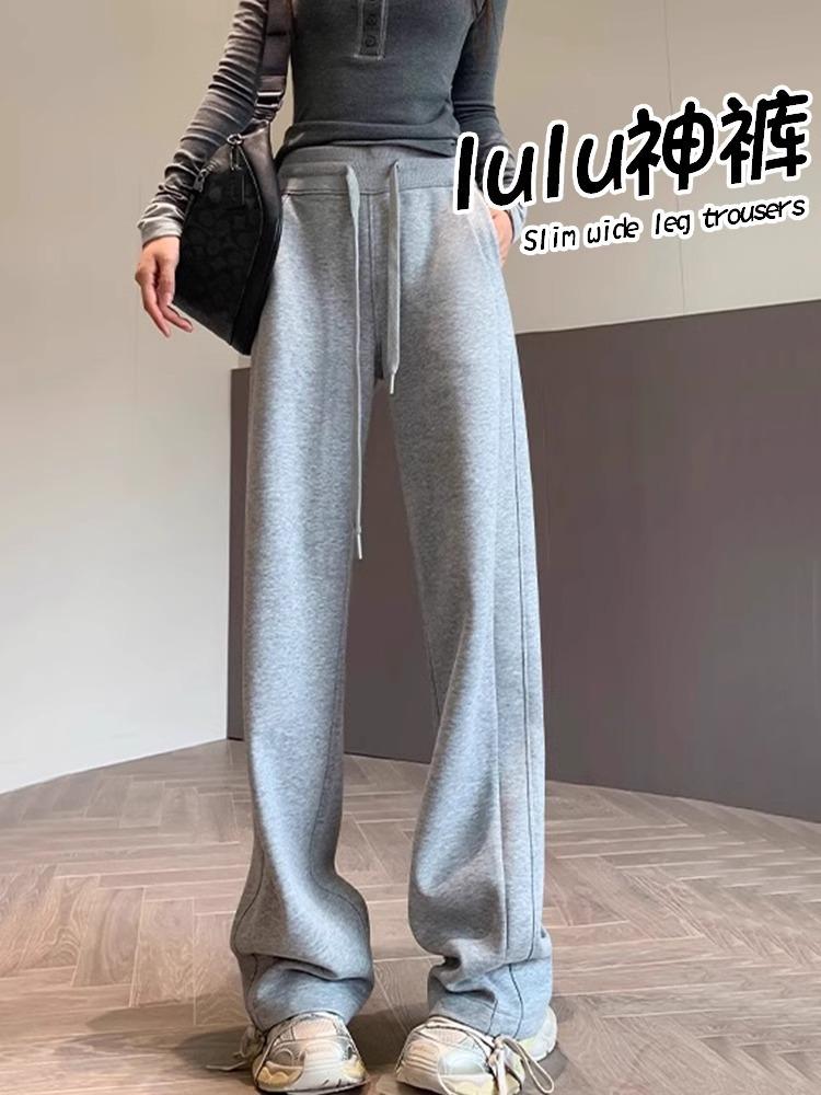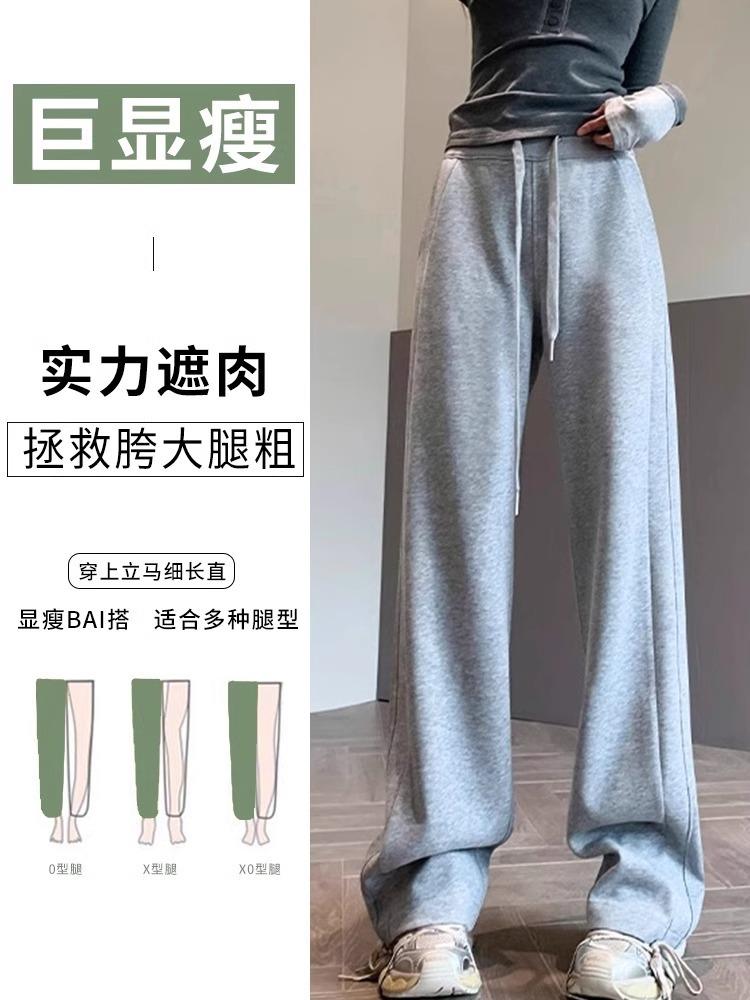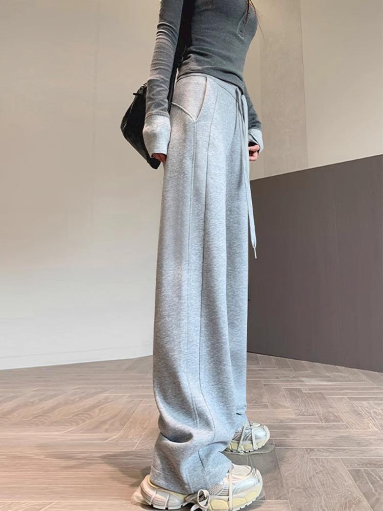 Pantalones Banana Grises de Gama Alta Estrechos de Pierna Ancha para Mujer Primavera y Otoño 2025 Nuevos Pantalones Deportivos de Cintura Alta Drapeados de Pierna Recta para Forma de Pera