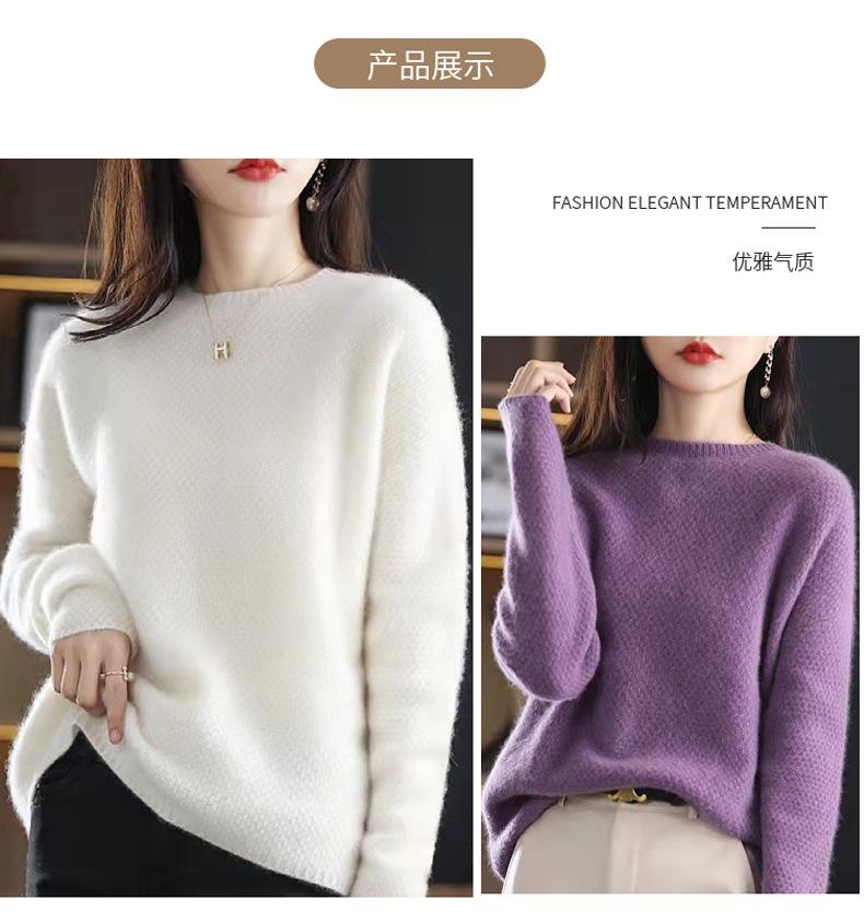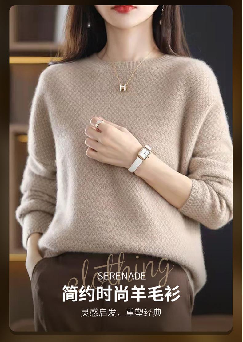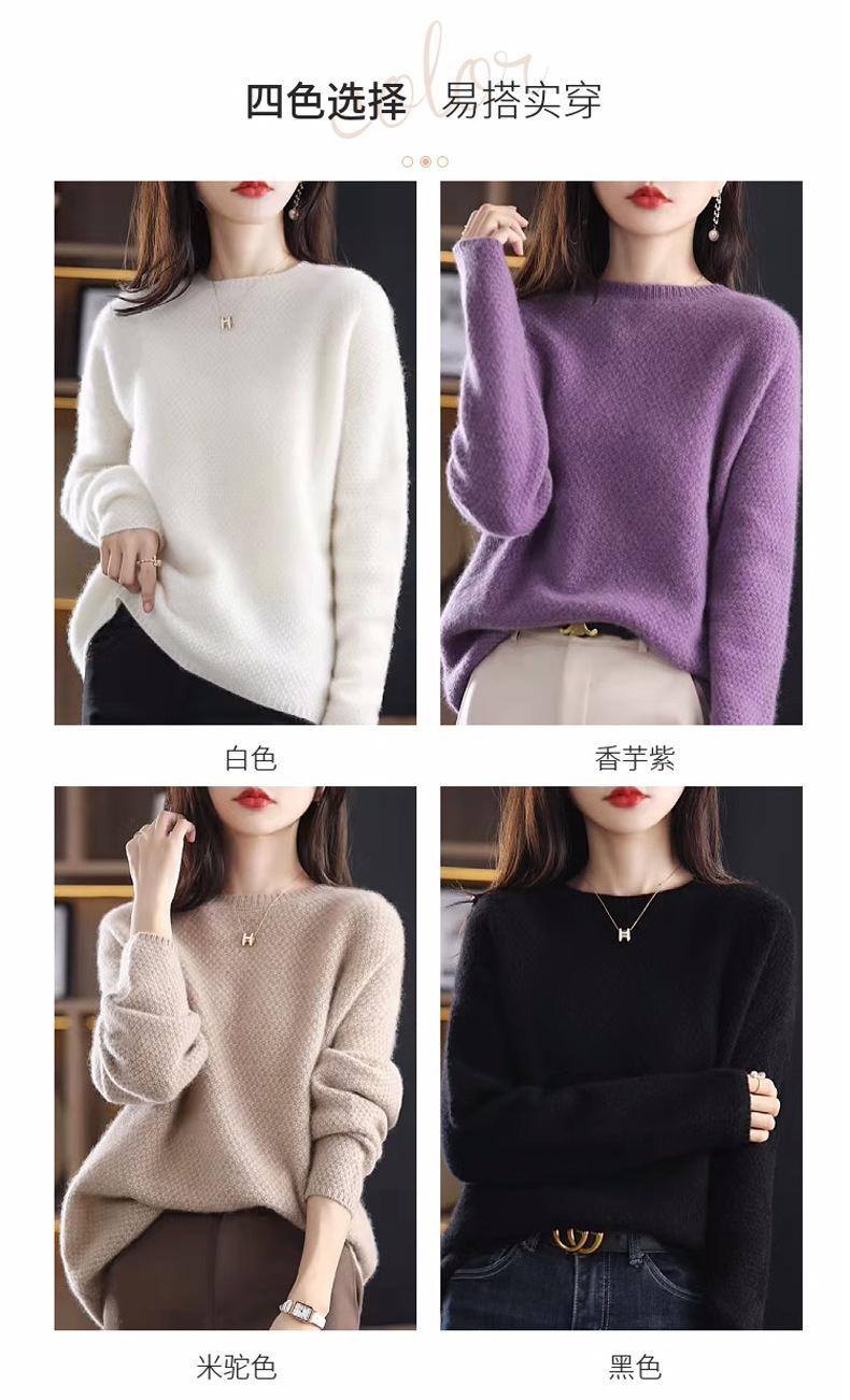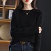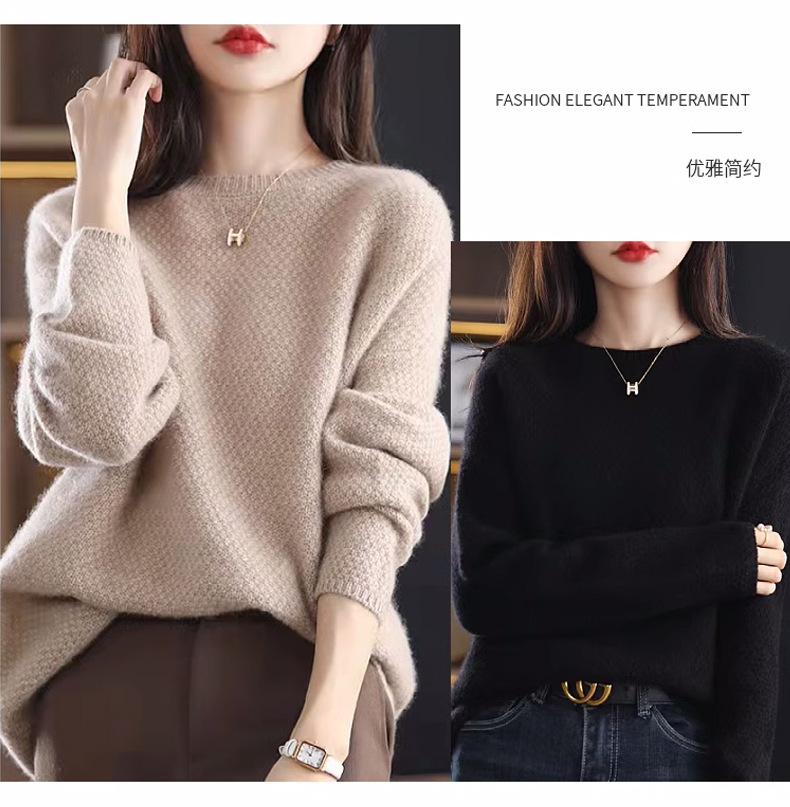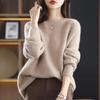 Suéter de otoño e invierno para mujer, cuello alto, cuello redondo, moda, suelto, suave, ceroso, exterior, tejido, base interior, suéter de lana pura.