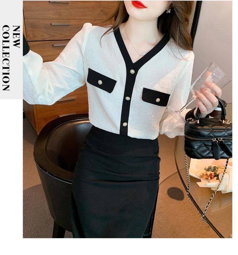 Camisa Temperamento Mujer Otoño 2024 Nuevo Top de Manga Larga Estilo Francés Chic Camisa Slim Tendencia