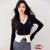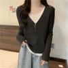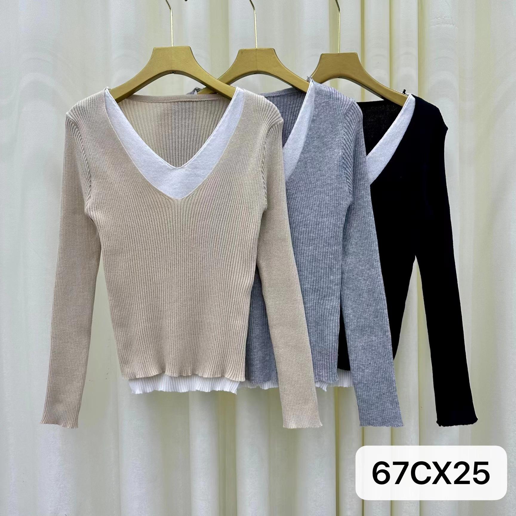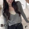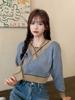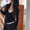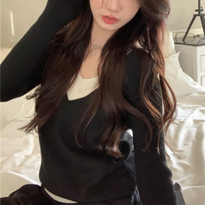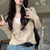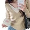 Suéter de punto de dos piezas con cuello en V y costura falsa para mujer, estilo coreano, top informal ajustado para otoño e invierno de 2024