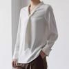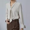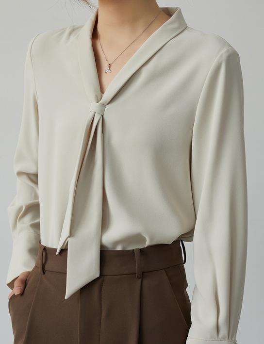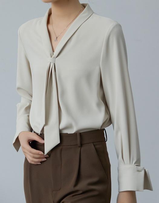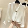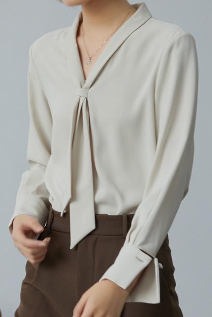 Camisa Nueva de Chifón Blanco 2024 para Mujer de Manga Larga con Tirantes Cuello en V Elegante Profesional para Mujer Top de Primavera y Otoño