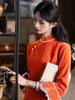 Otoño 2024 Nuevo Cheongsam de manga larga mejorado República de China Retro Joven Estilo Chino Vestido de manga de cuerno blanco Mujeres