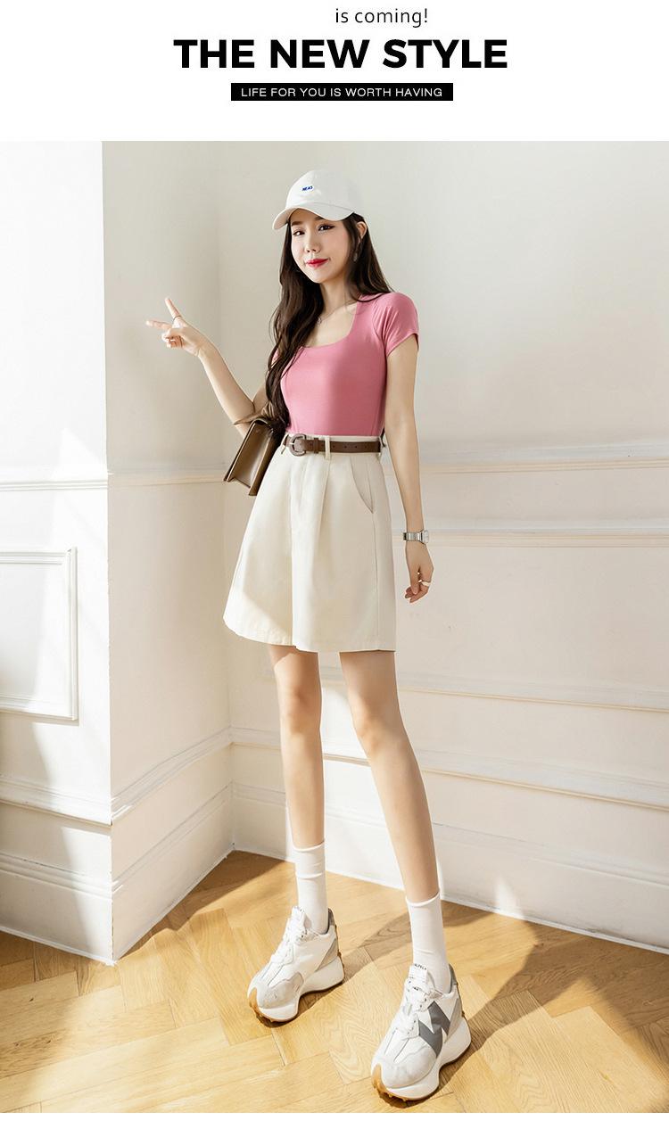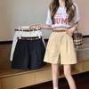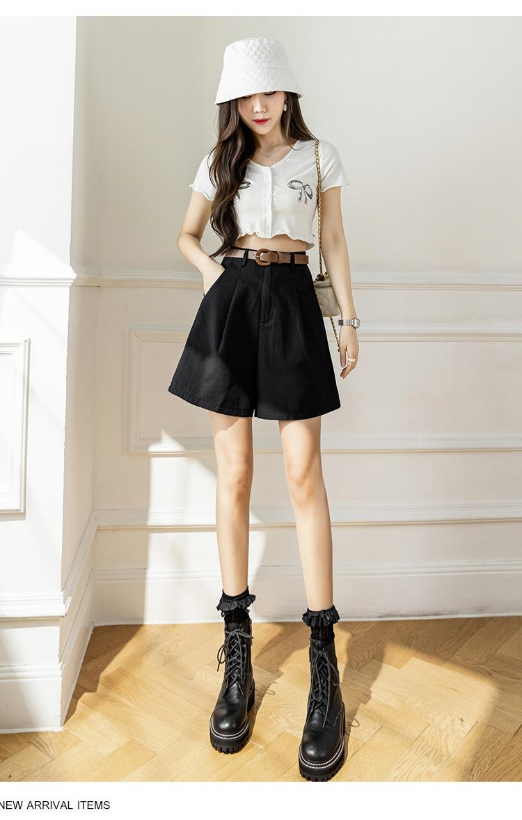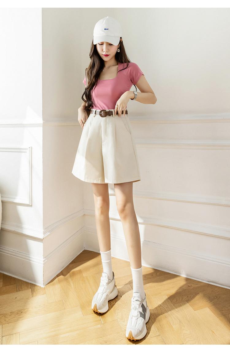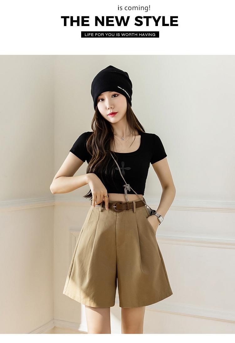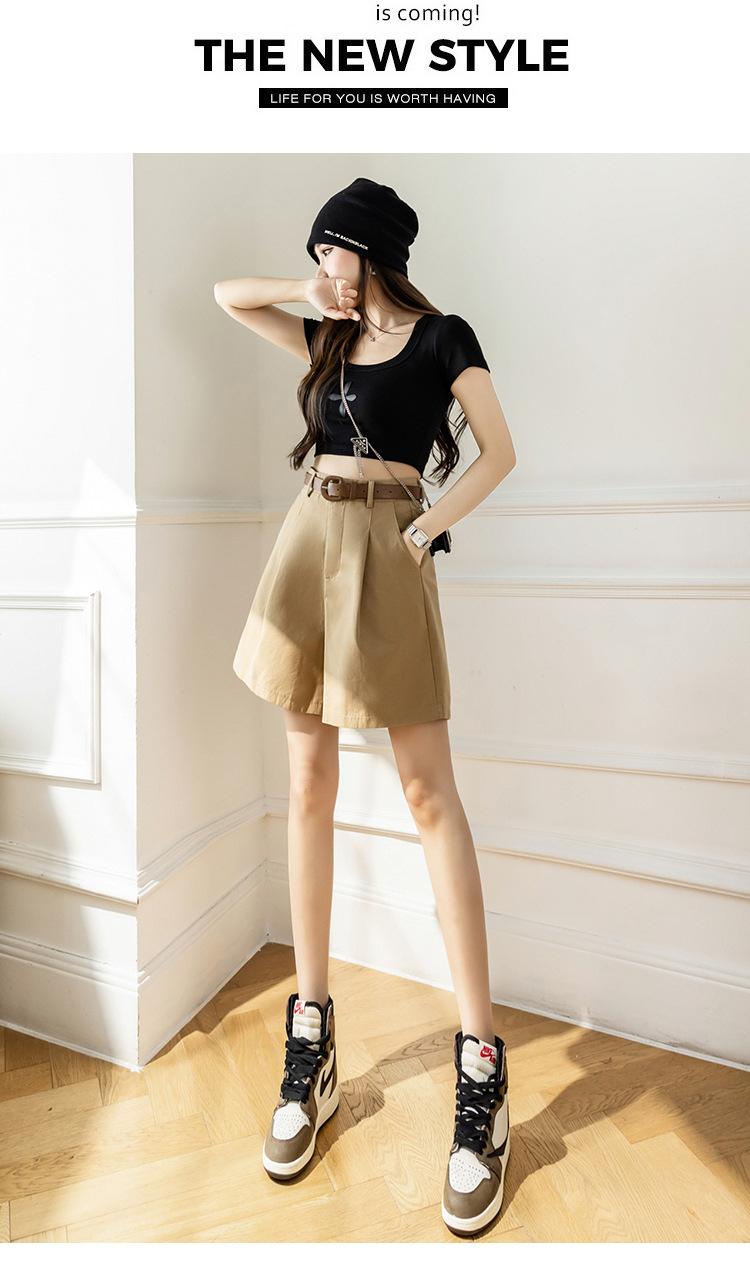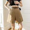 Pantalones Cargo para Mujer 2025 Verano Nuevo Cintura Alta 4 Puntos Pantalones Casuales Sueltos Línea A Pantalones de Pierna Ancha con Cinturón Pantalones Rectos de 5 Puntos