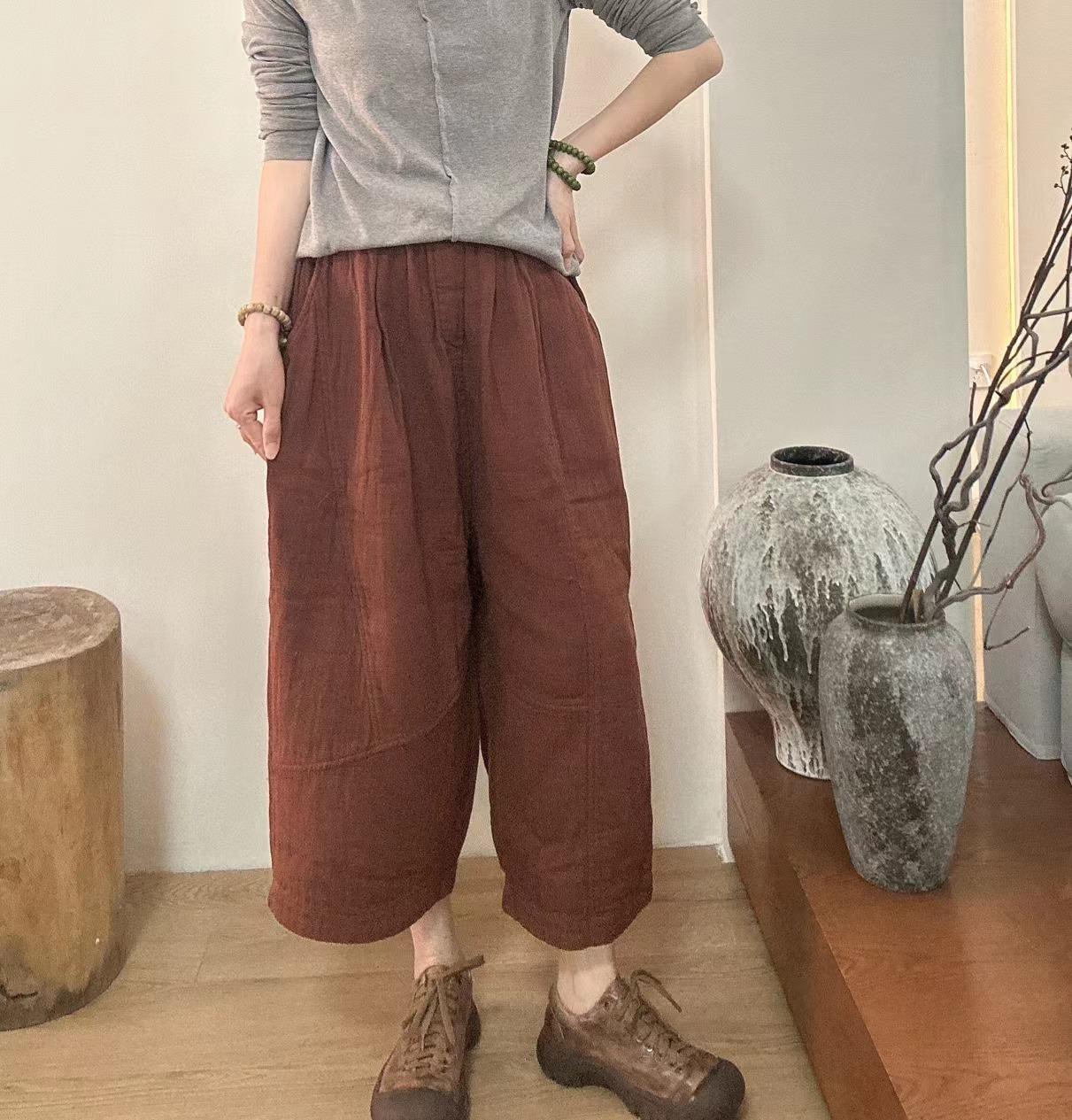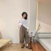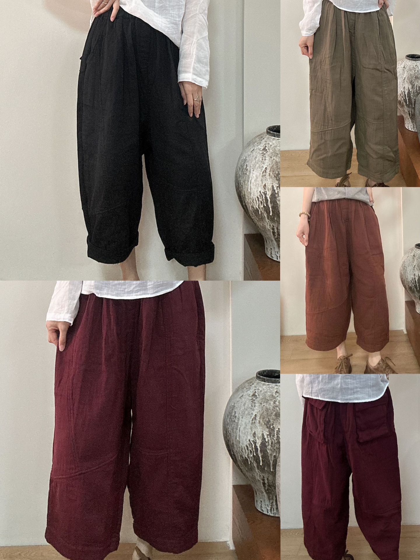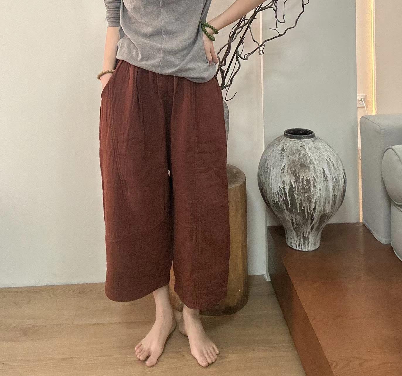 Otoño 2024 Nuevo estilo artístico Pantalones rectos de sarga con cintura elástica y doble hilo Pantalones casuales de color sólido adelgazantes