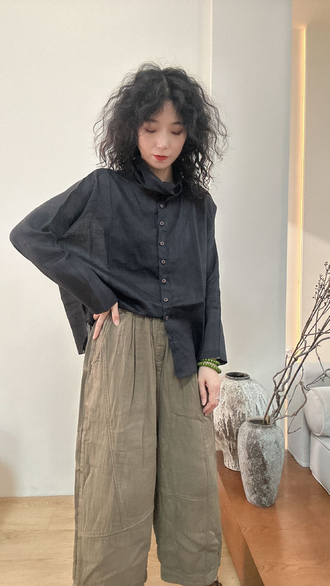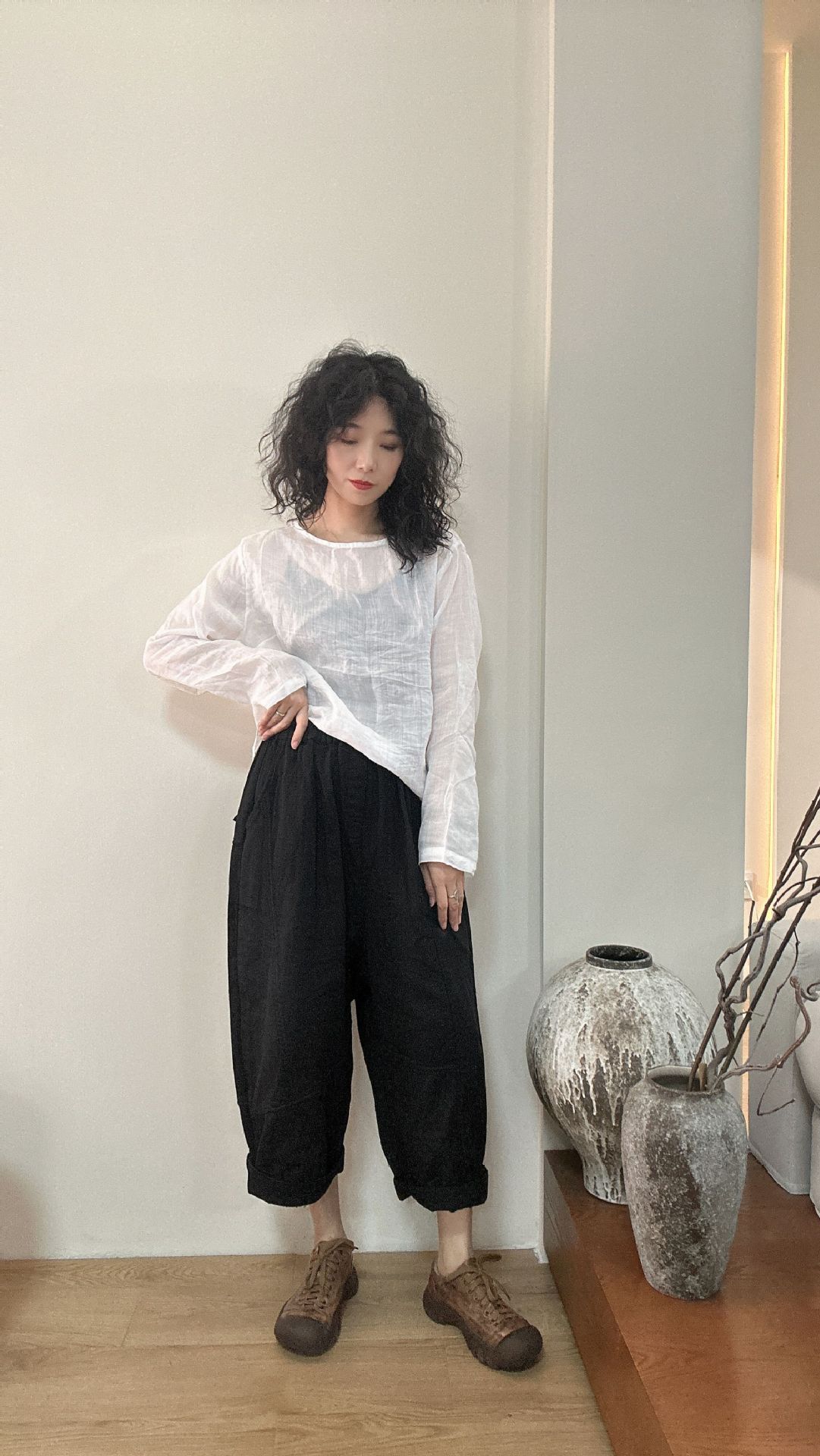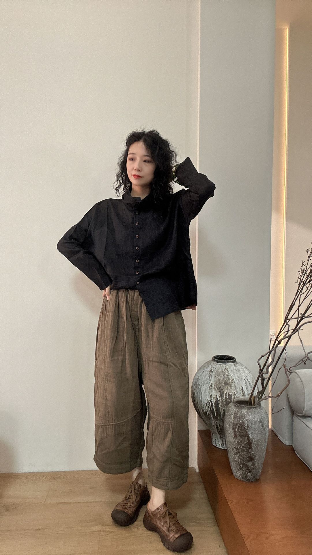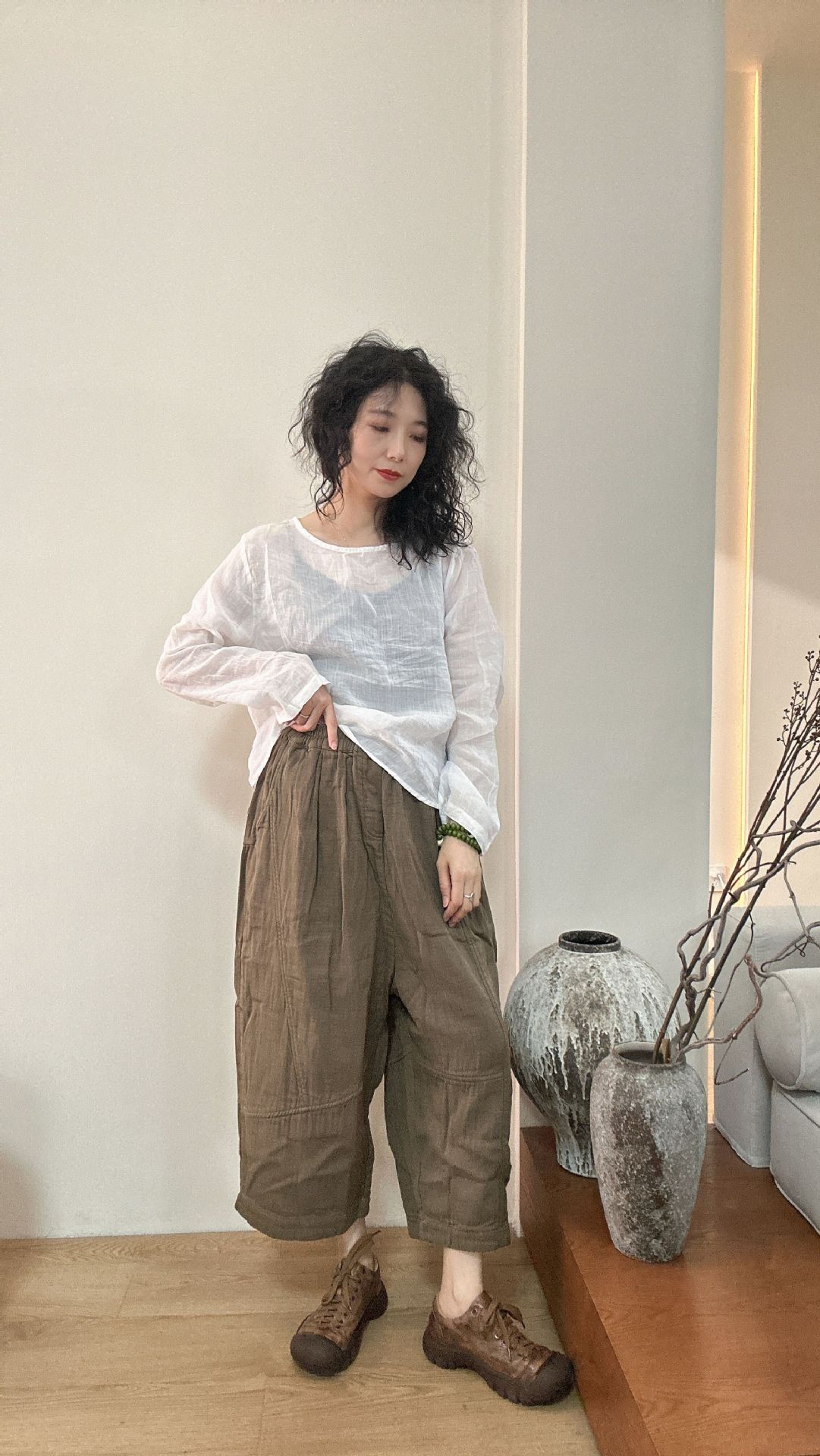 Otoño 2024 Nuevo estilo artístico Pantalones rectos de sarga con cintura elástica y doble hilo Pantalones casuales de color sólido adelgazantes
