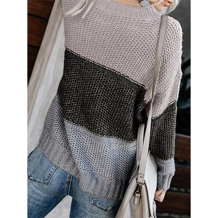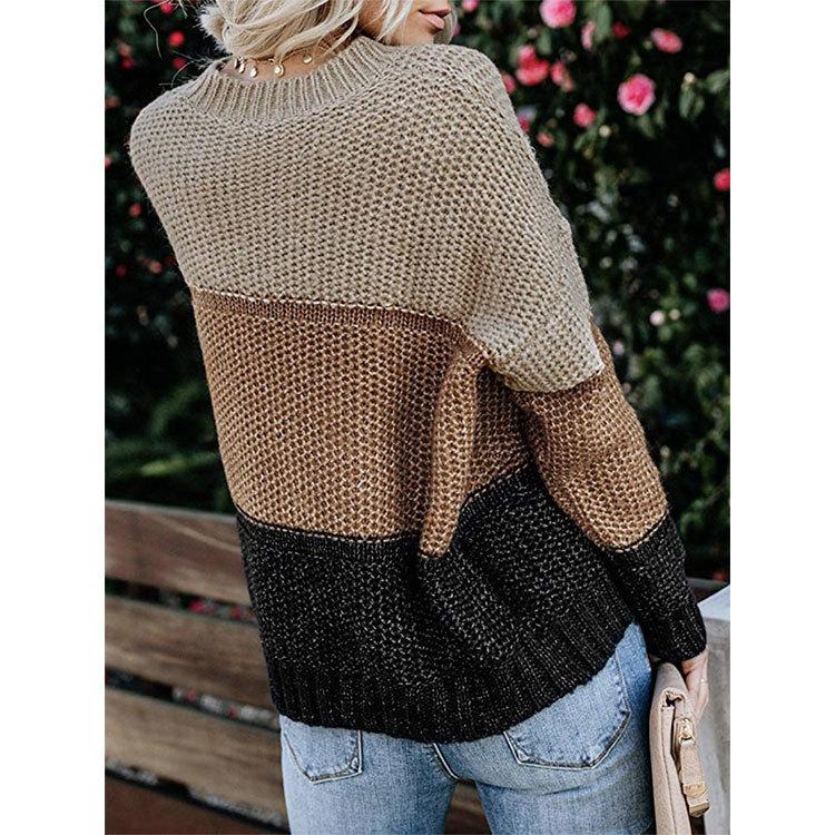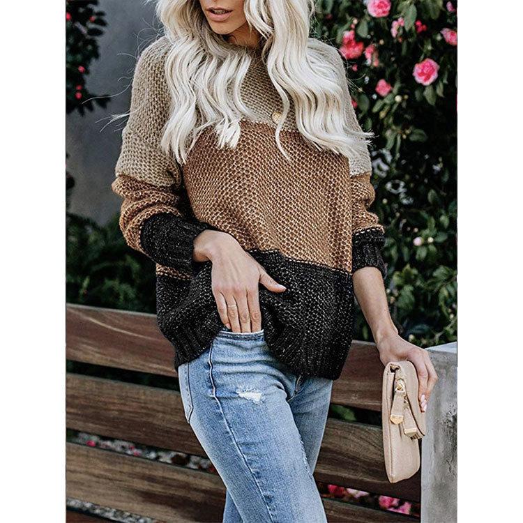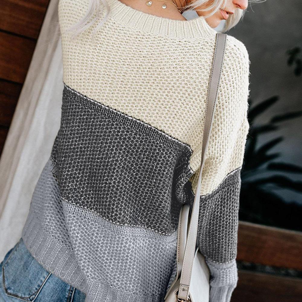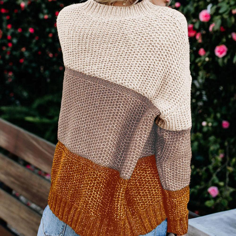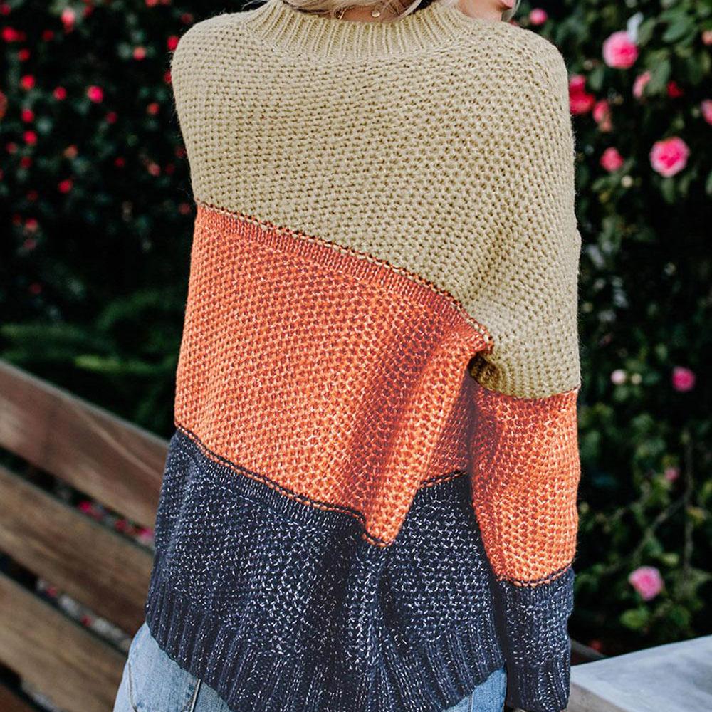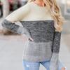 Suéteres tipo jersey europeos y americanos con bloques de color para mujer en otoño e invierno, Amazon Tops casuales holgados de punto grueso, versátiles y elegantes