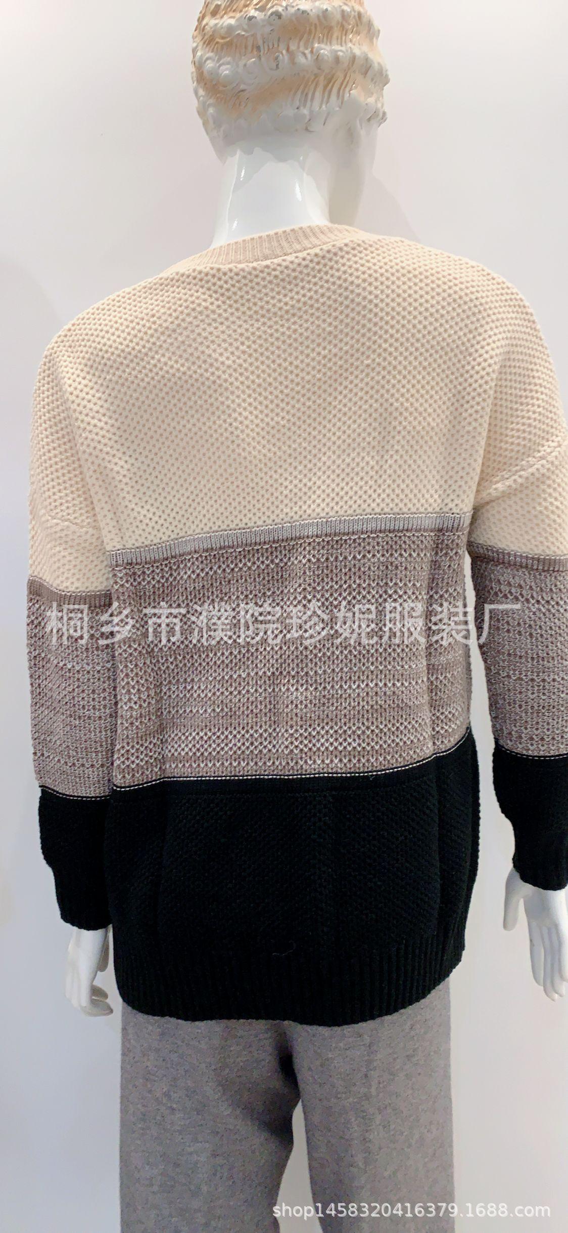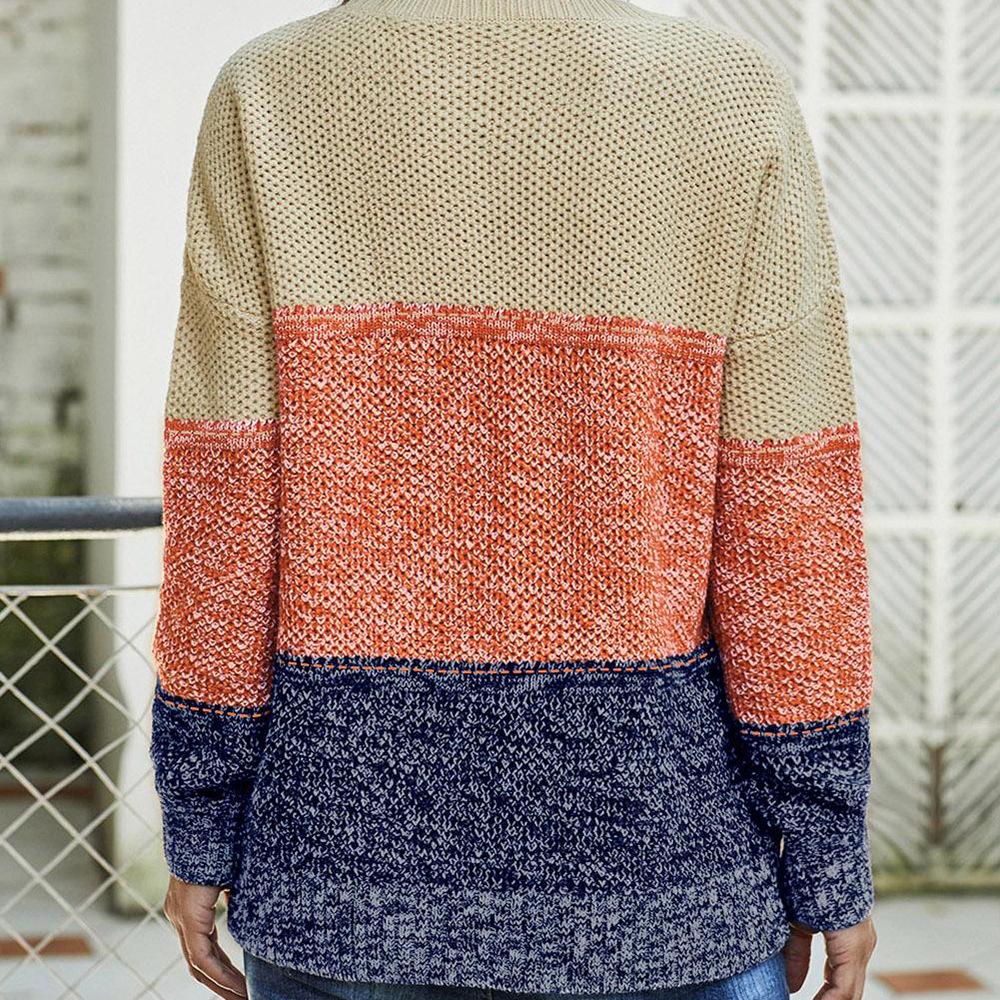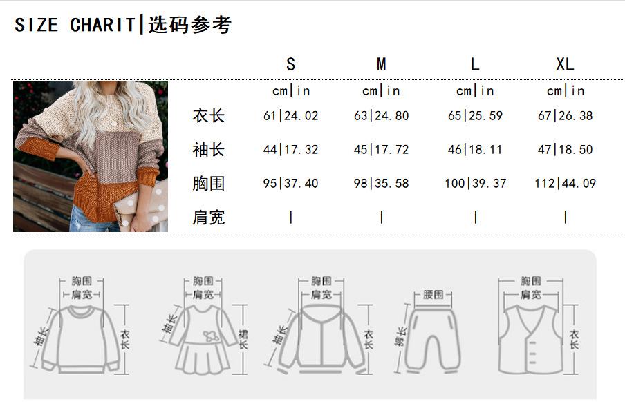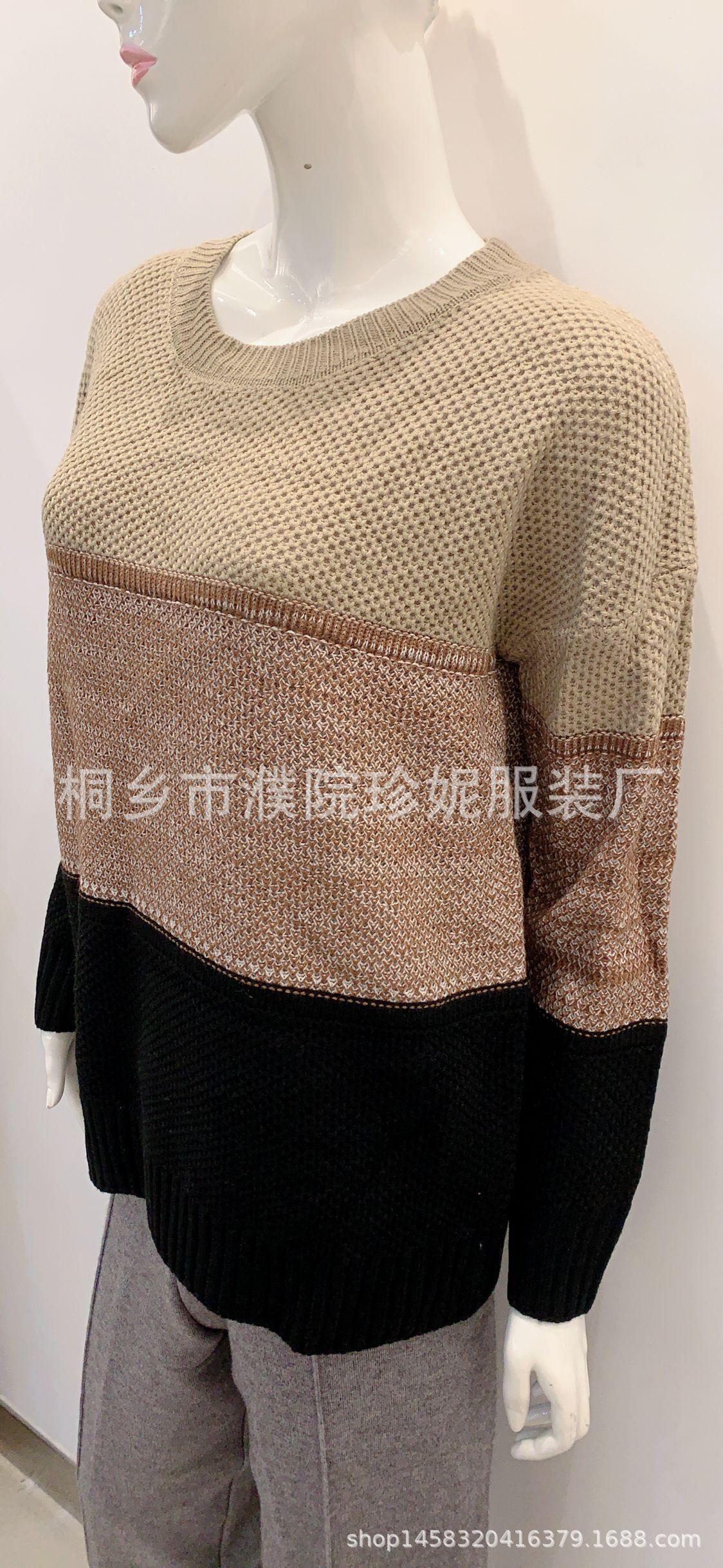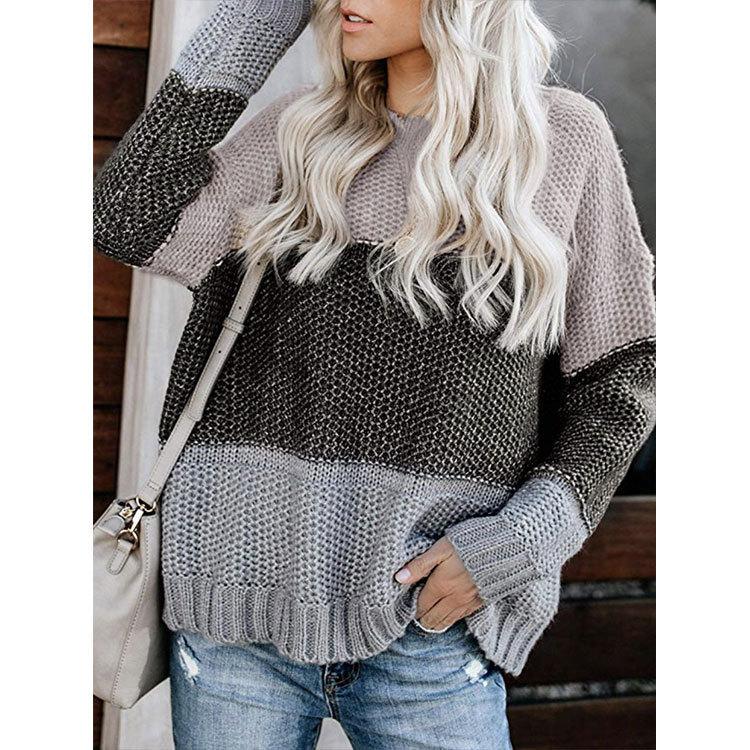 Suéteres tipo jersey europeos y americanos con bloques de color para mujer en otoño e invierno, Amazon Tops casuales holgados de punto grueso, versátiles y elegantes