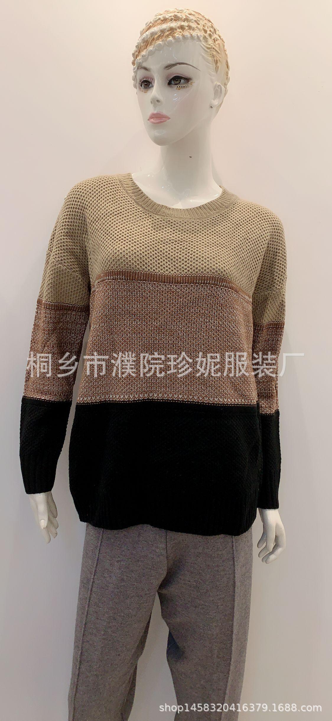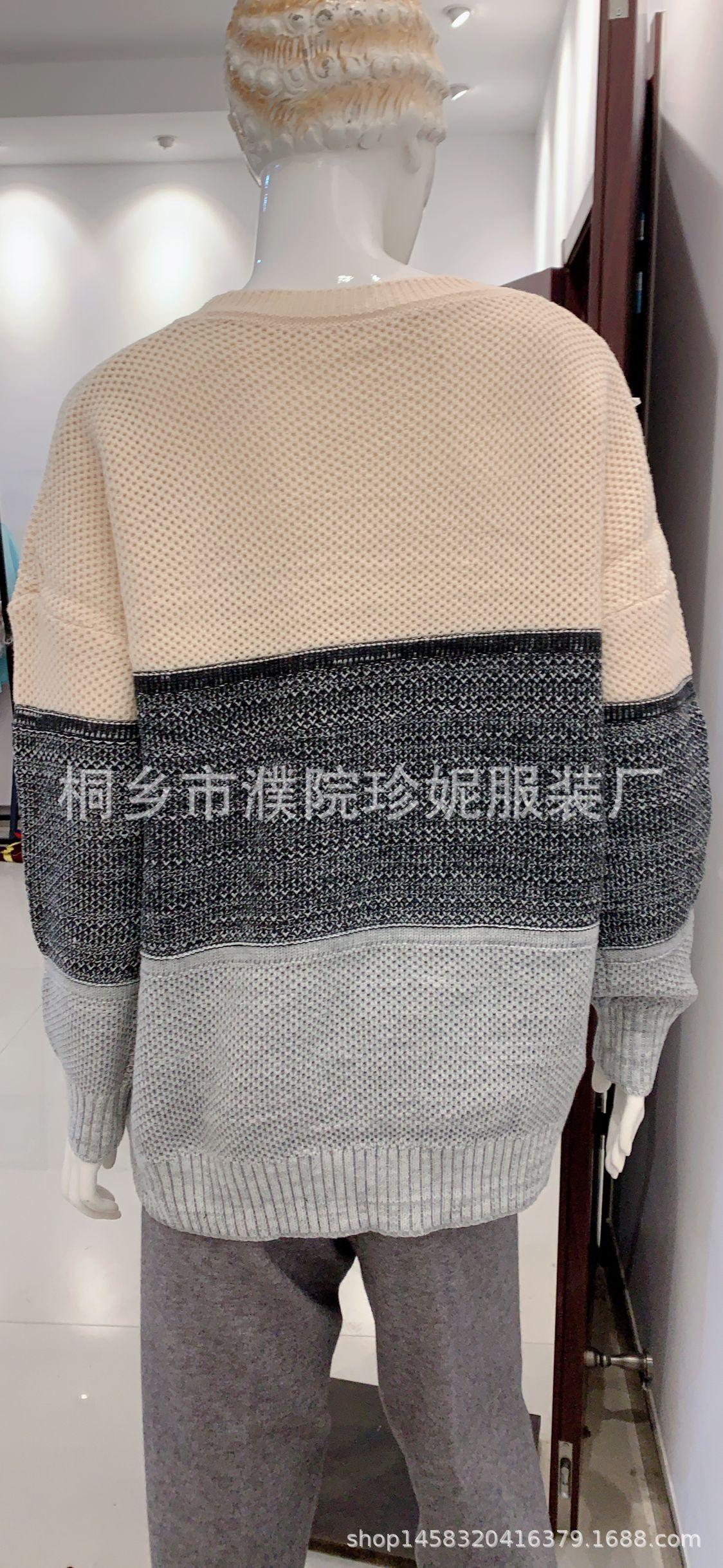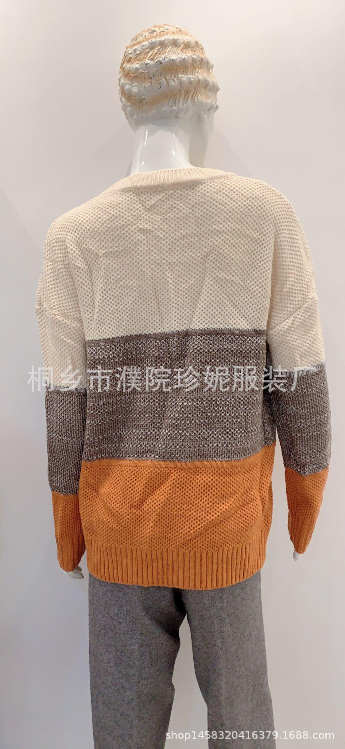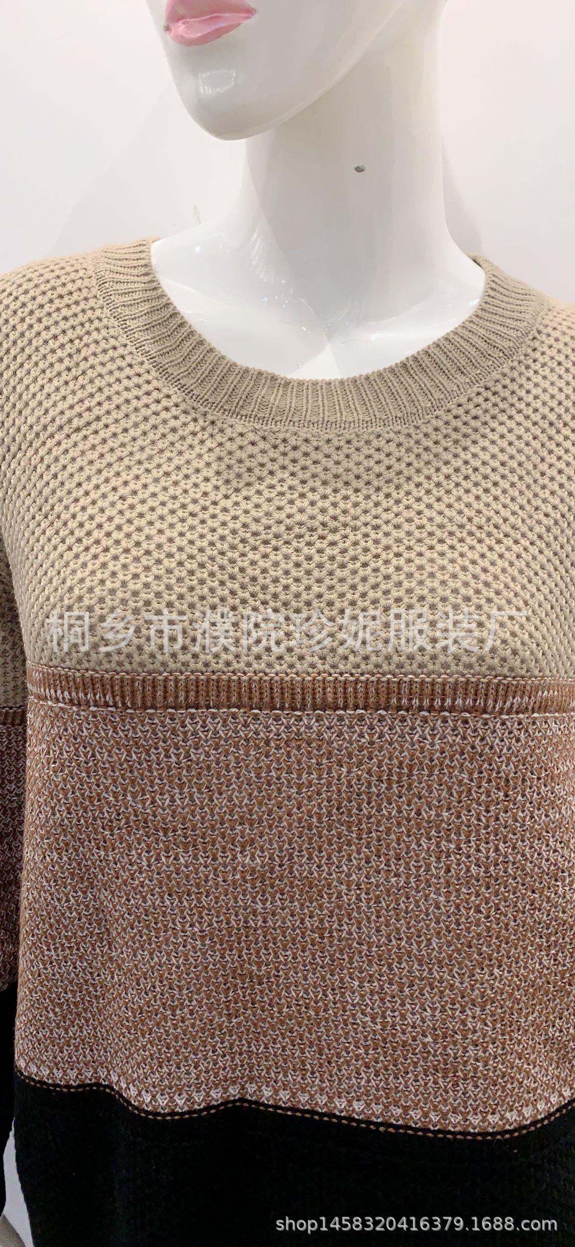 Suéteres tipo jersey europeos y americanos con bloques de color para mujer en otoño e invierno, Amazon Tops casuales holgados de punto grueso, versátiles y elegantes