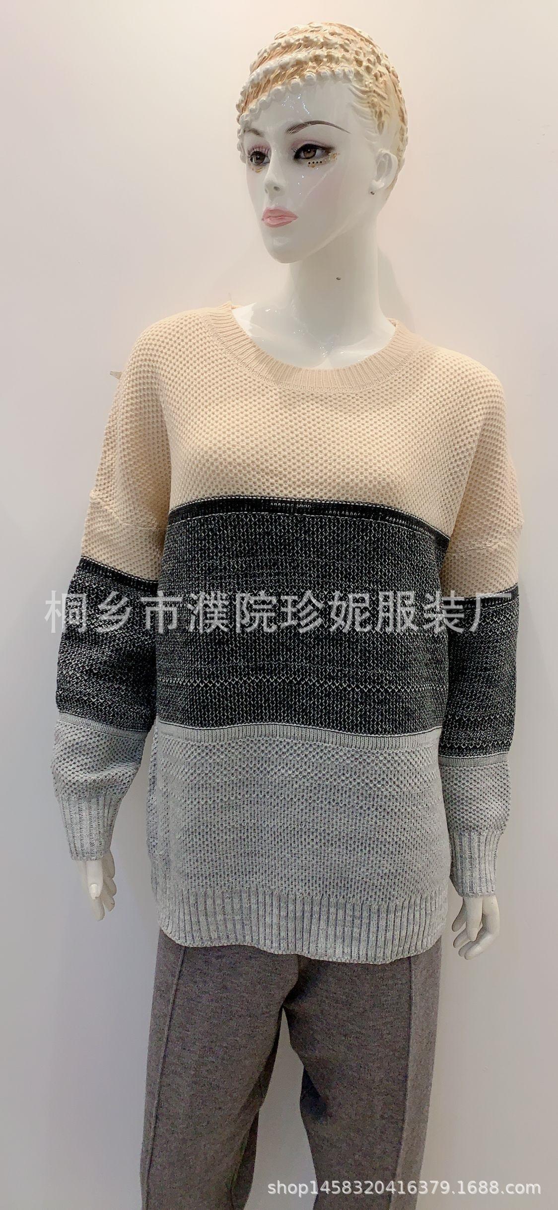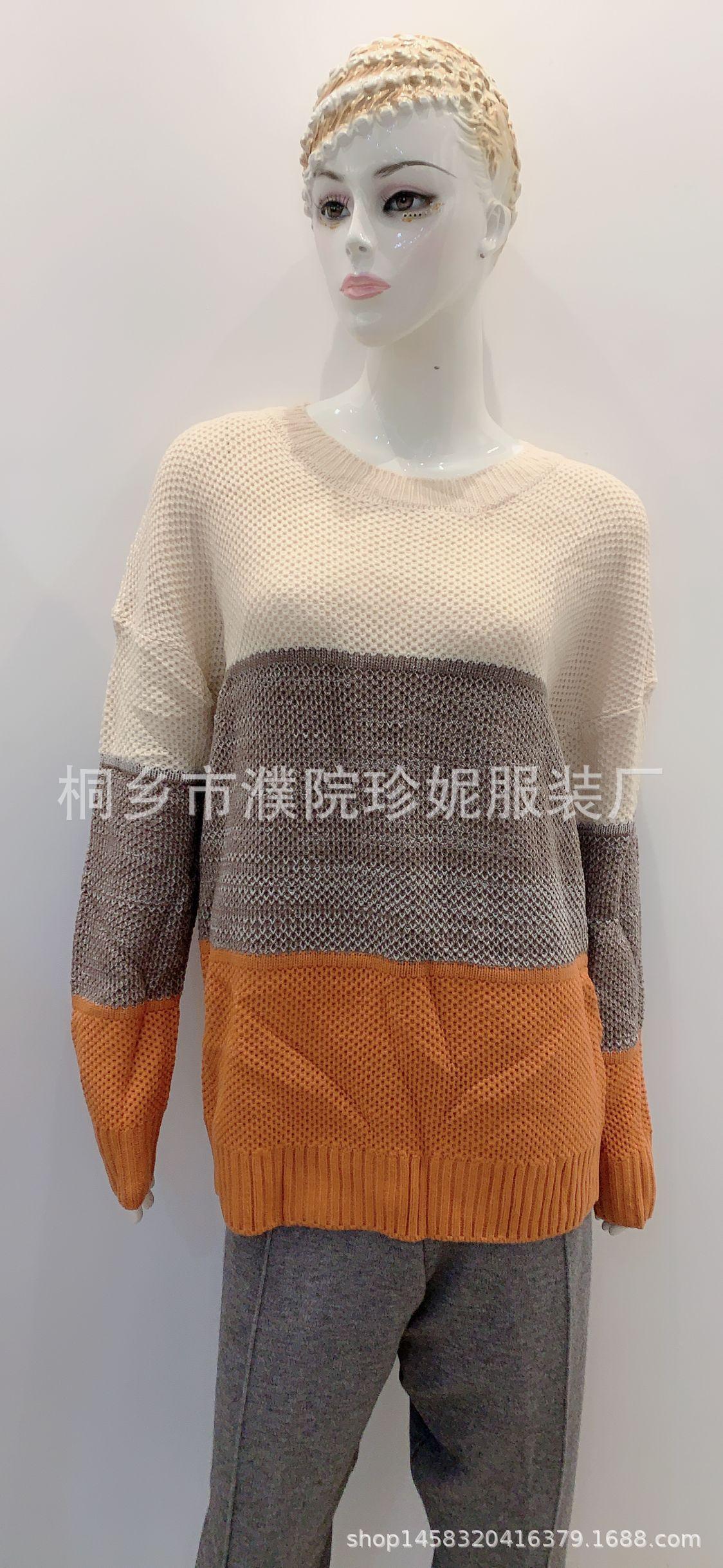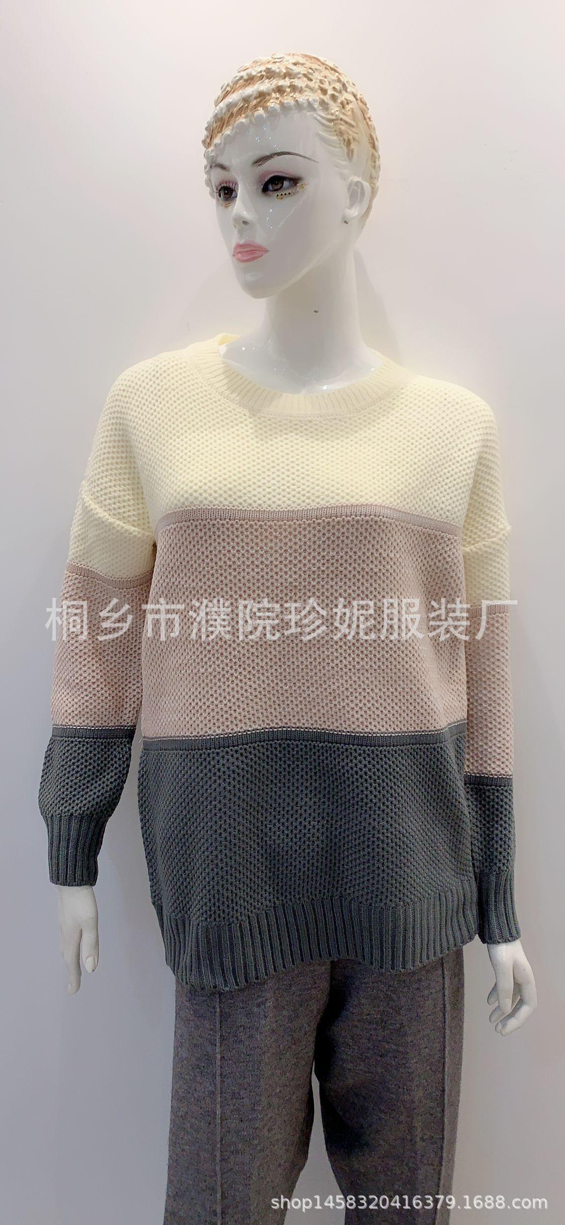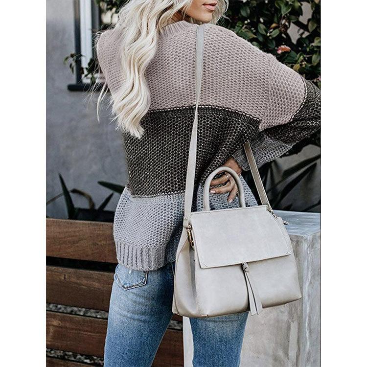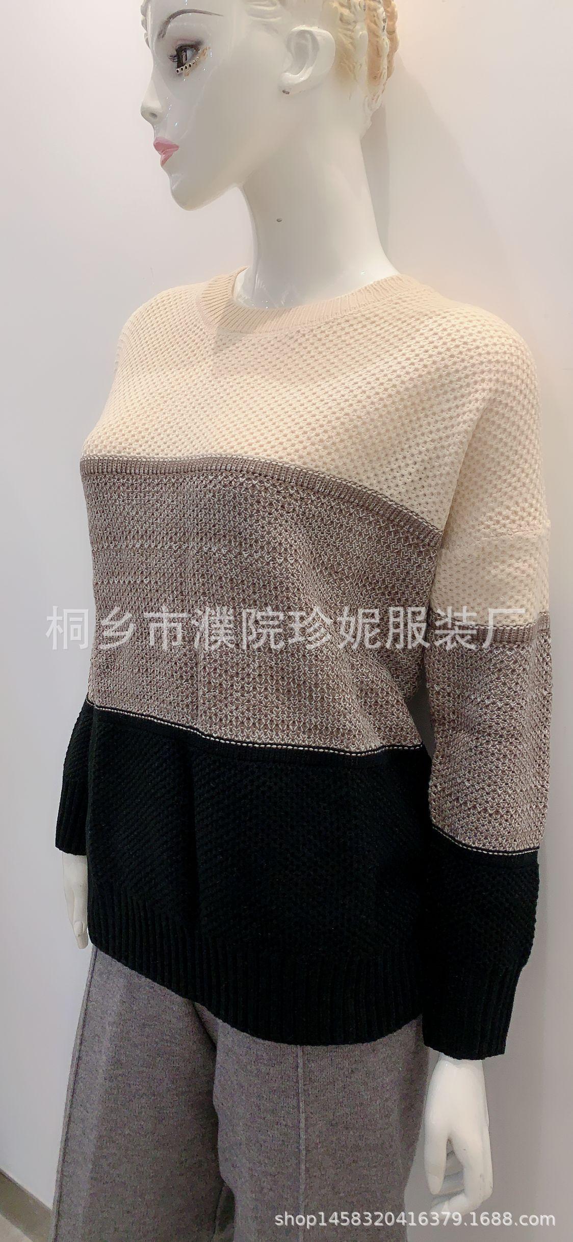 Suéteres tipo jersey europeos y americanos con bloques de color para mujer en otoño e invierno, Amazon Tops casuales holgados de punto grueso, versátiles y elegantes