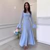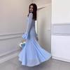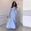 Otoño 2024 Nuevo Vestido Europeo y Americano Transfronterizo de Amazon para Mujer con Manga Trompeta, Cintura Ajustada con Cordones y Corte Entallado