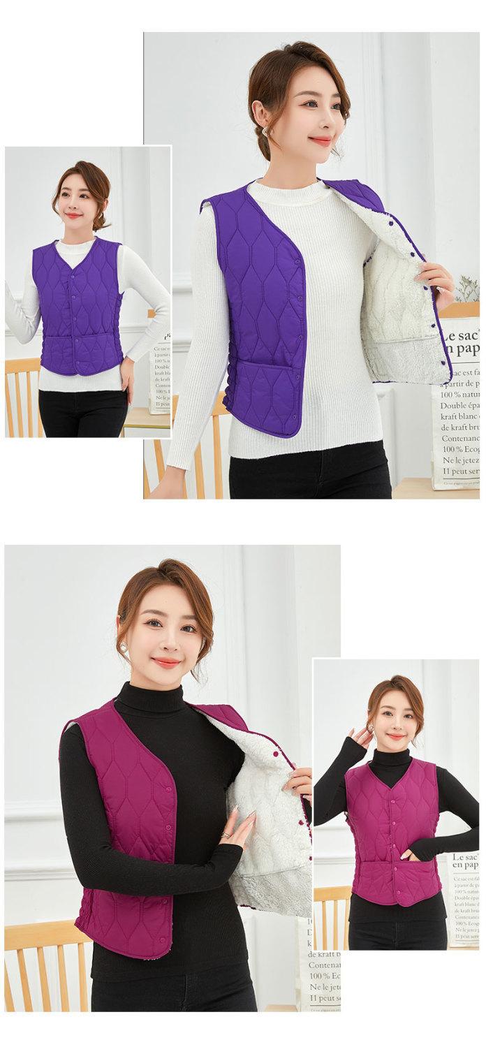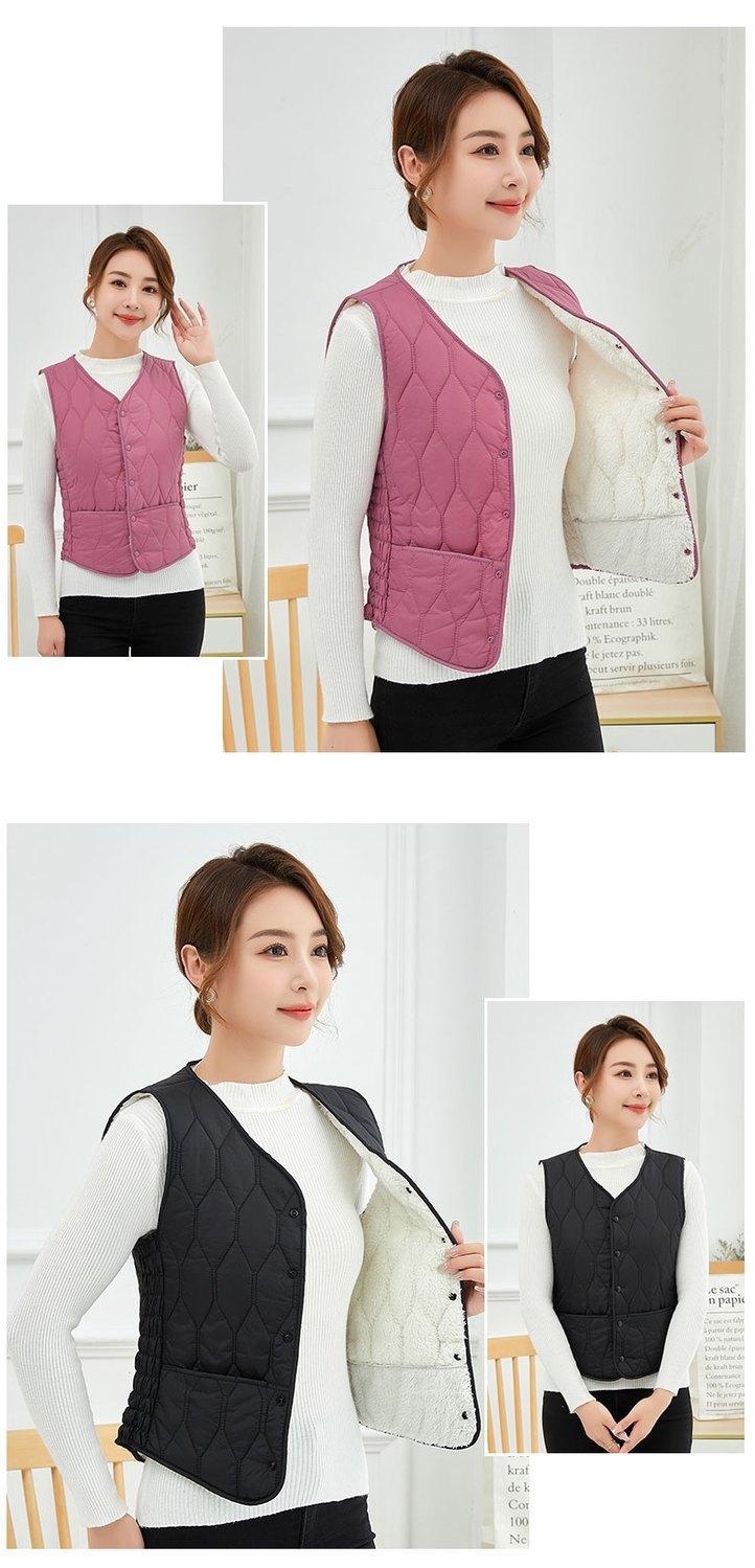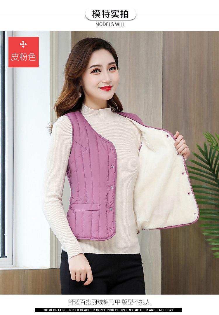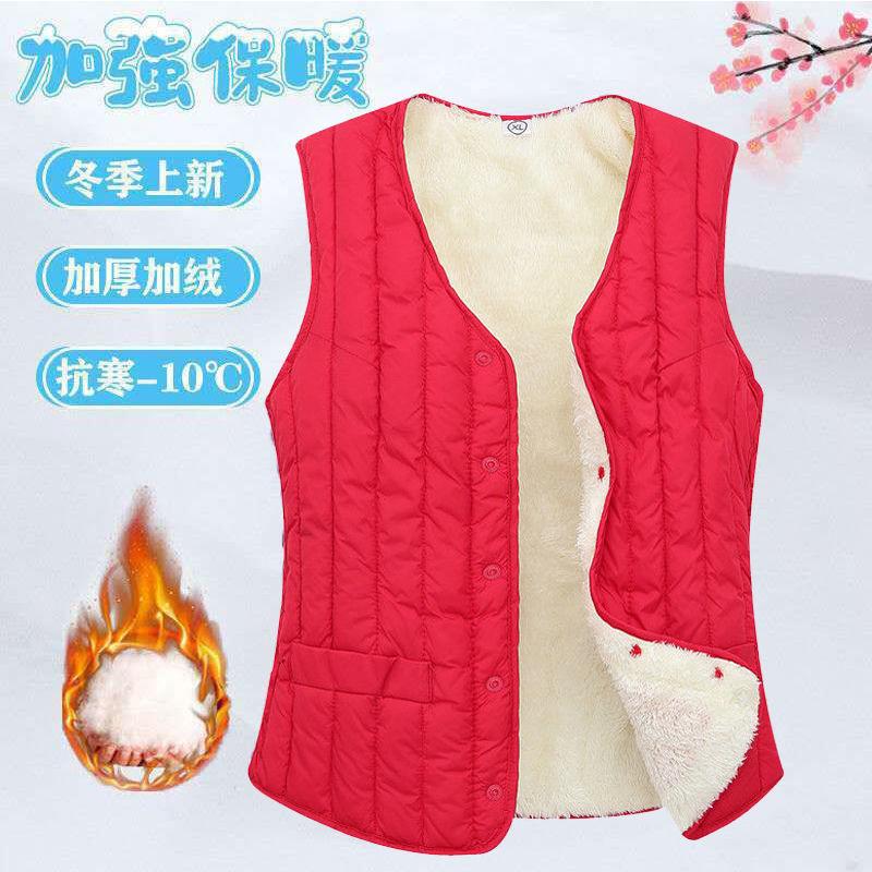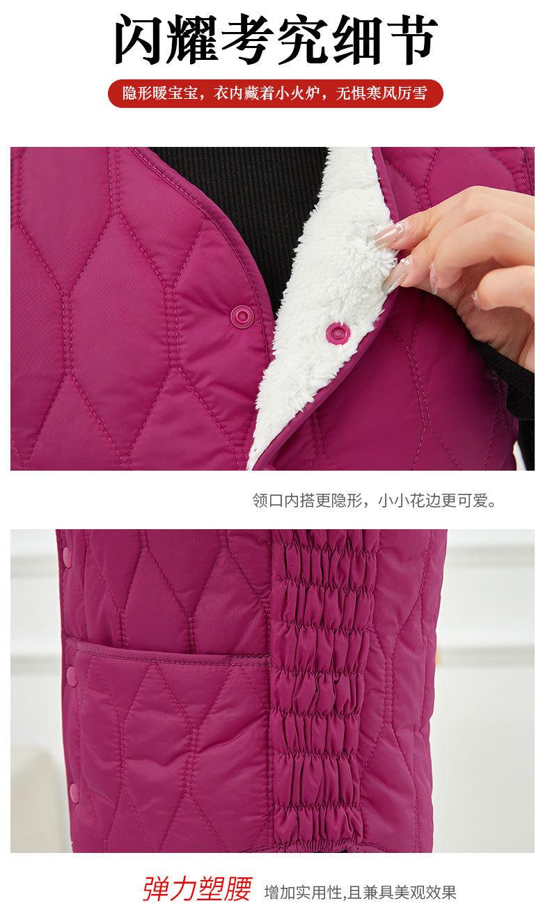 Otoño e Invierno Nuevo Chaleco de Algodón Plumón para Mujer Lana de Cordero Corto Engrosado Clip de Caballo Forro Polar para la Tercera Edad Chaleco Cálido