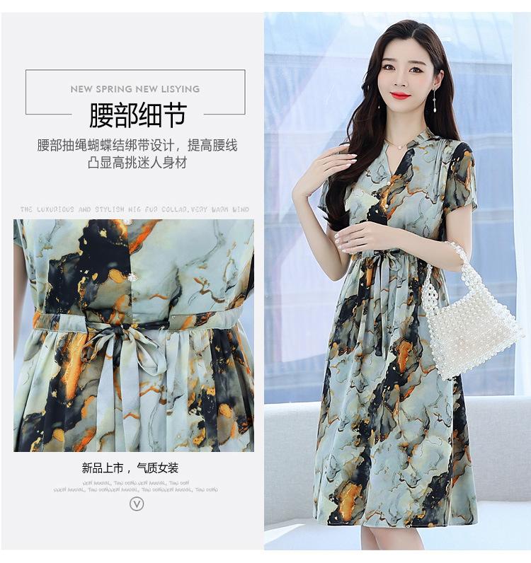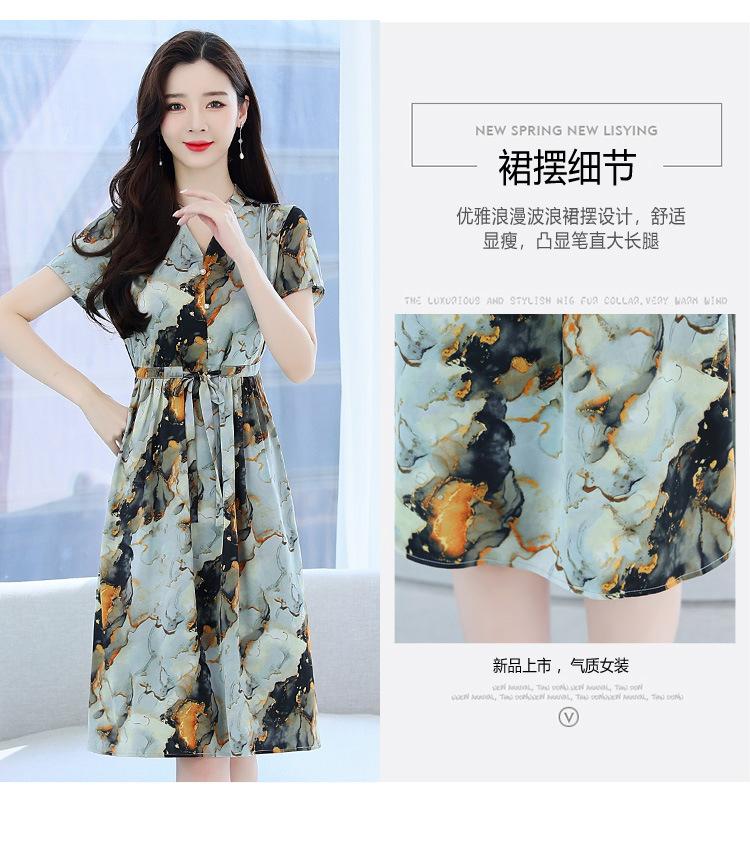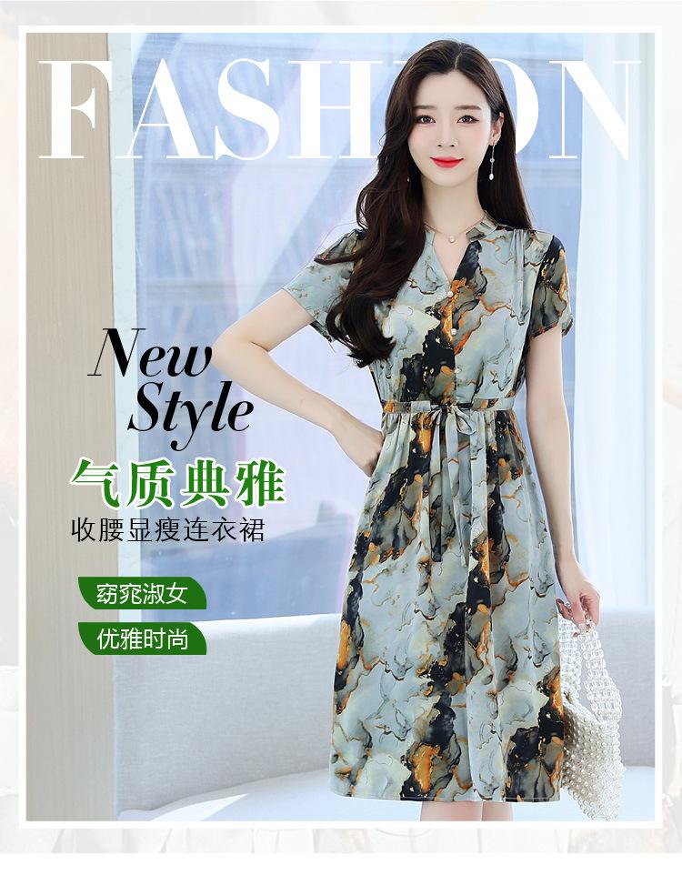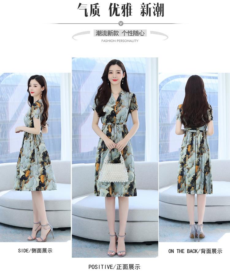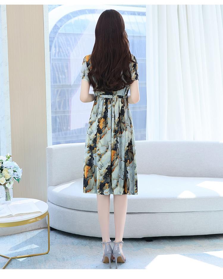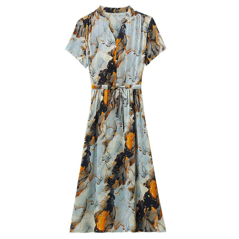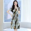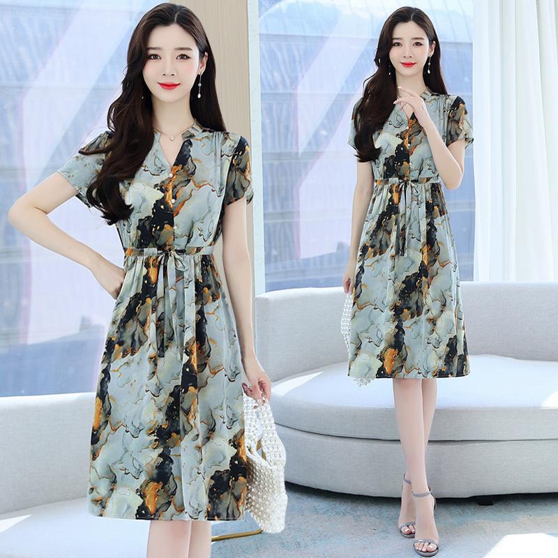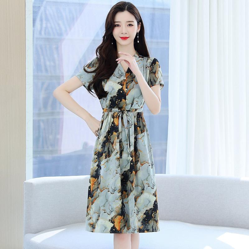 Vestido estampado con cuello en V para mujer, novedad de verano 2024, elegante, con cordones, cintura adelgazante y largo medio.