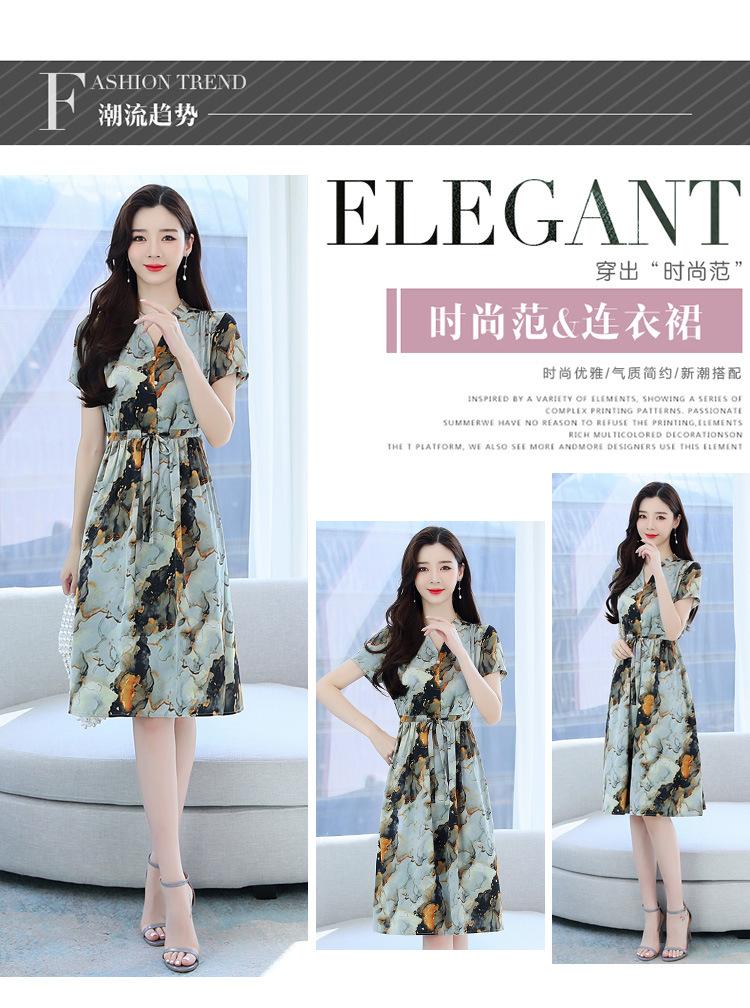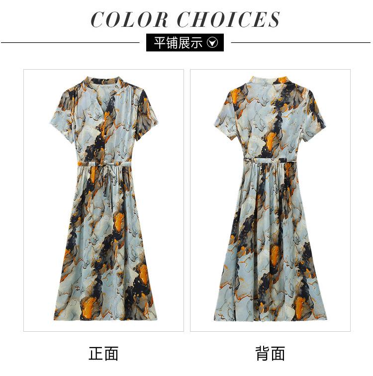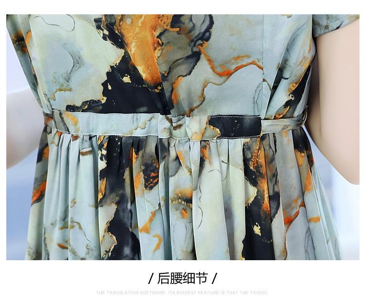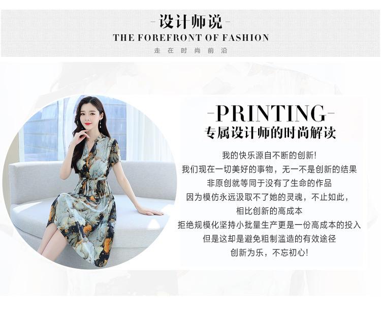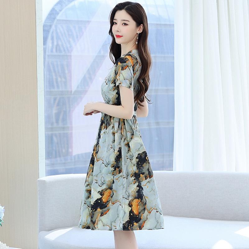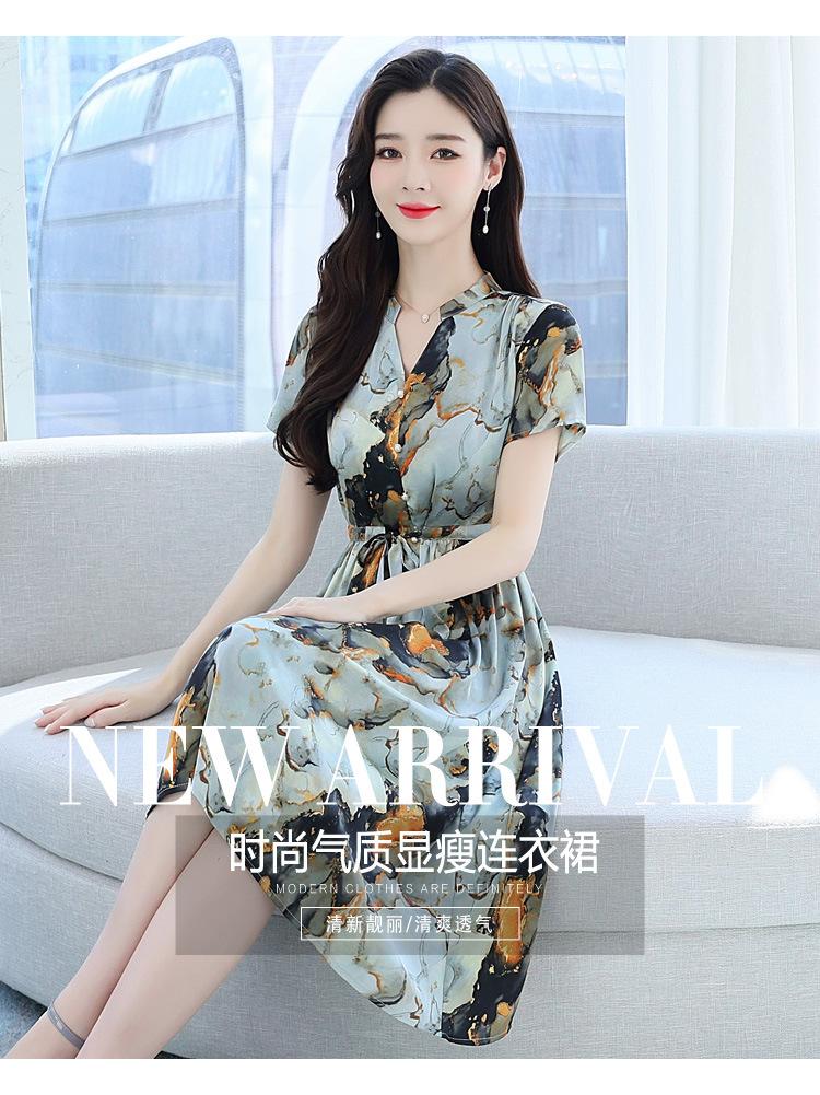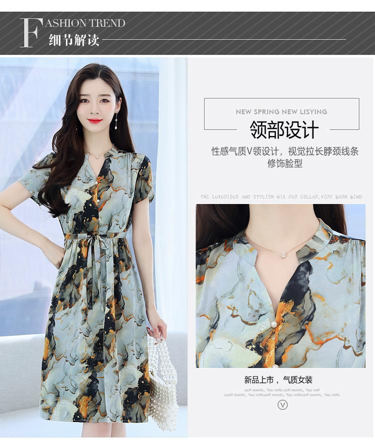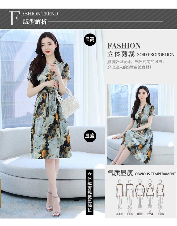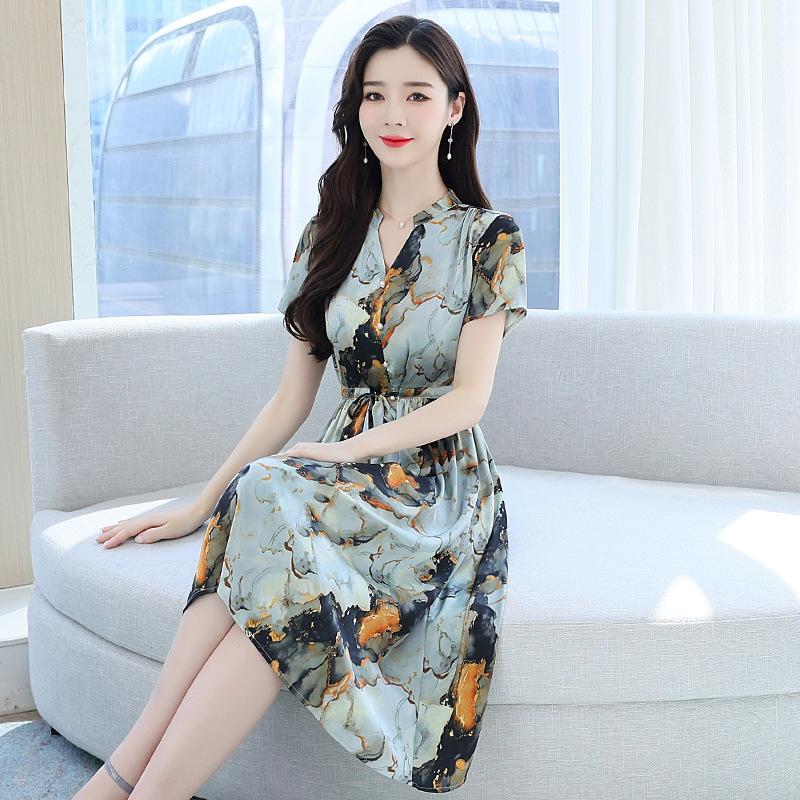 Vestido estampado con cuello en V para mujer, novedad de verano 2024, elegante, con cordones, cintura adelgazante y largo medio.