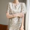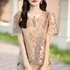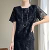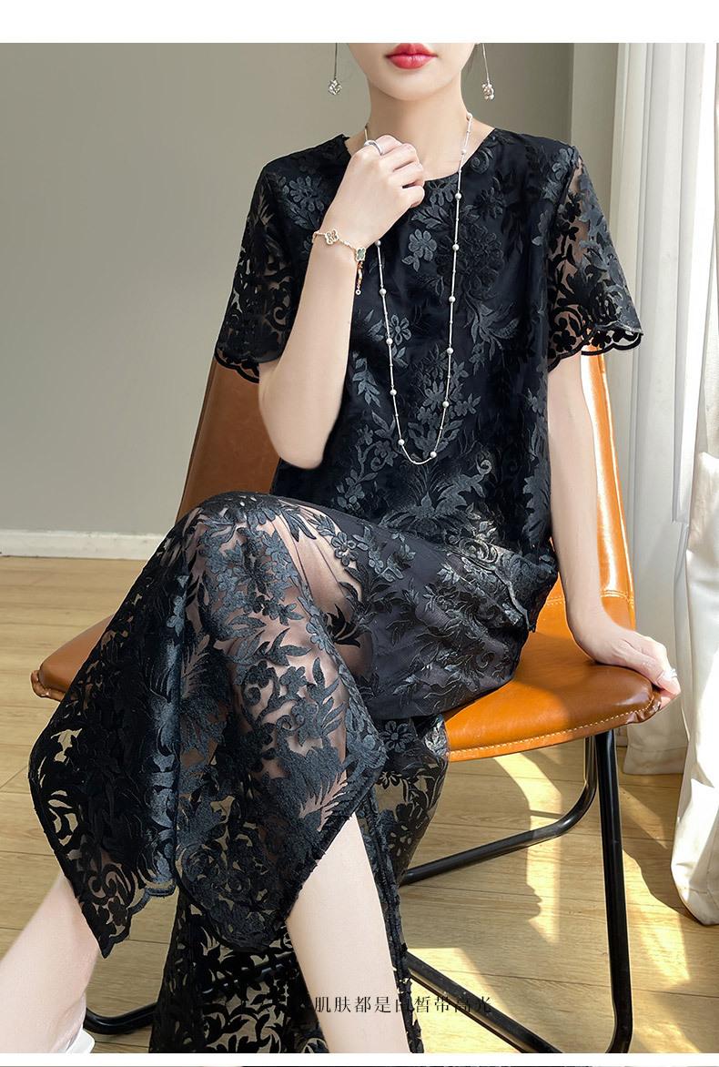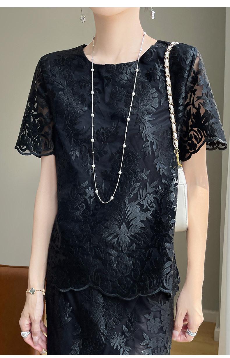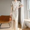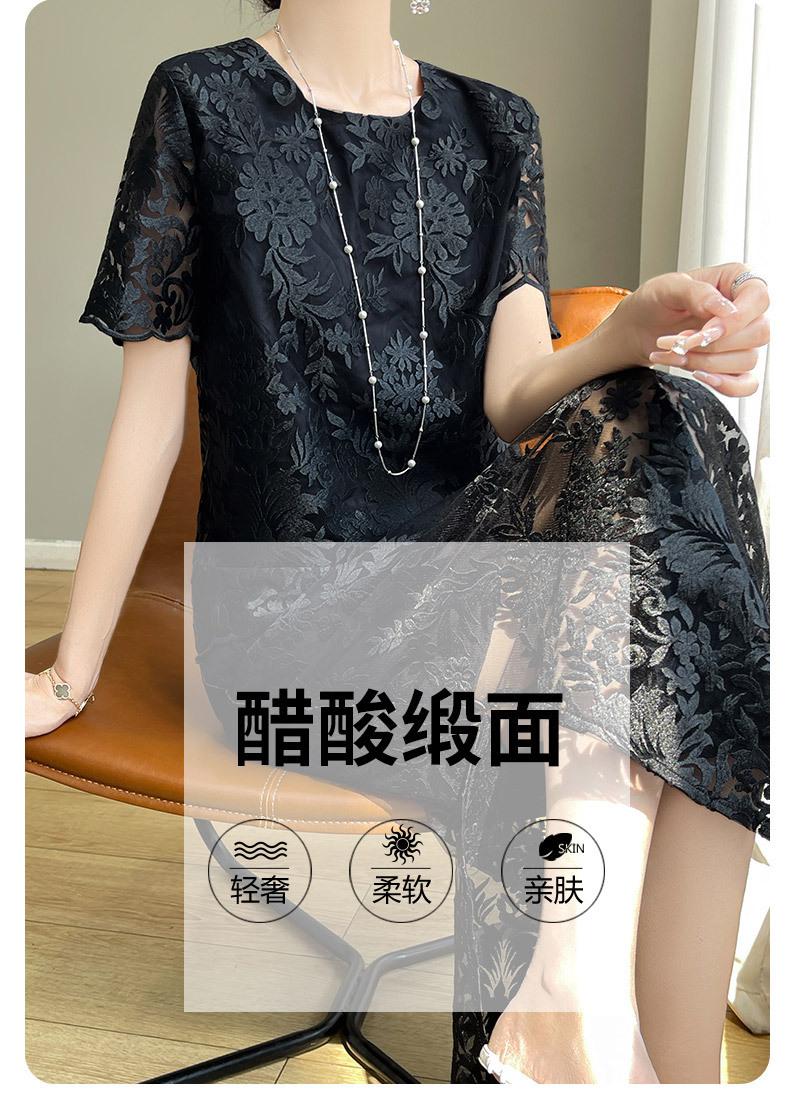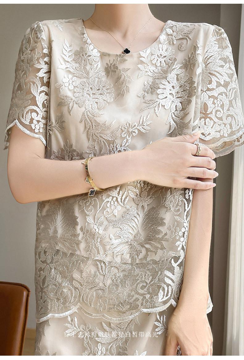 Traje de Falda con Abertura Lateral de Satén de Ácido Acético de Verano Fino de Manga Media con Encaje Bordado de Estilo Moderno y Elegante para Mujer