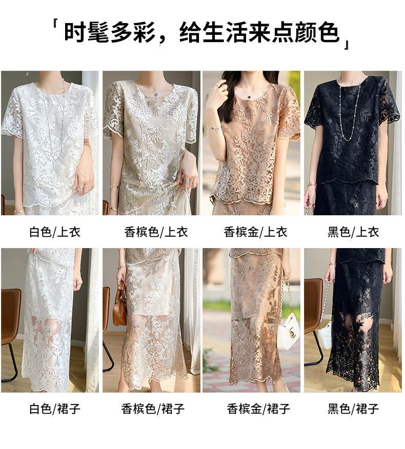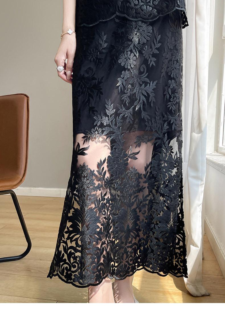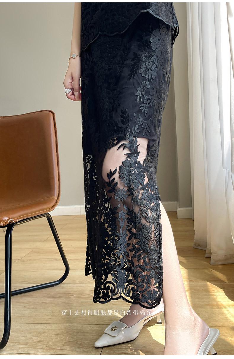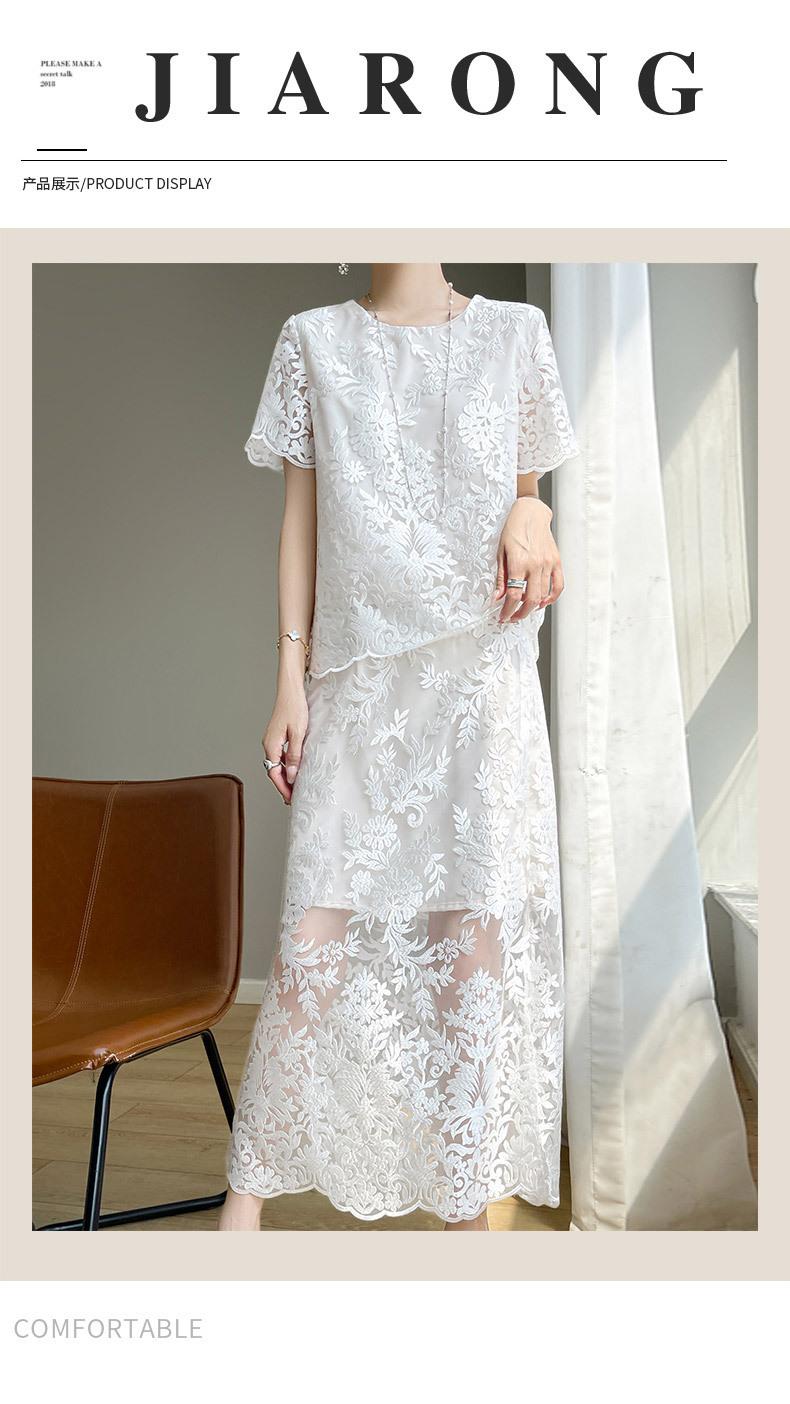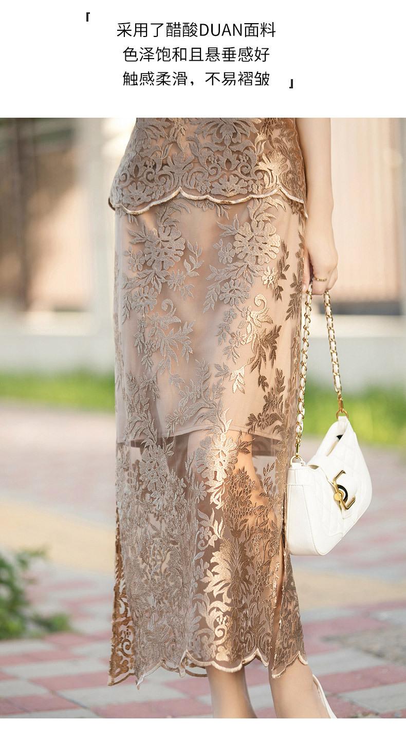 Nuevo traje de falda de encaje bordado estilo chino + falda para mujer, moda de verano, temperamento, ropa exterior, falda de dos piezas