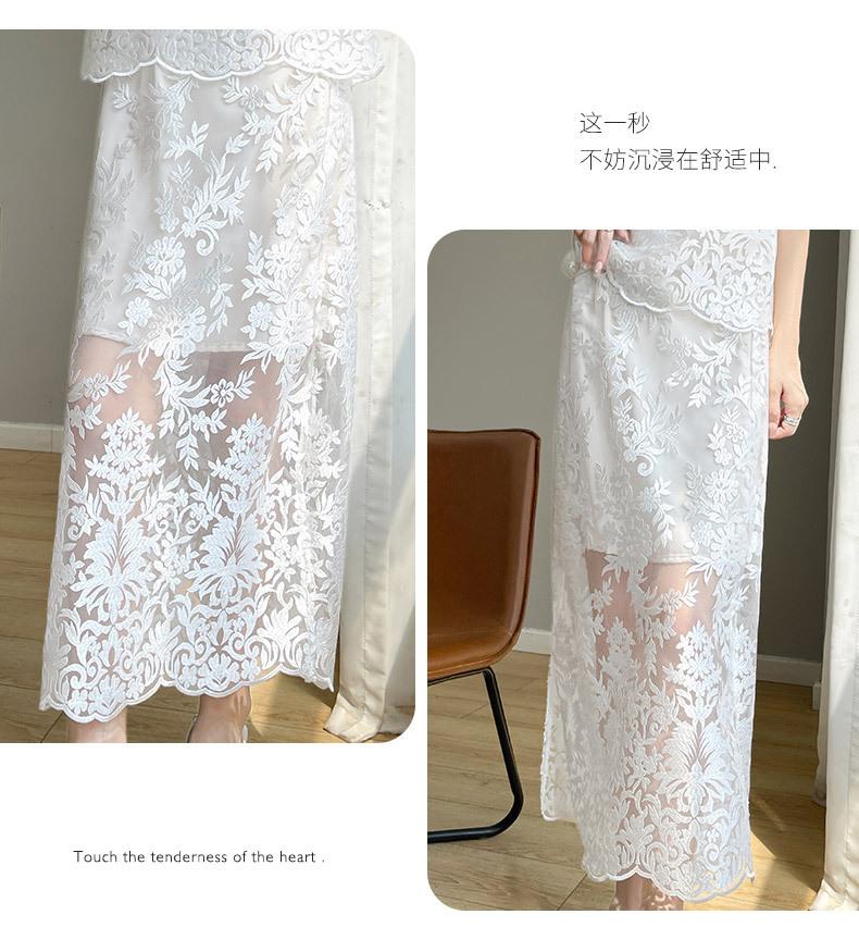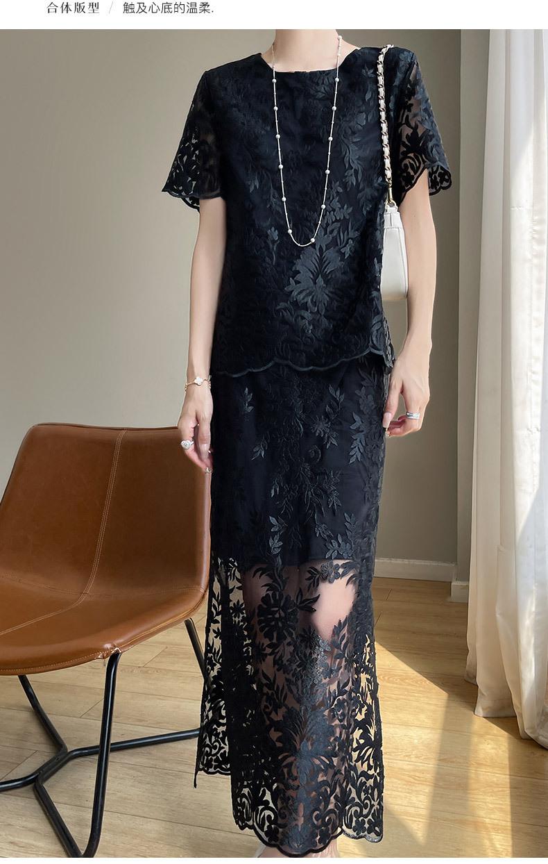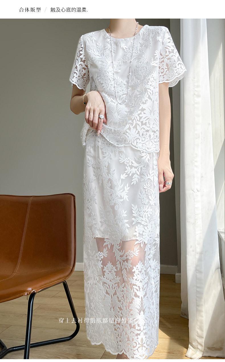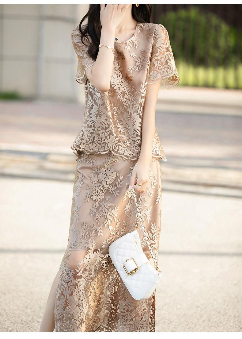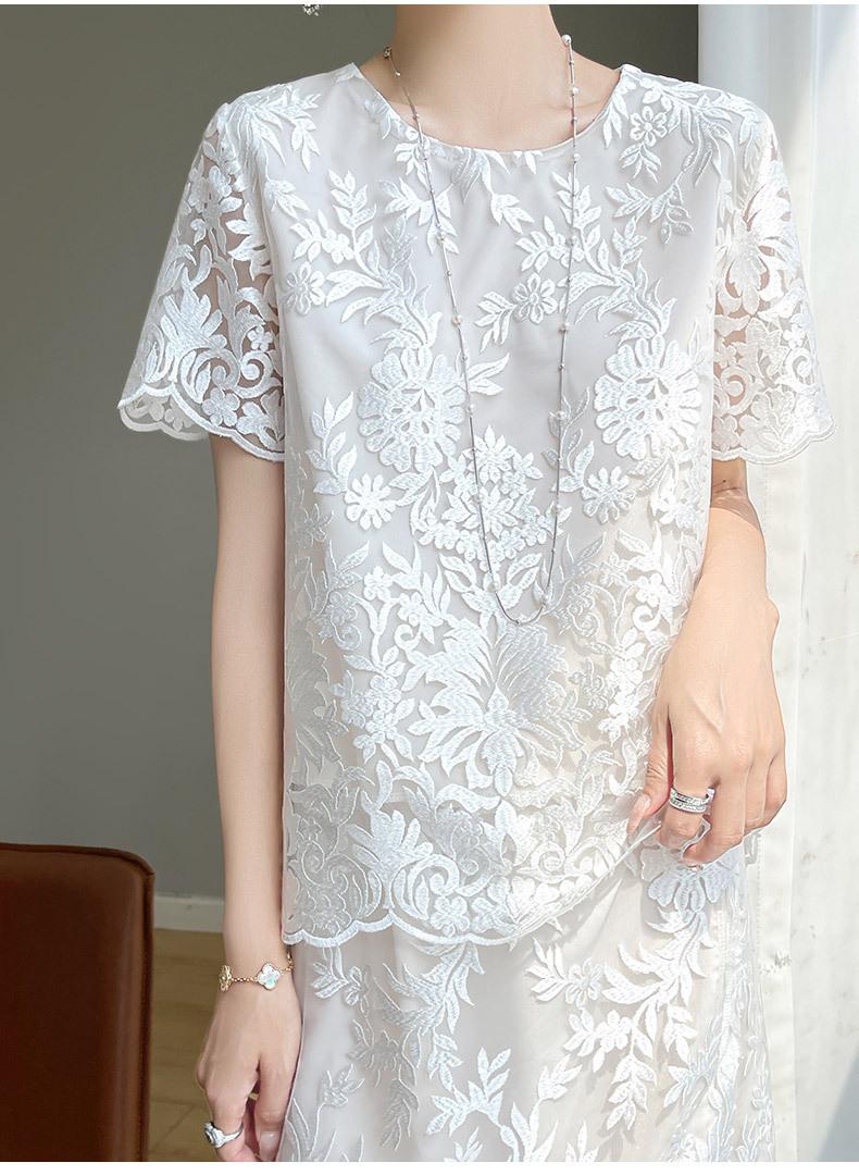Nuevo traje de falda de encaje bordado estilo chino + falda para mujer, moda de verano, temperamento, ropa exterior, falda de dos piezas