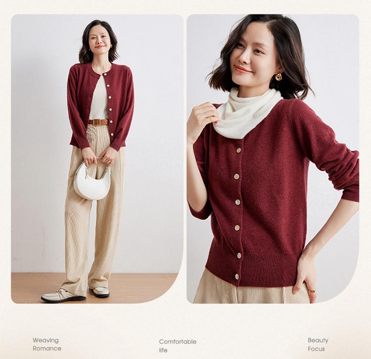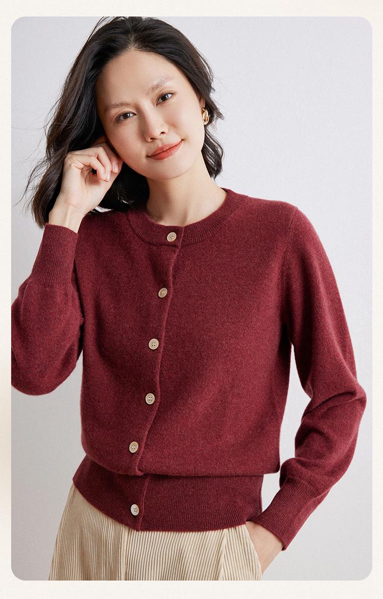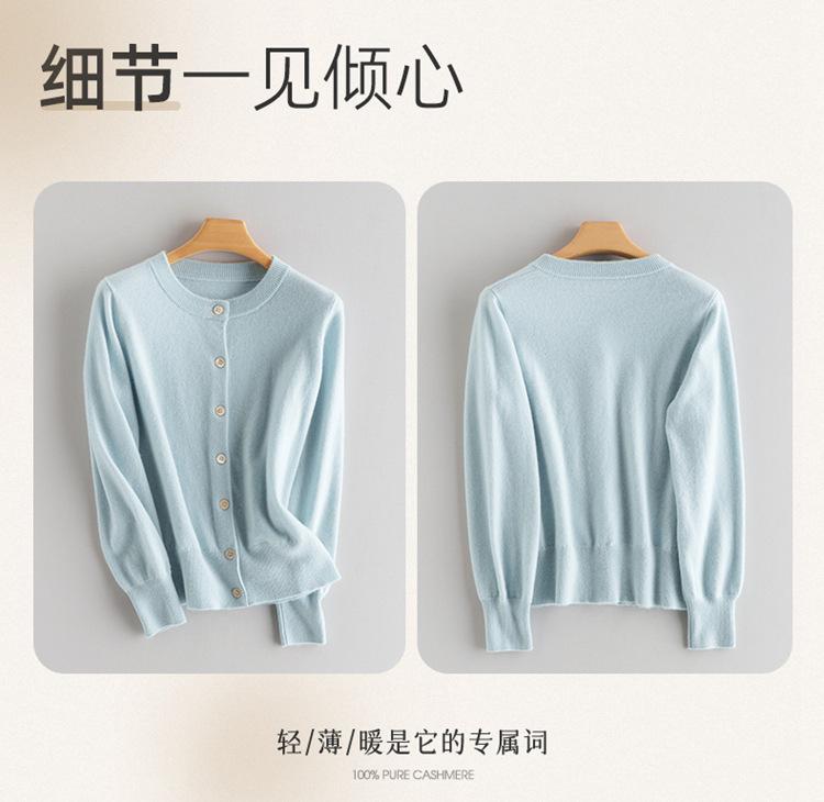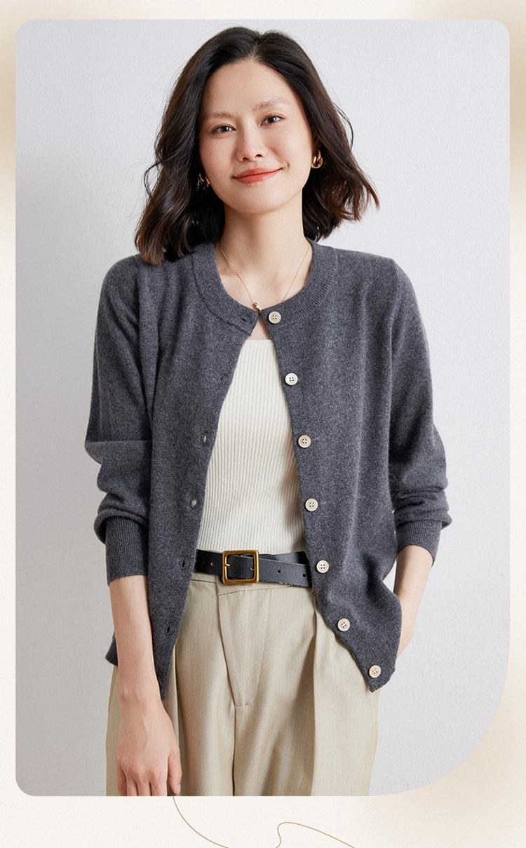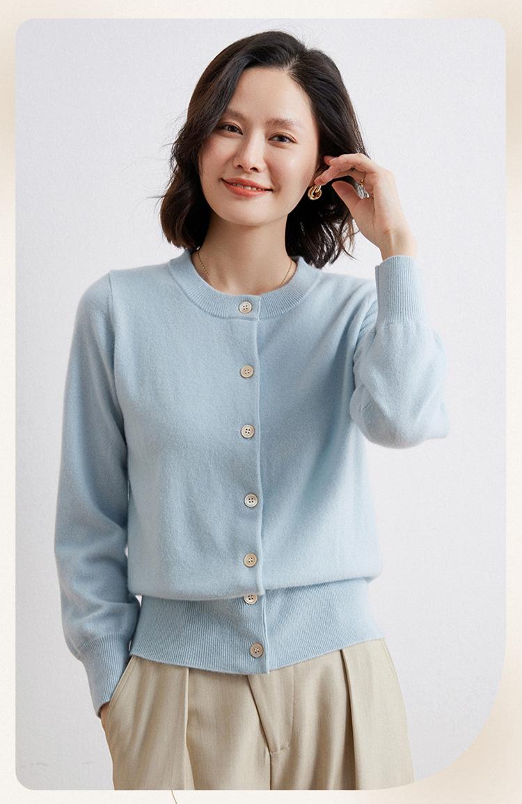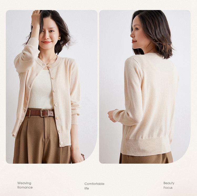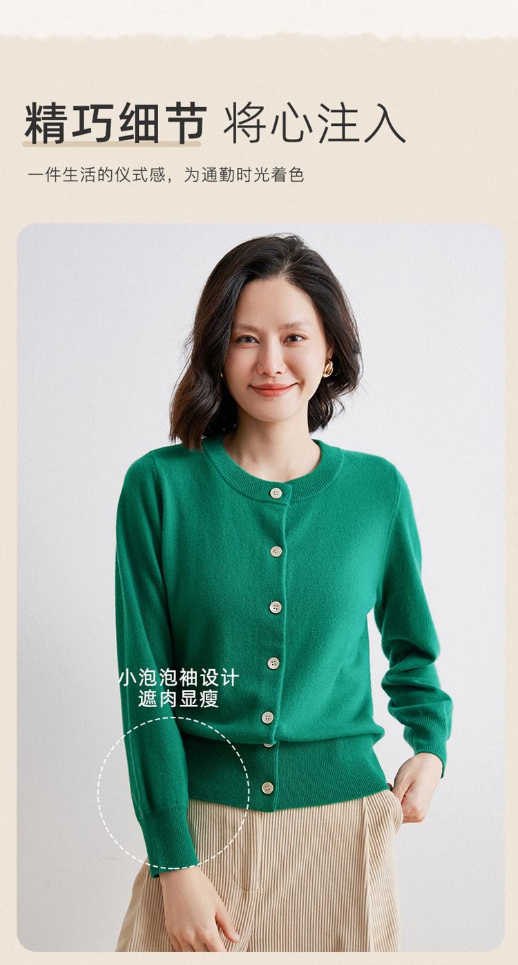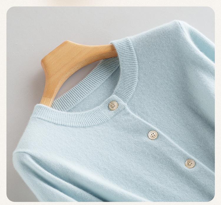 Cárdigan de cachemira para mujer, 100% cachemira pura, otoño e invierno, nuevo abrigo de punto con cuello redondo y hebilla y mangas abullonadas