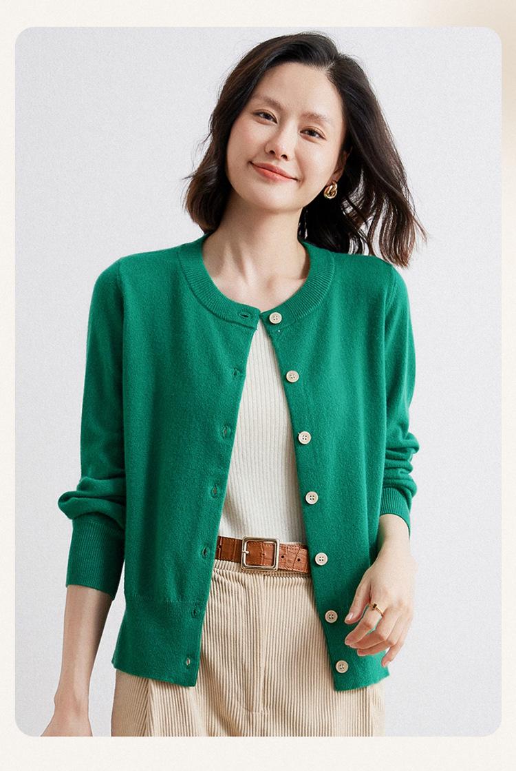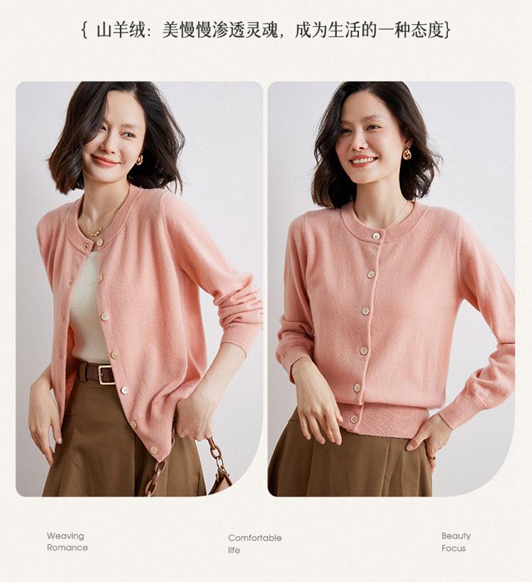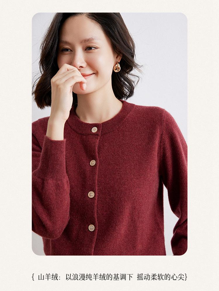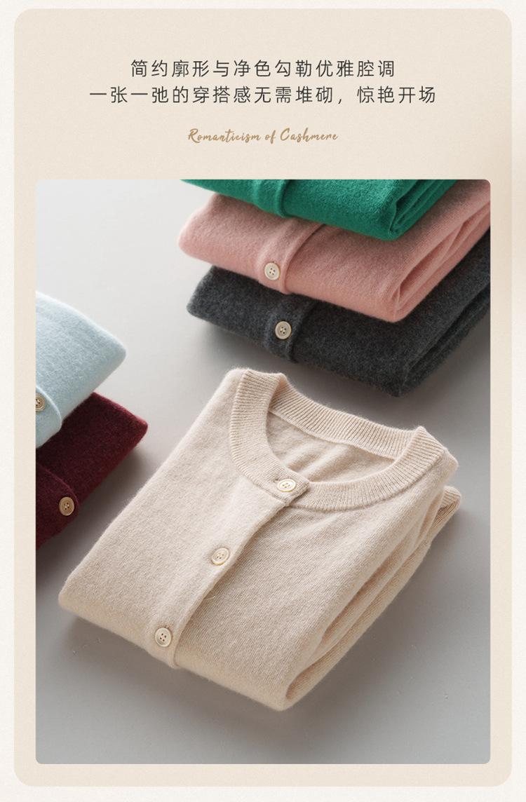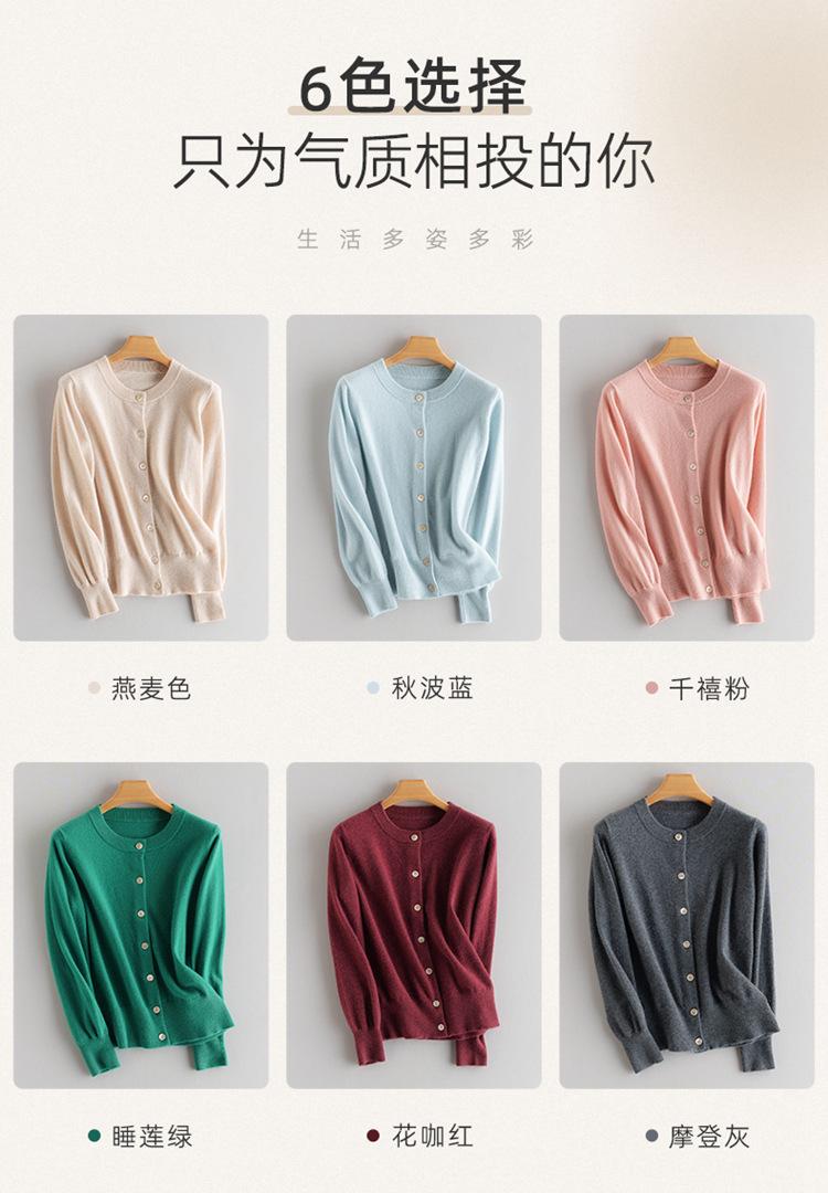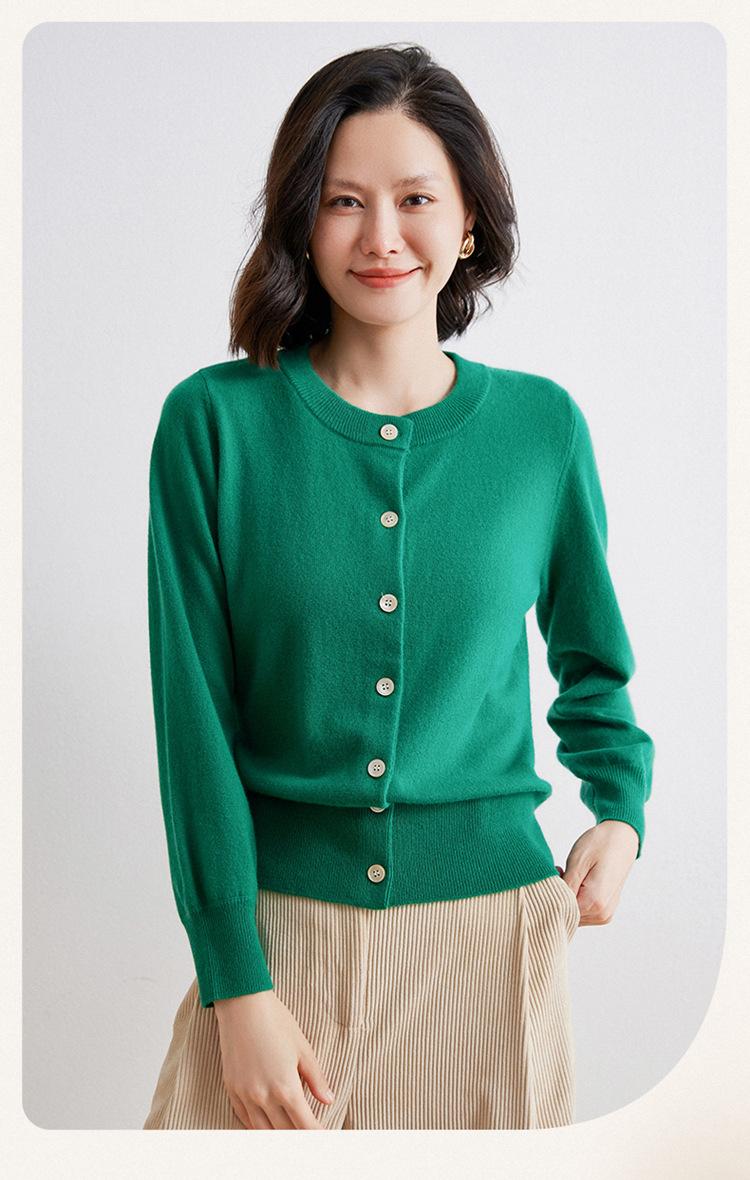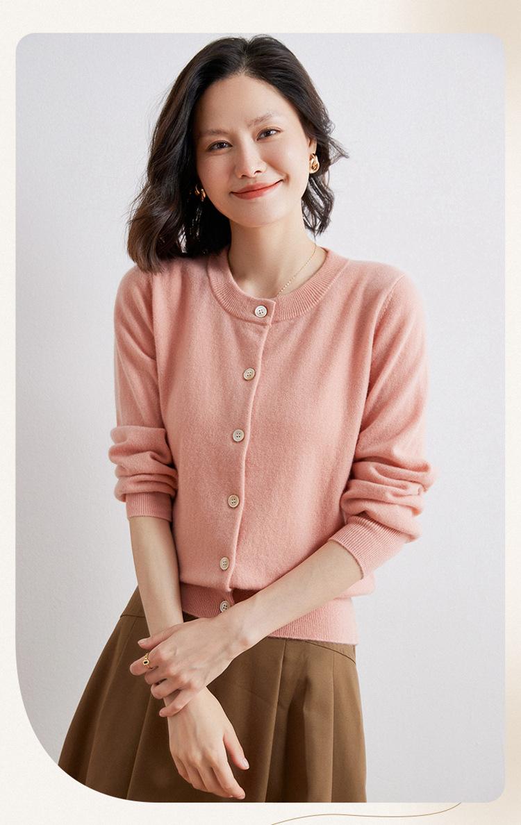 Cárdigan de cachemira para mujer, 100% cachemira pura, otoño e invierno, nuevo abrigo de punto con cuello redondo y hebilla y mangas abullonadas