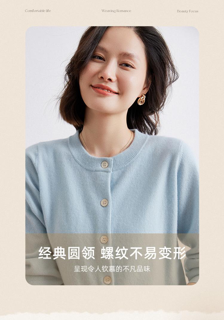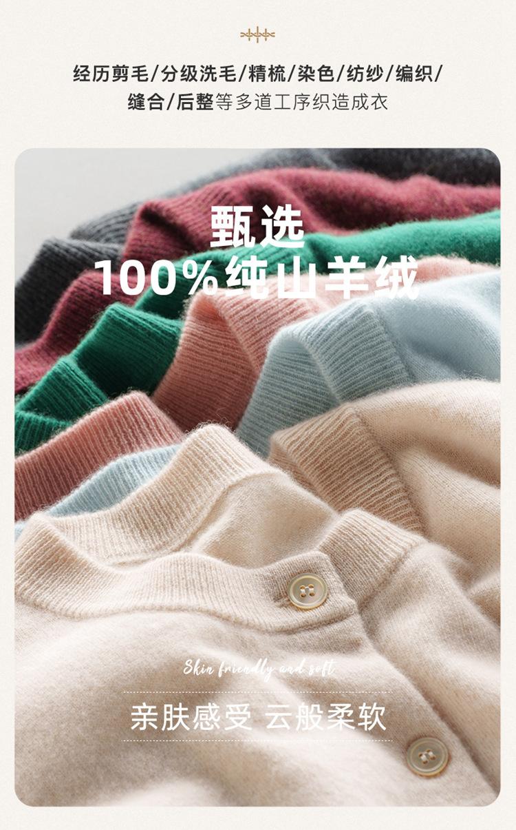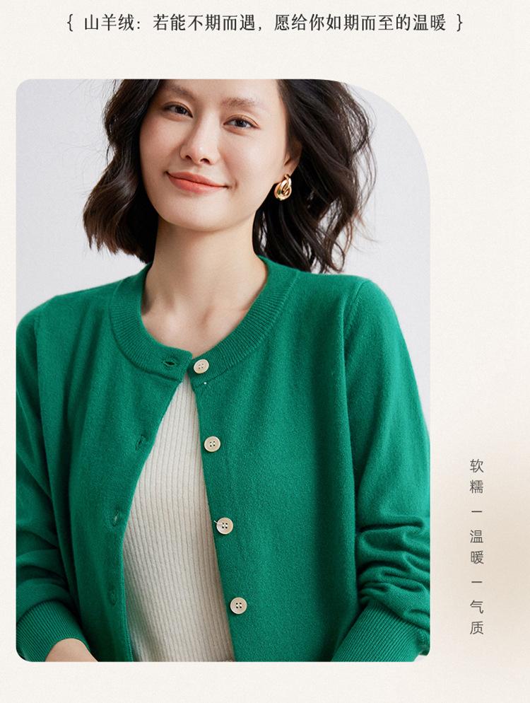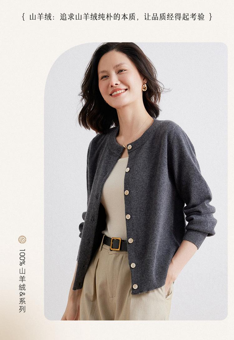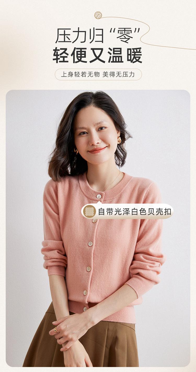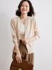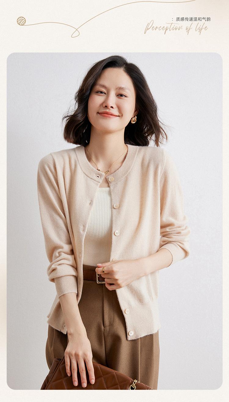 Cárdigan de cachemira para mujer, 100% cachemira pura, otoño e invierno, nuevo abrigo de punto con cuello redondo y hebilla y mangas abullonadas