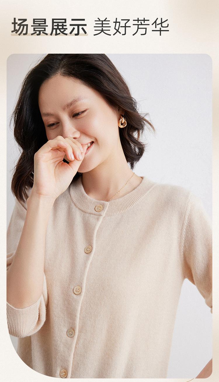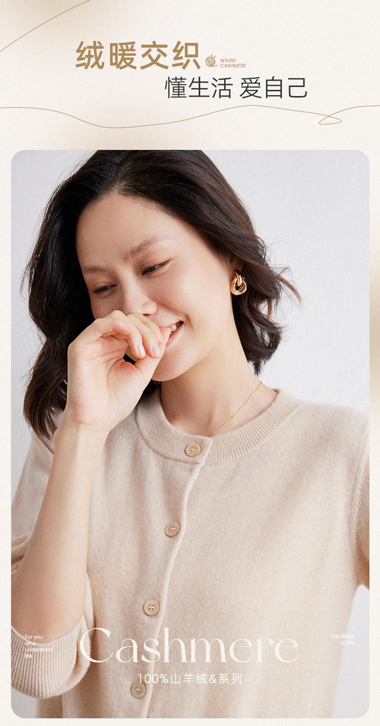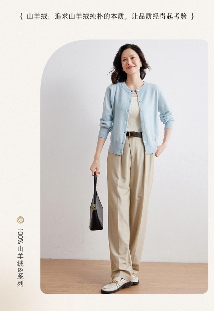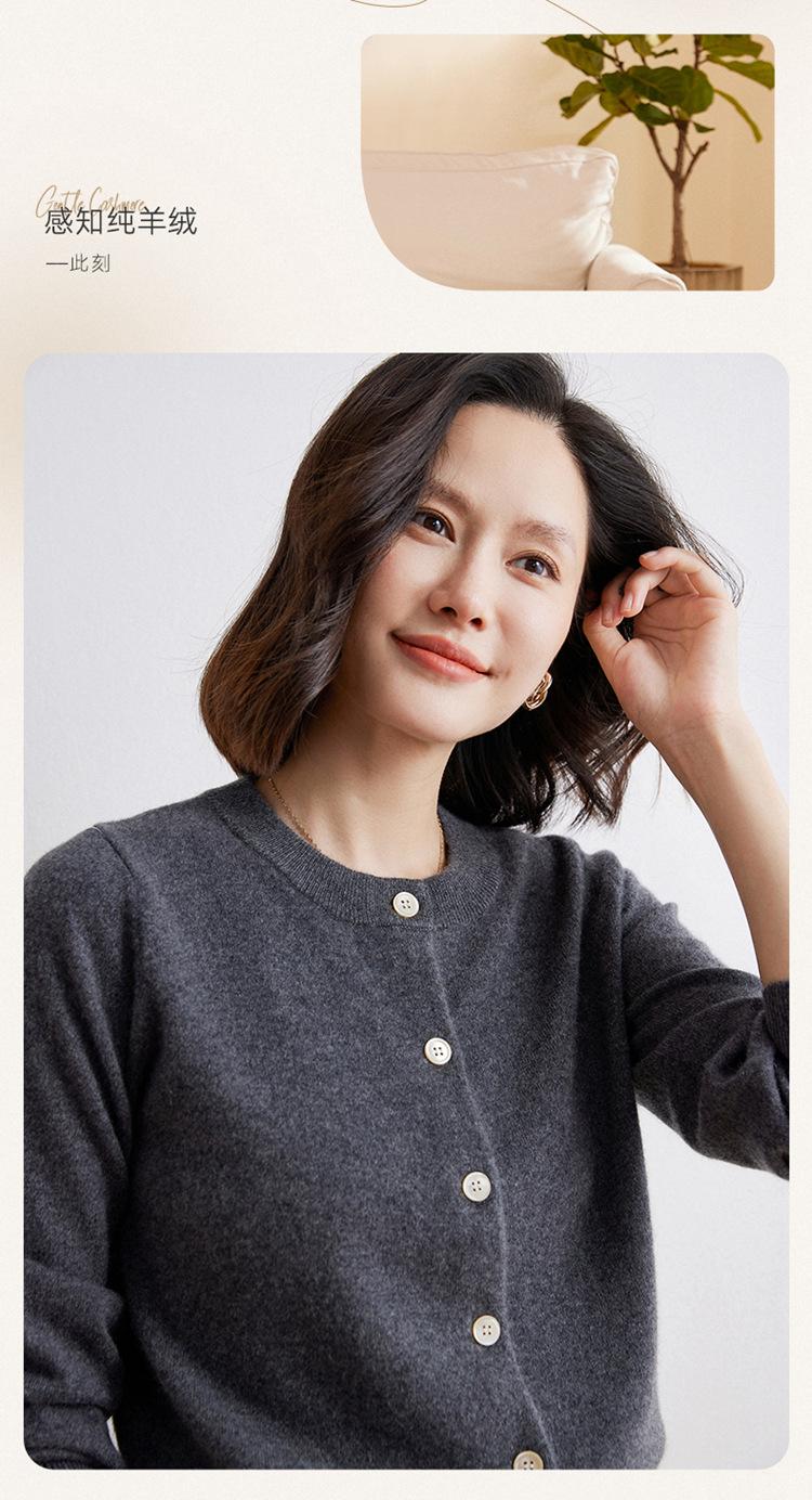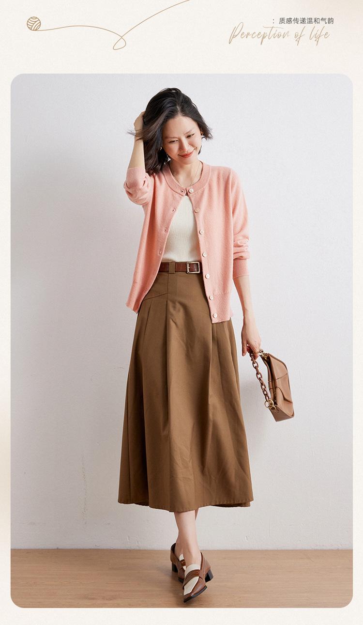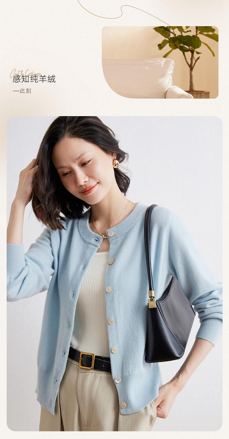 Cárdigan de cachemira para mujer, 100% cachemira pura, otoño e invierno, nuevo abrigo de punto con cuello redondo y hebilla y mangas abullonadas