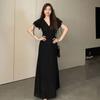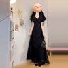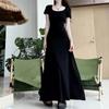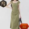 Elegante vestido largo verde de alta gama para mujer, de verano, con cintura ajustada y adelgazante, estilo Hepburn, estilo francés, elegante y hermoso vestido con cuello cuadrado.