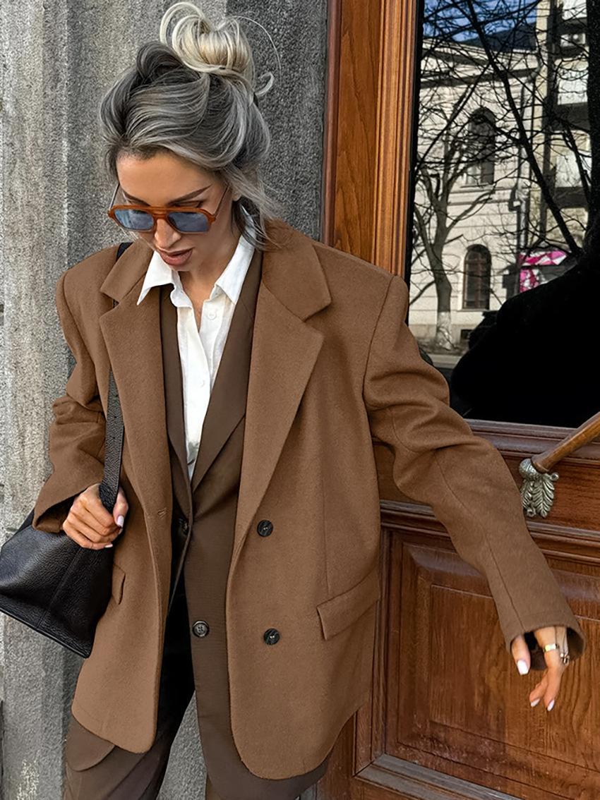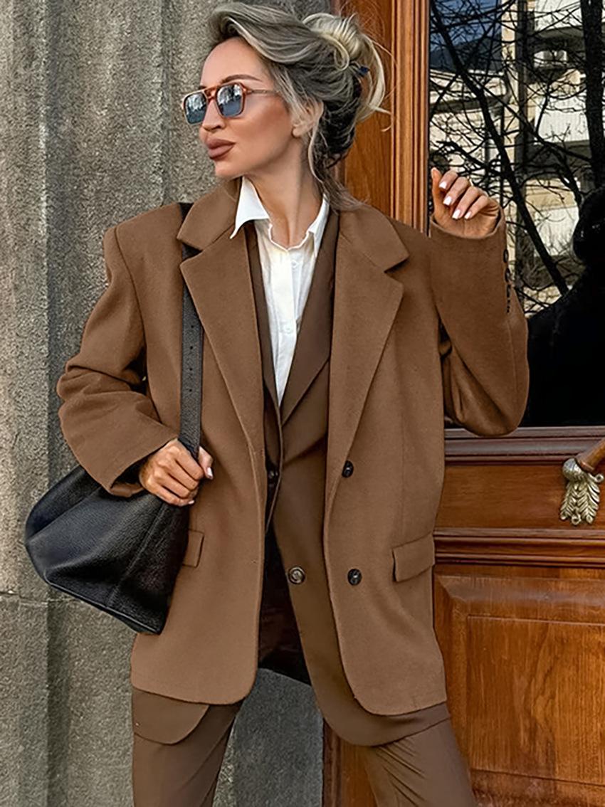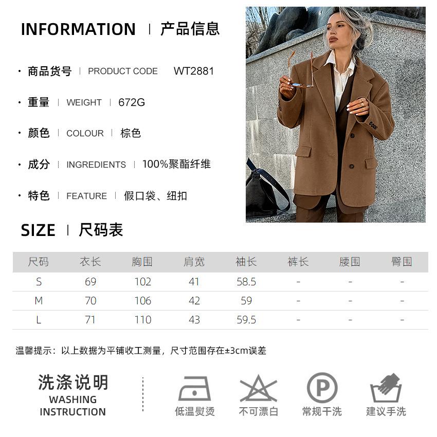 Traje Simple Suelto Europeo y Americano Chaqueta de Lana 2024 Otoño e Invierno Nuevo Nicho Transfronterizo Color Sólido Versátil Top Casual