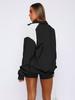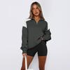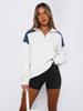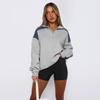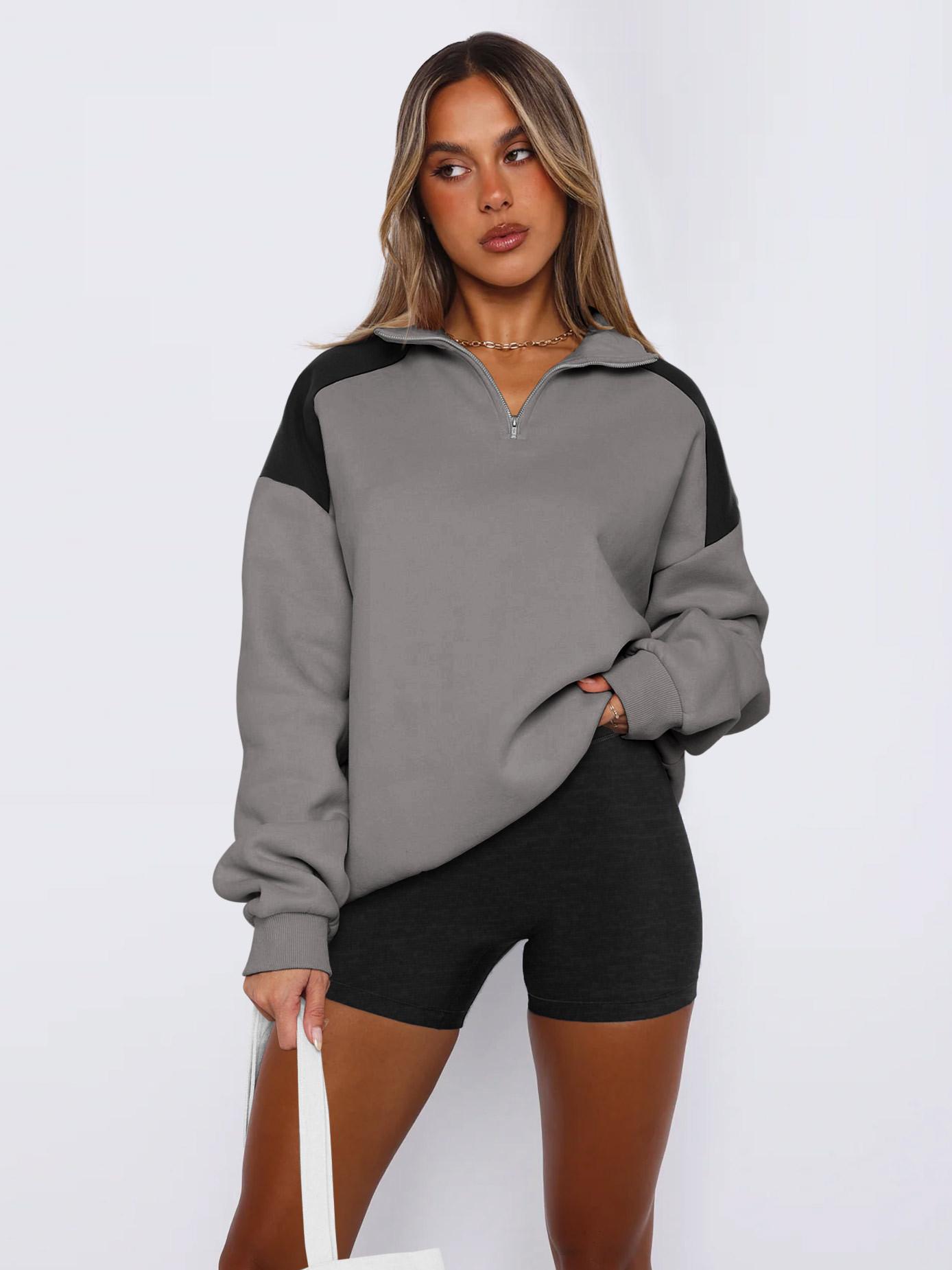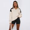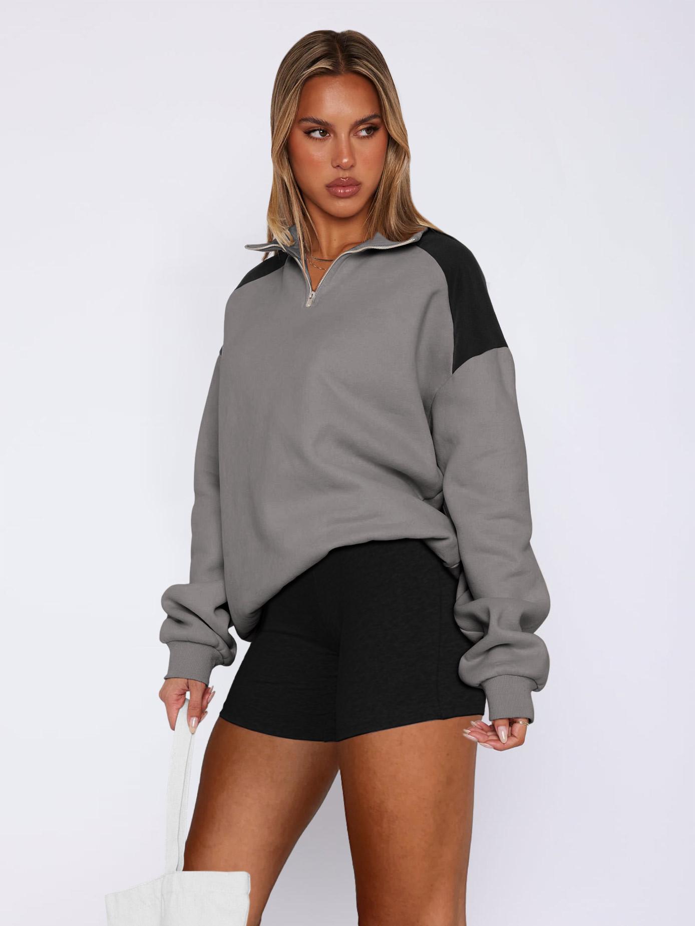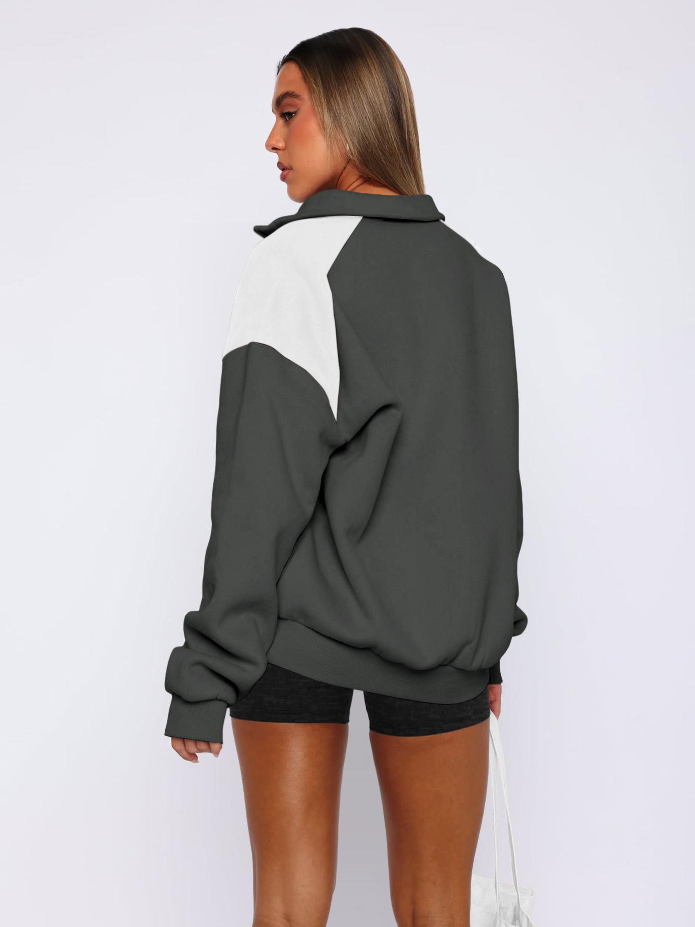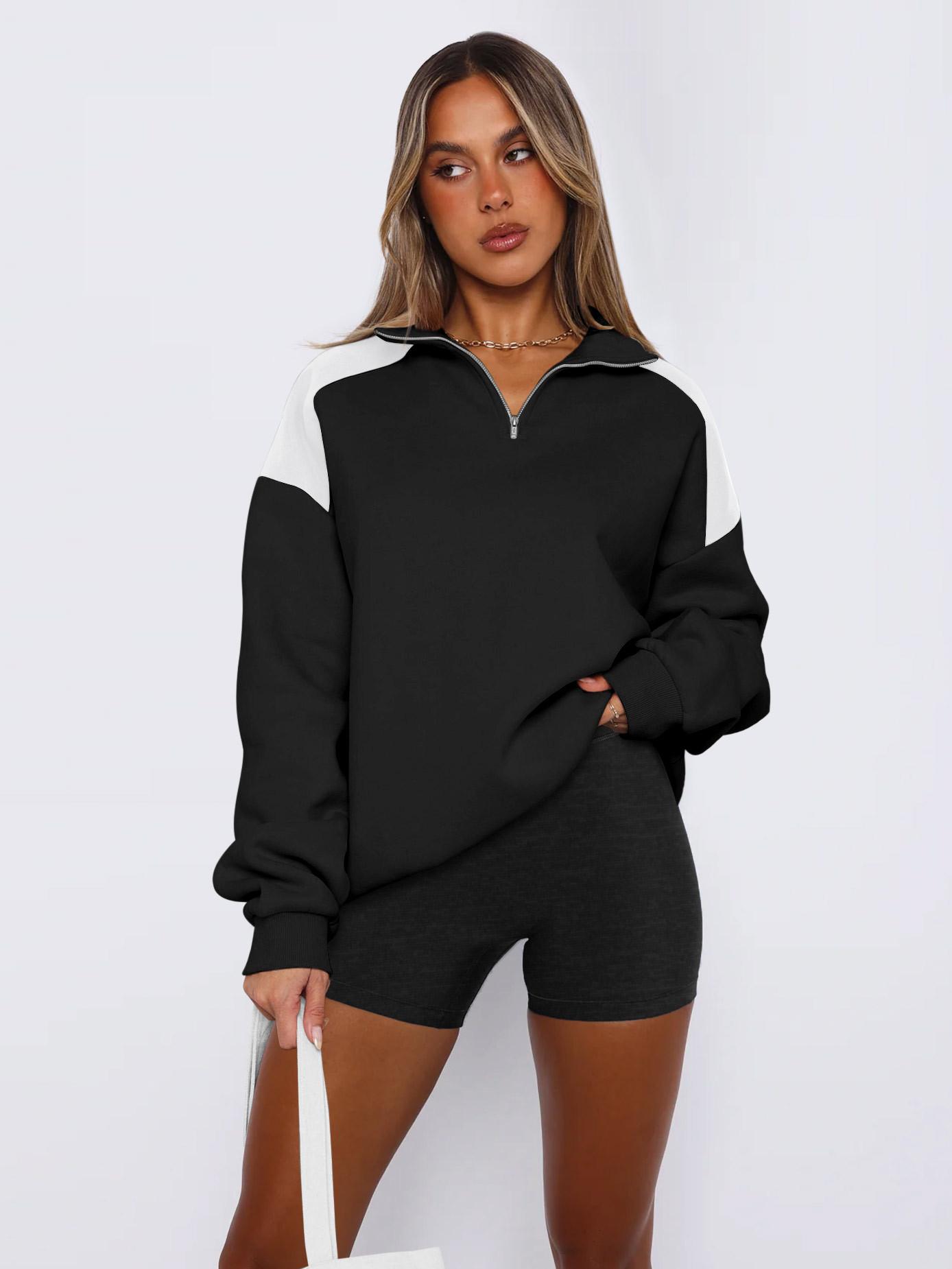 2025 Otoño e Invierno Transfronterizo Retro Color en Contraste Cuello Polo Media Cremallera Sudadera Holgada Diseño Moderno Top de Manga Larga
