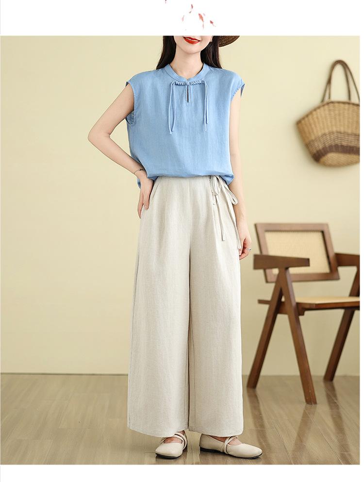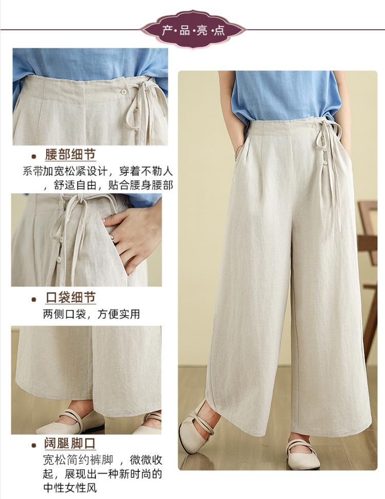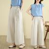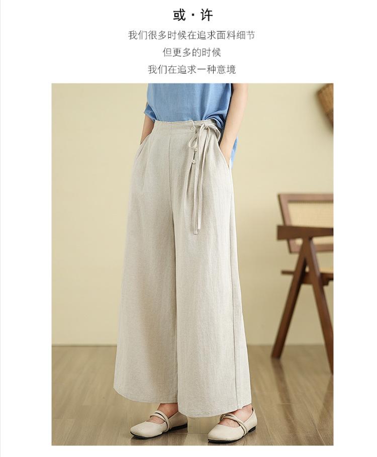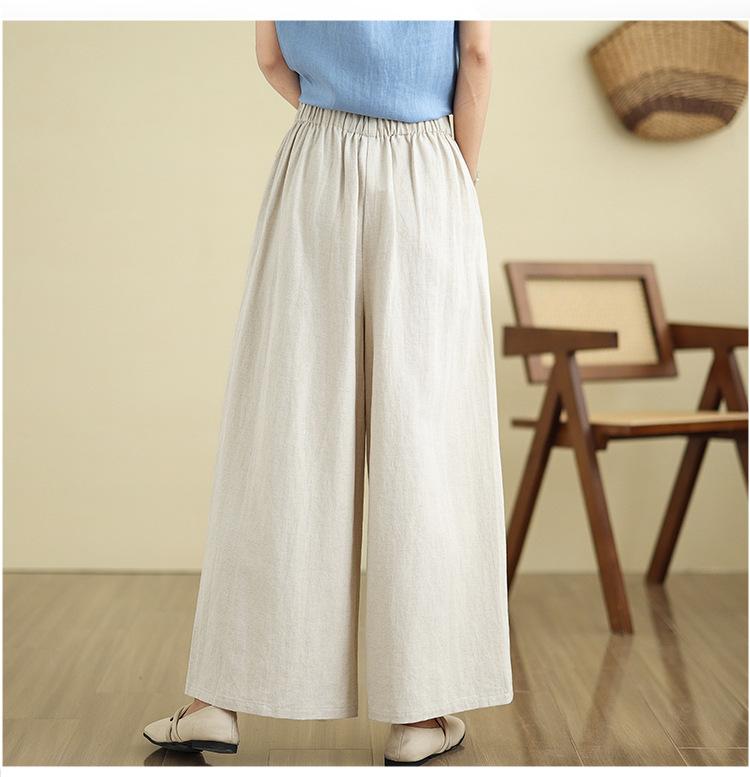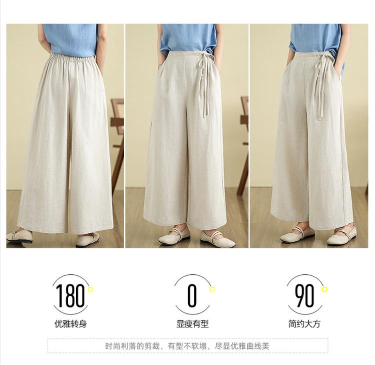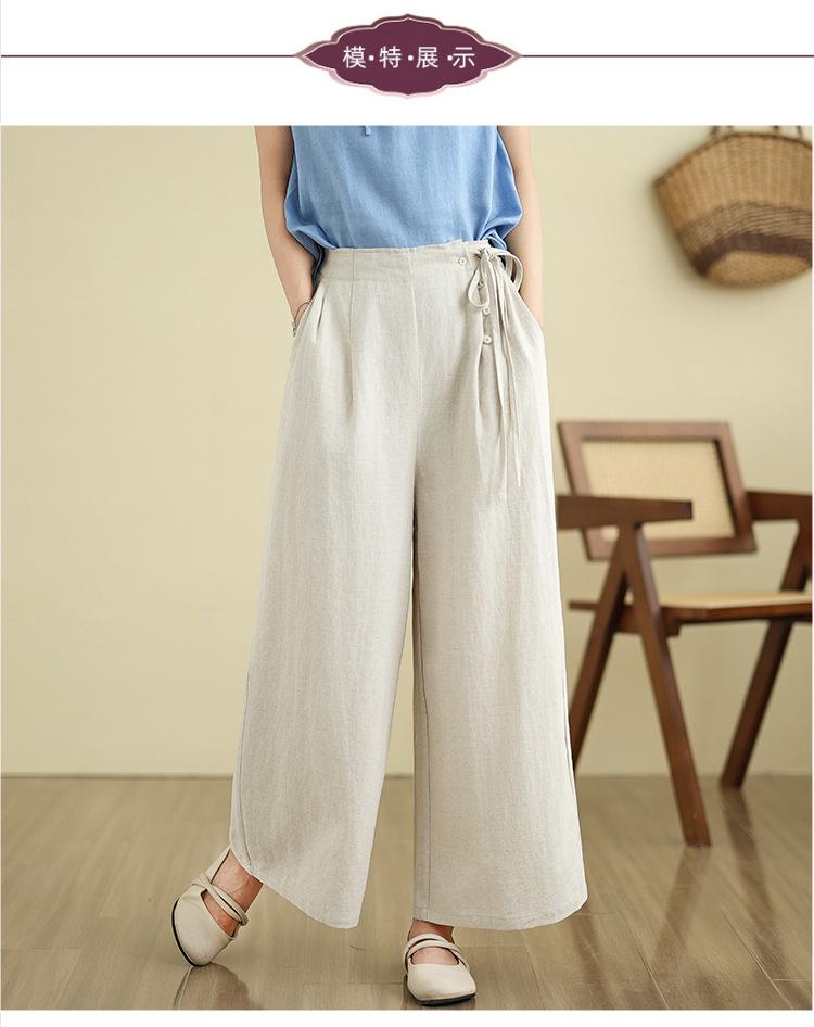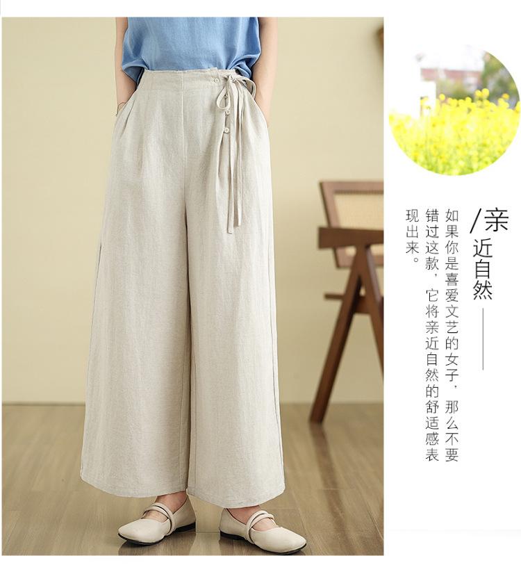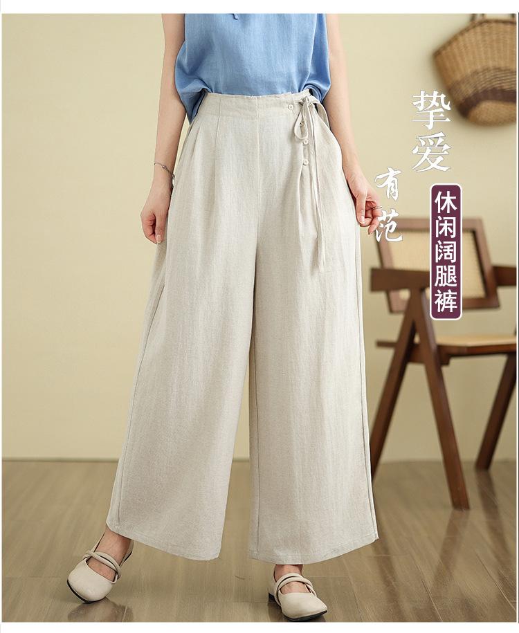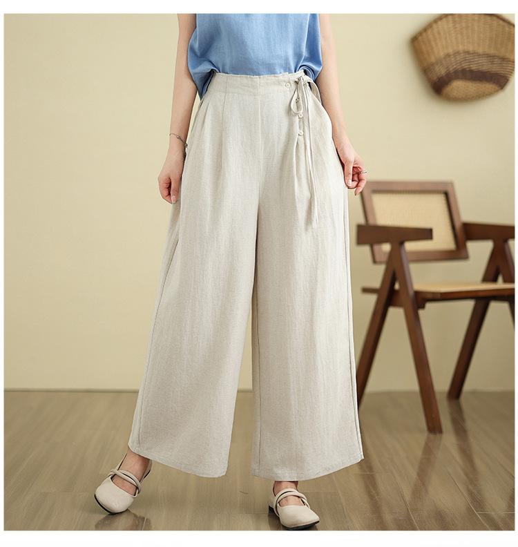 Pantalones casuales de lino y algodón de talla grande para mujer, novedad de verano 2024, pantalones finos, sueltos, rectos, de pierna ancha, hasta los tobillos.