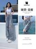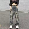 2024 American High Street Lavado Desgastado Roto Cintura Alta Micro Acampanados Jeans para Hombre y Mujer Marca de Tendencia PUNK Guapo Pantalones Largos para Mujer