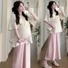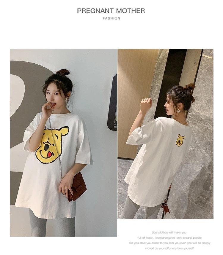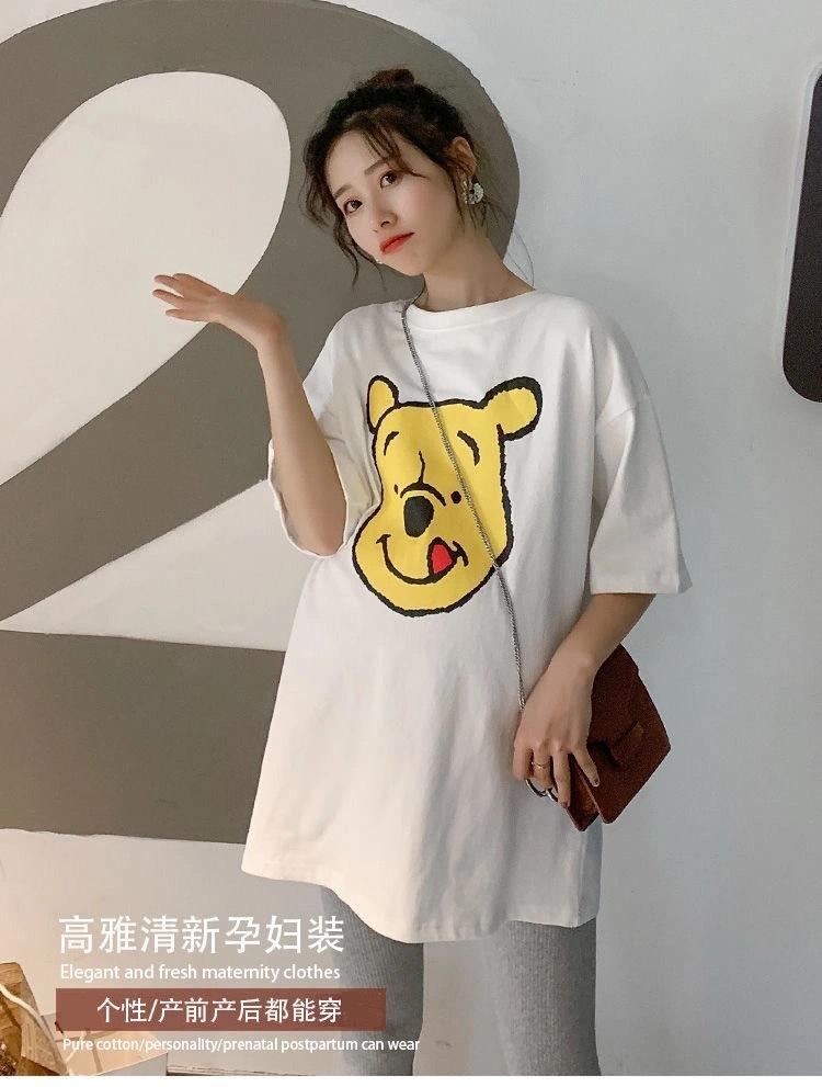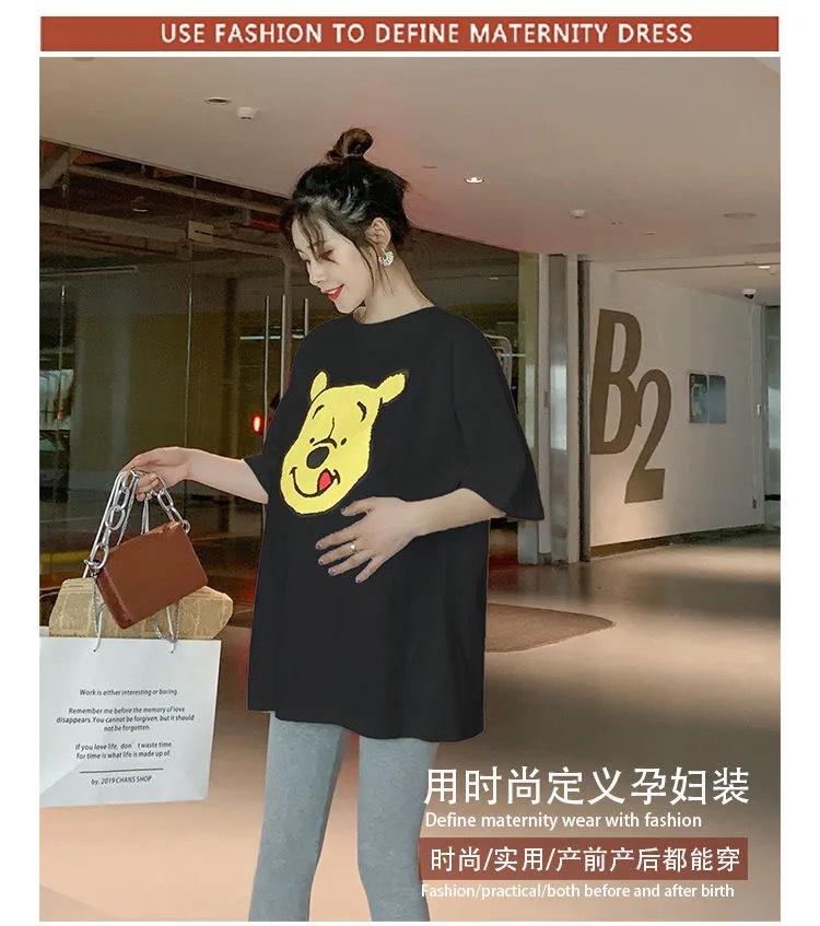 Traje de maternidad de verano de talla grande para celebridades de Internet, moda coreana, camiseta de algodón puro para mamá, camisa base de verano para mujeres embarazadas.