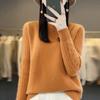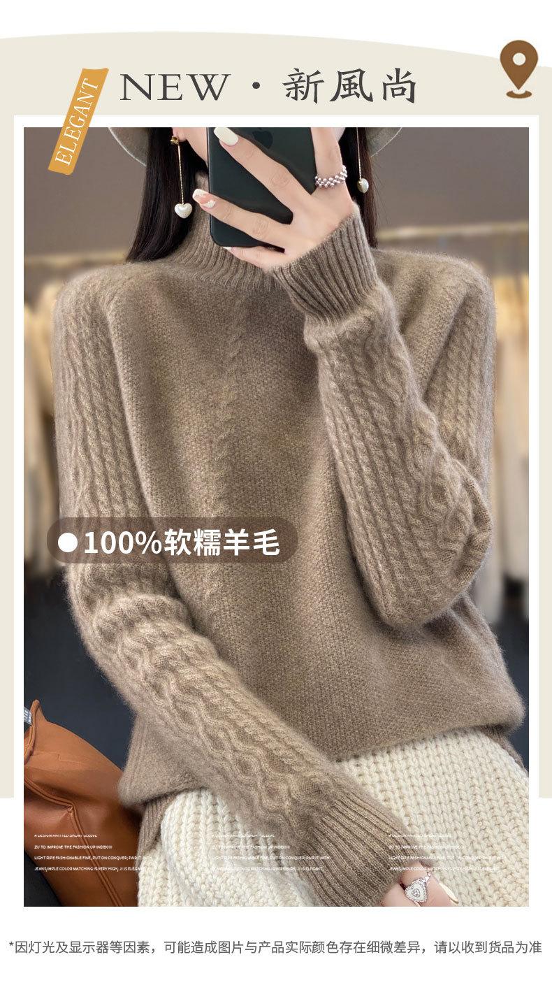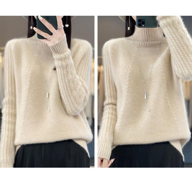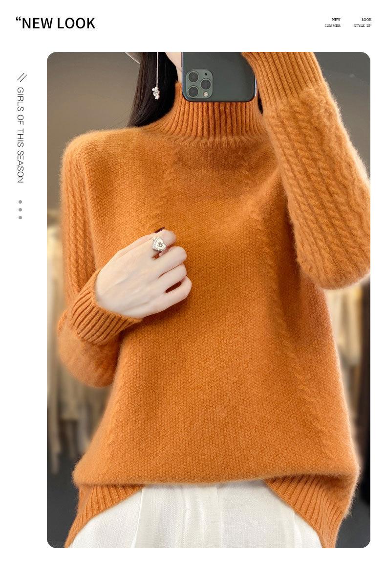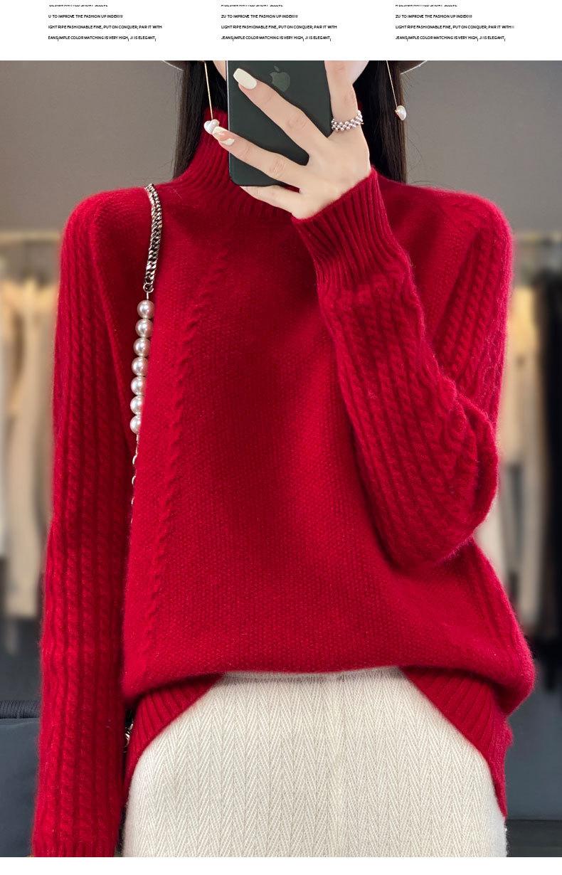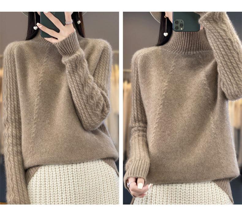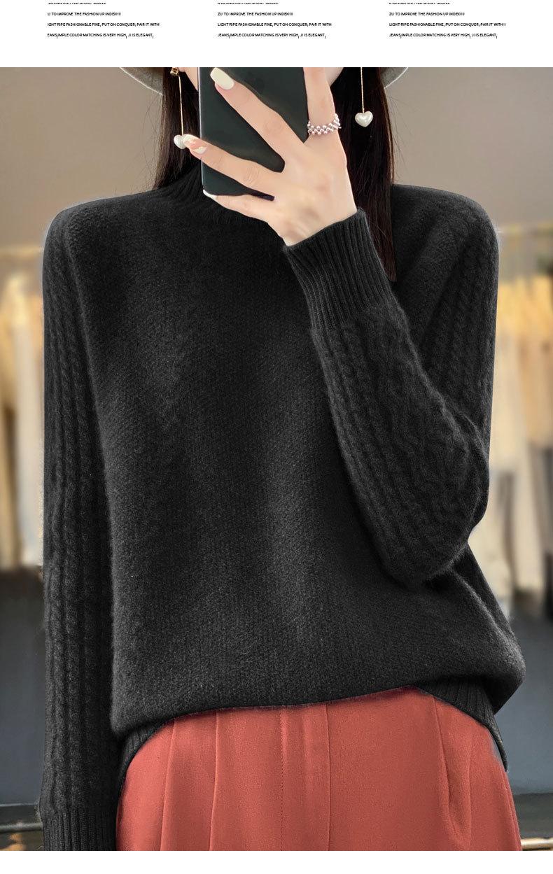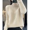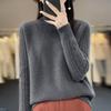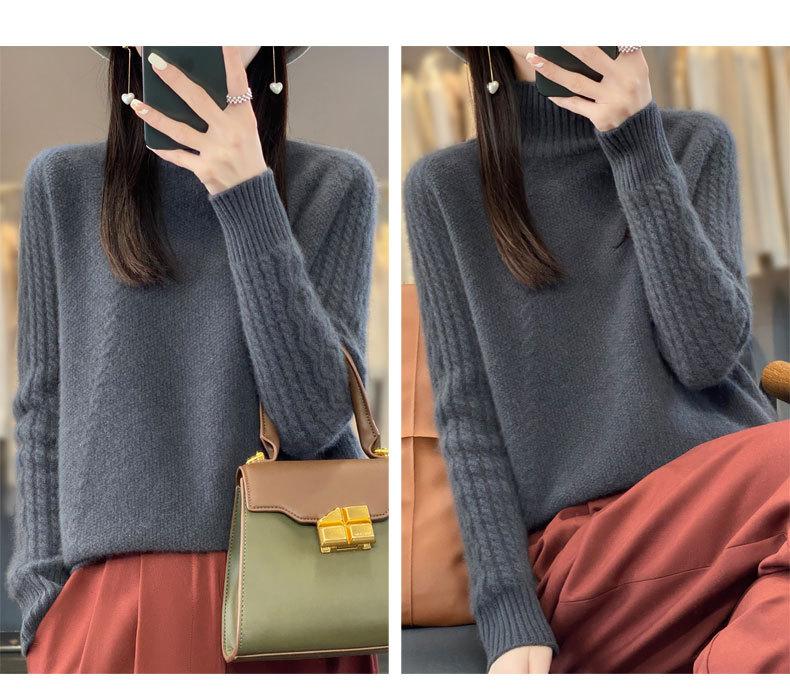 Suéter de lana 100% pura, suéter de cuello alto medio, suéter de mujer, suéter holgado de otoño e invierno, camisa de base de lana de punto adelgazante de corte entallado