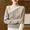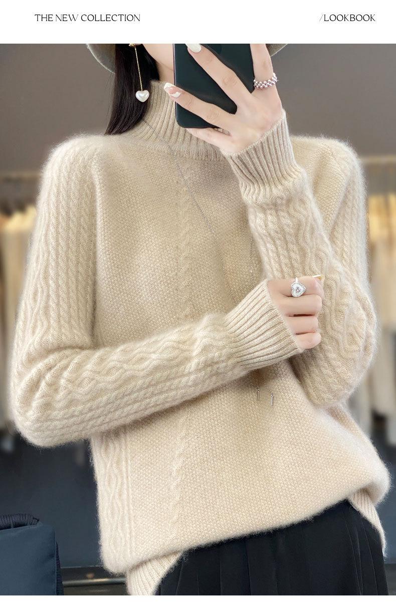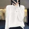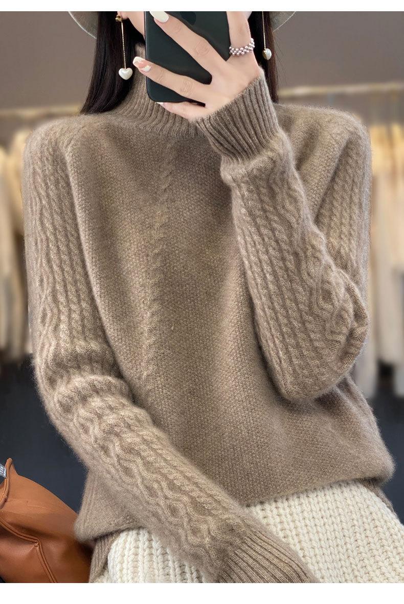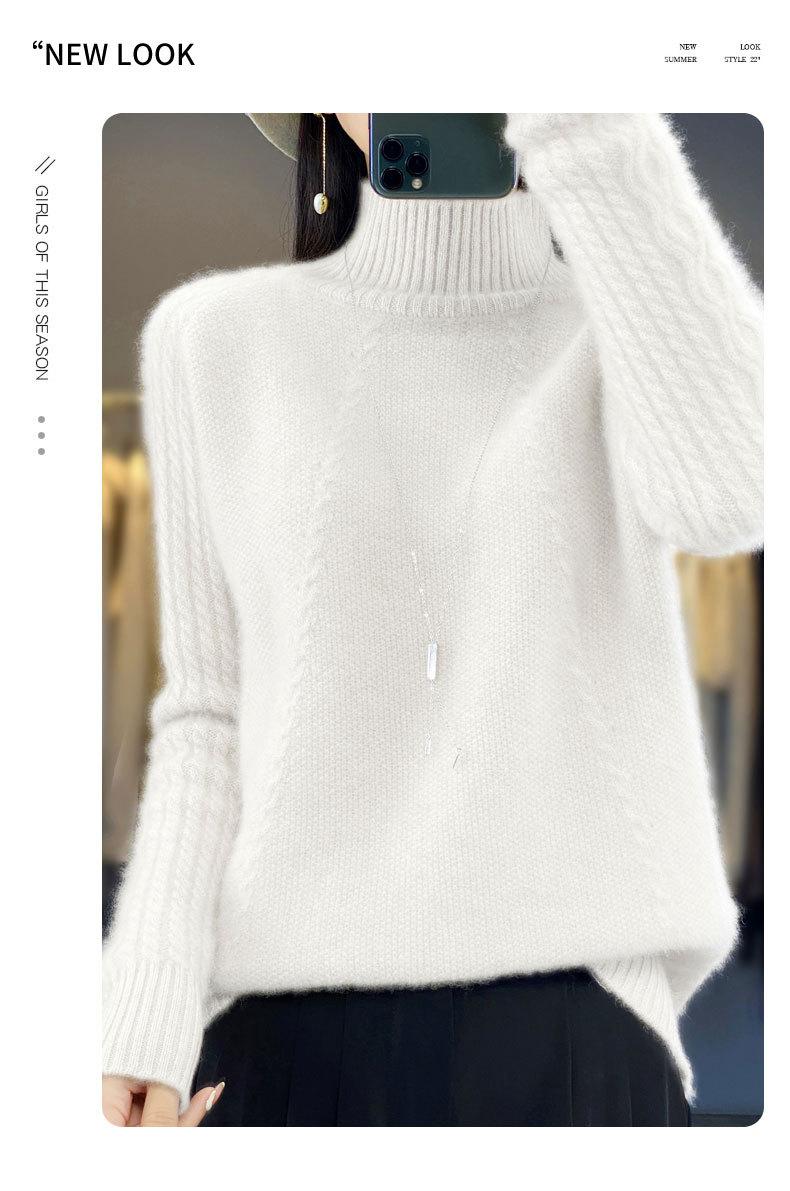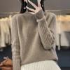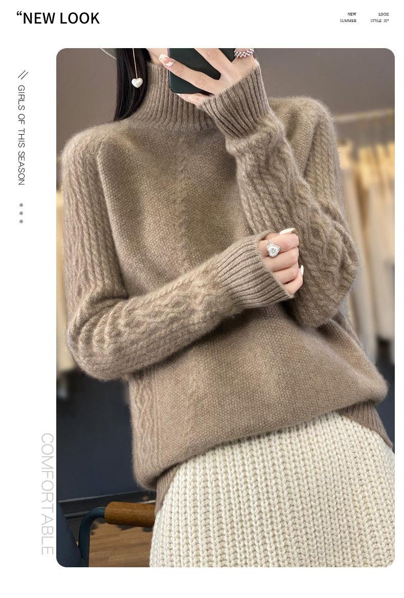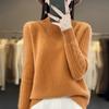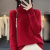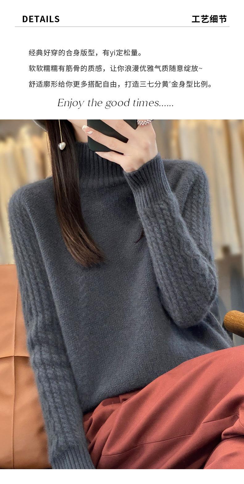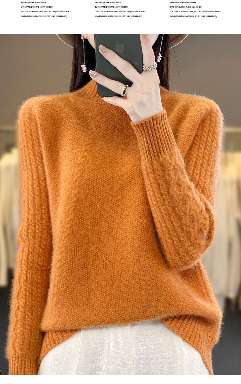Suéter de lana 100% pura, suéter de cuello alto medio, suéter de mujer, suéter holgado de otoño e invierno, camisa de base de lana de punto adelgazante de corte entallado