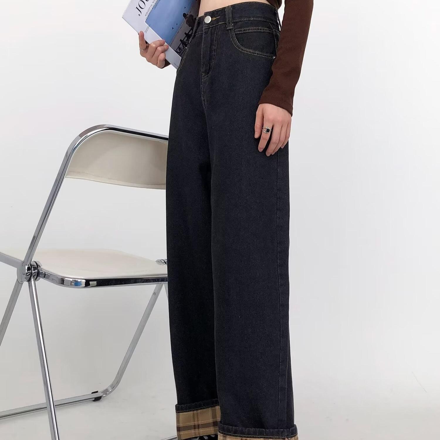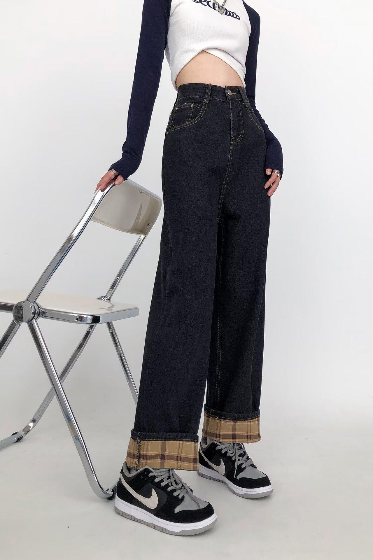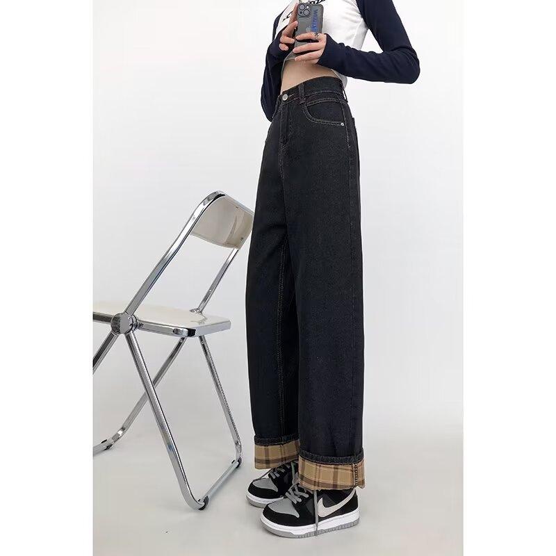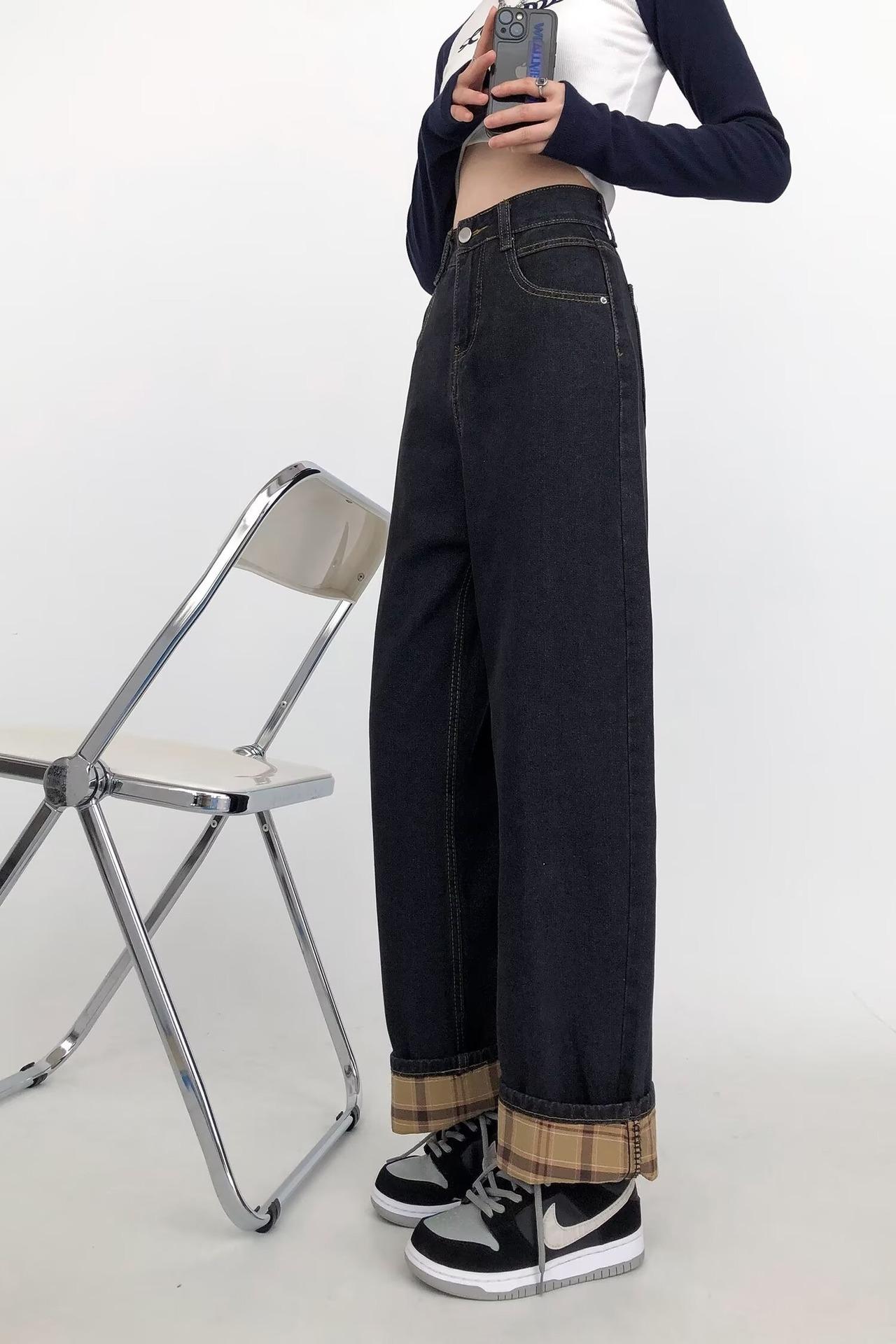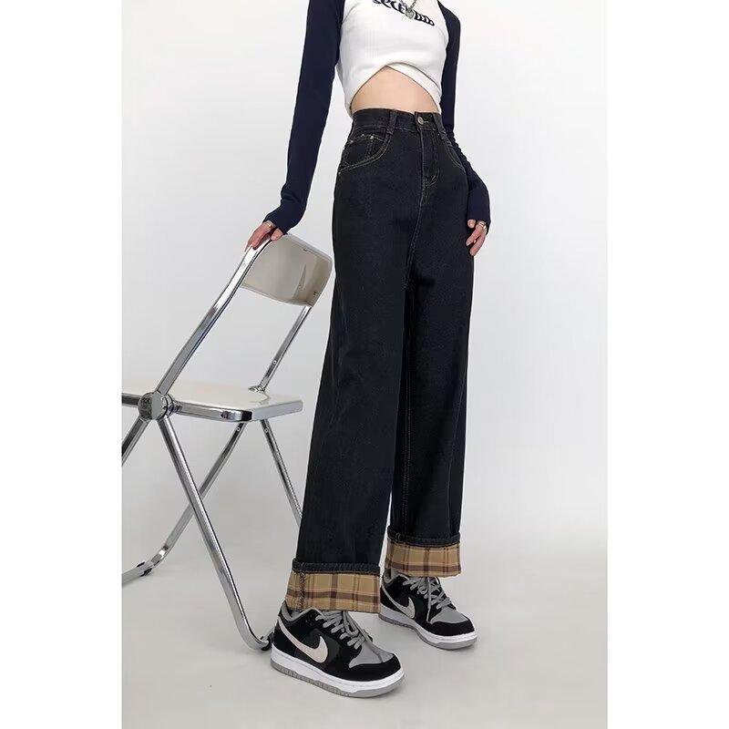 Pantalones vaqueros negros y grises ajustados para mujer, otoño 2024, nuevos, de cintura alta, holgados, ajustados, con corte de pera y rectos.