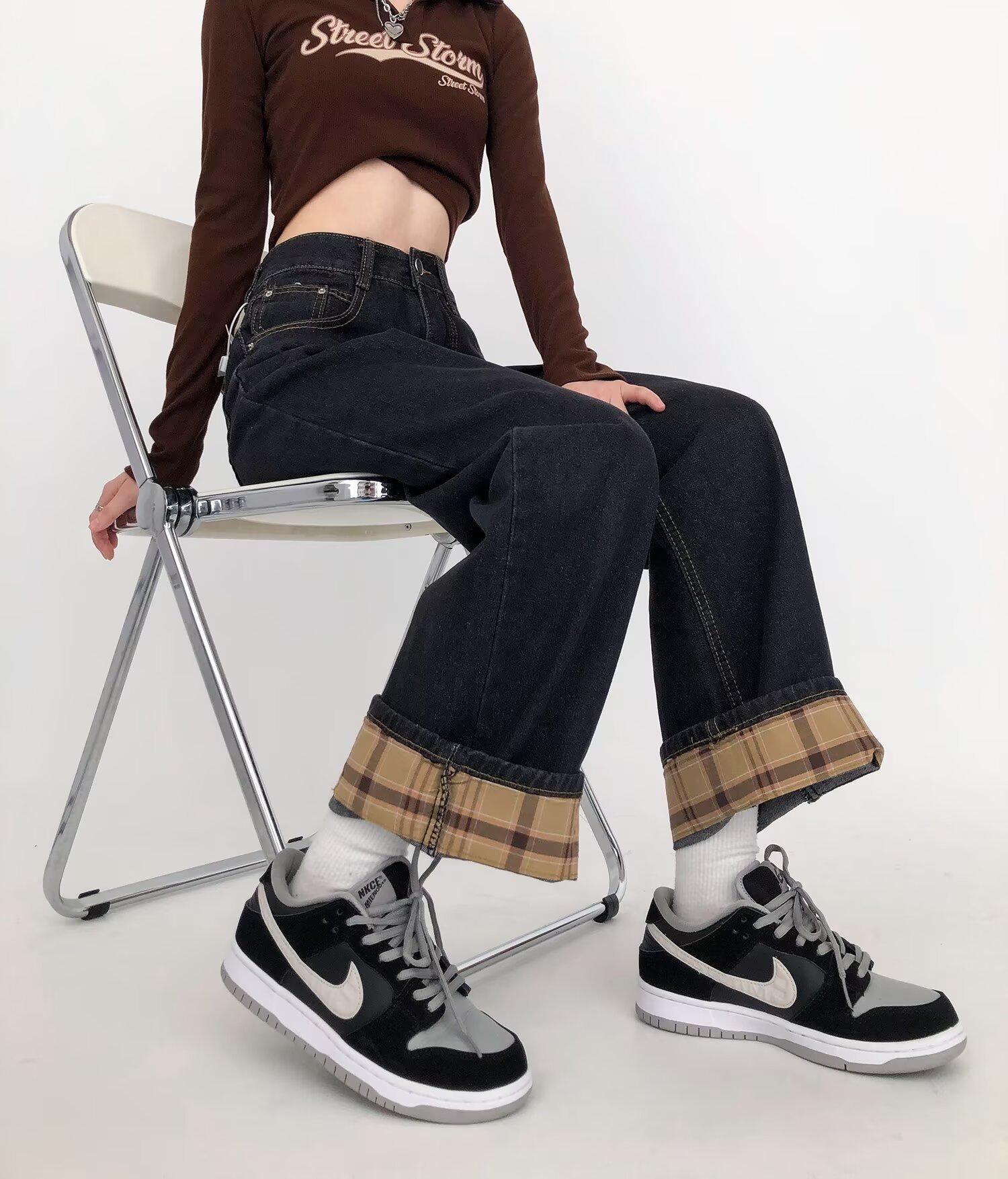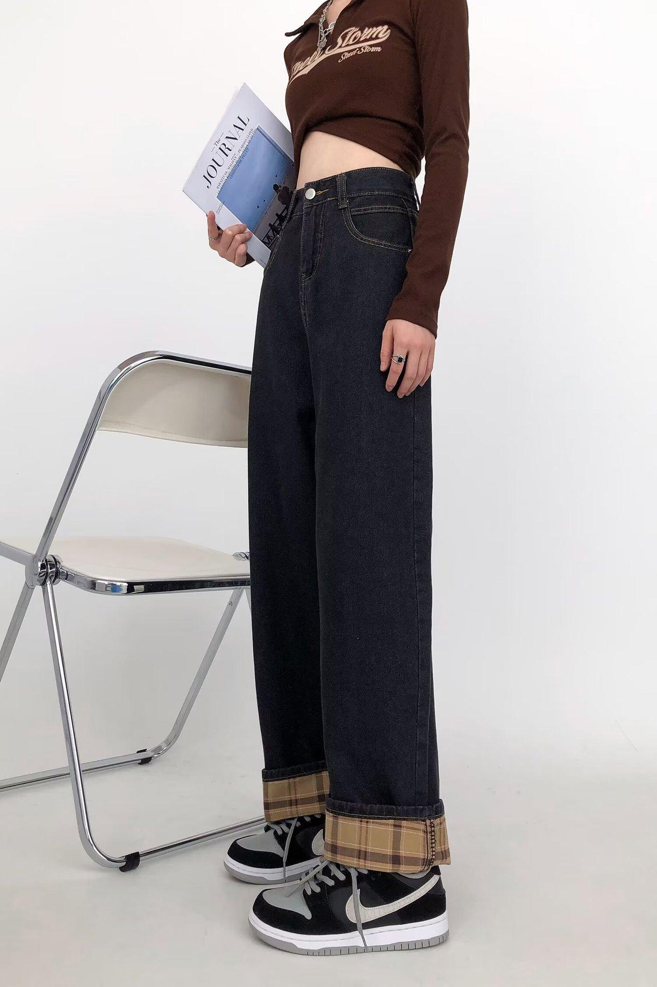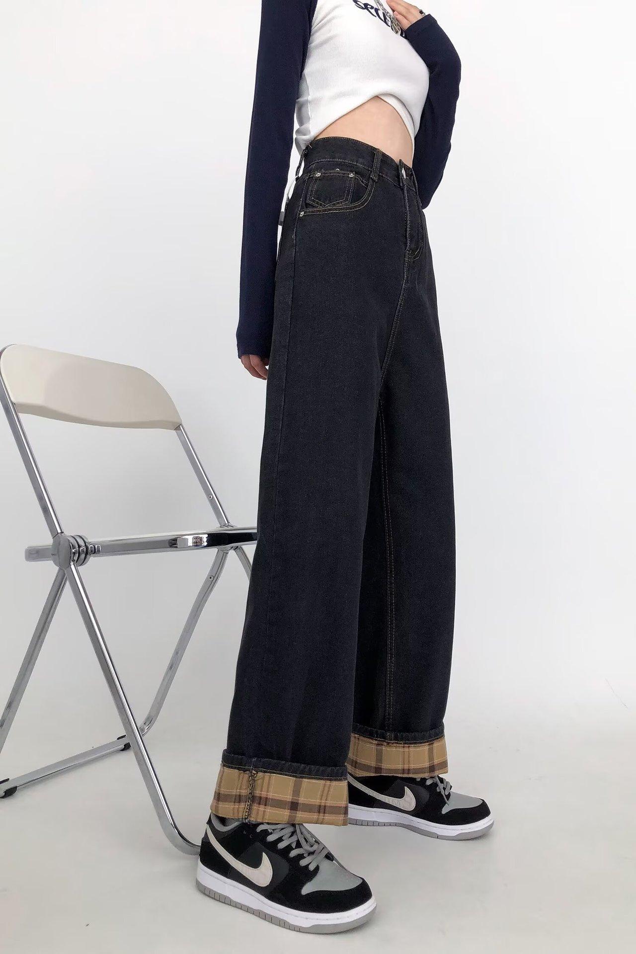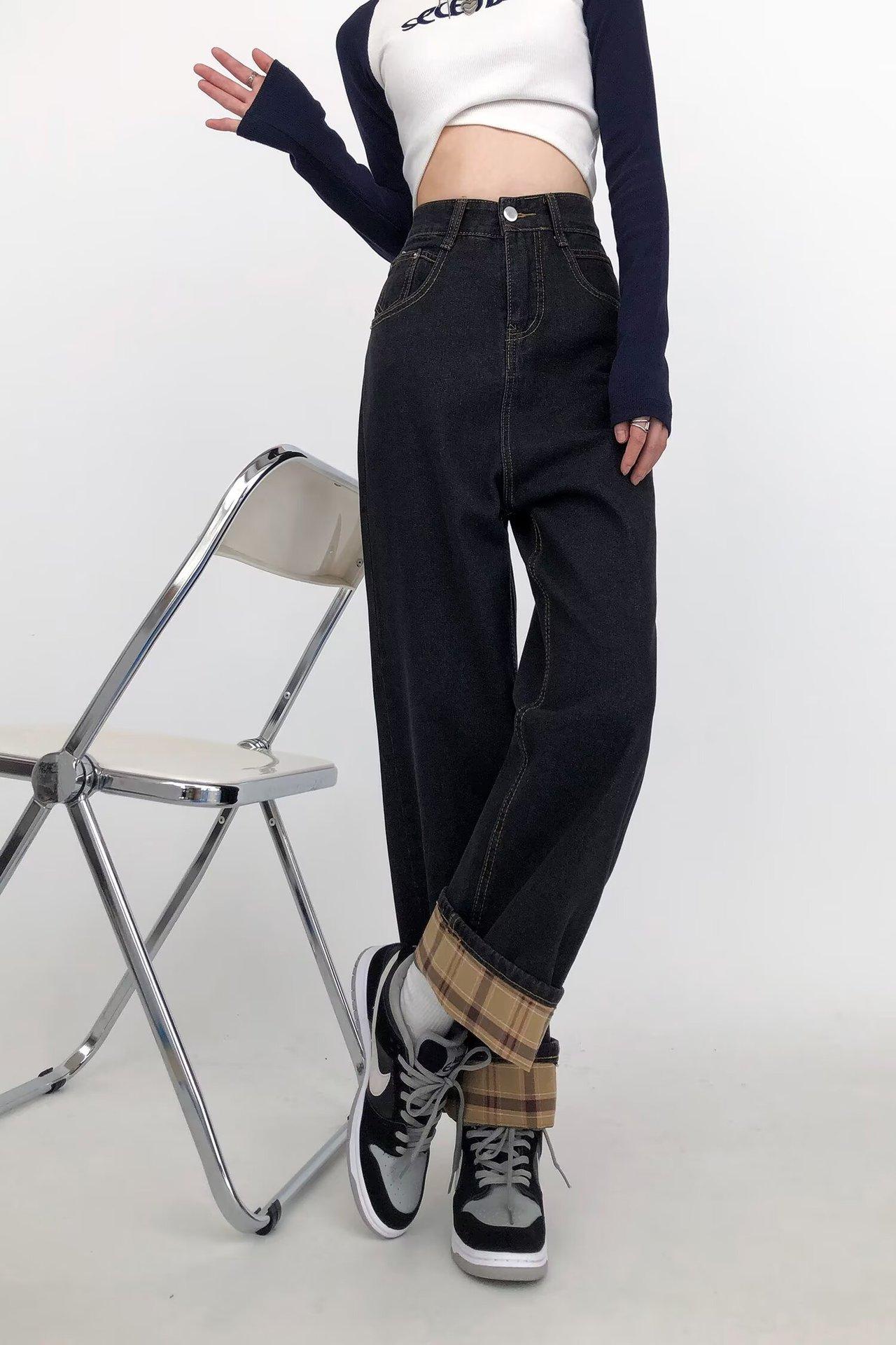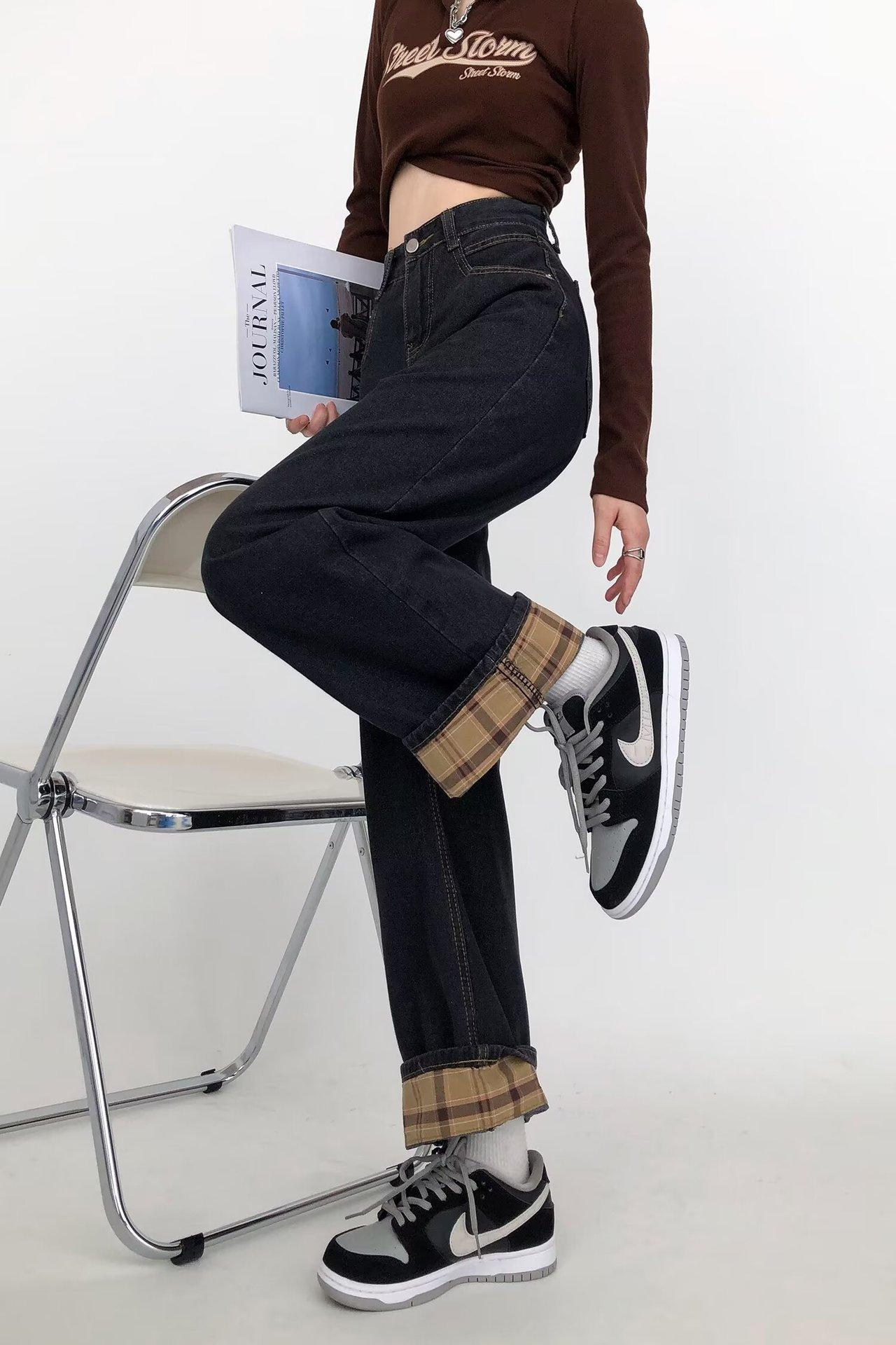 Pantalones vaqueros negros y grises ajustados para mujer, otoño 2024, nuevos, de cintura alta, holgados, ajustados, con corte de pera y rectos.