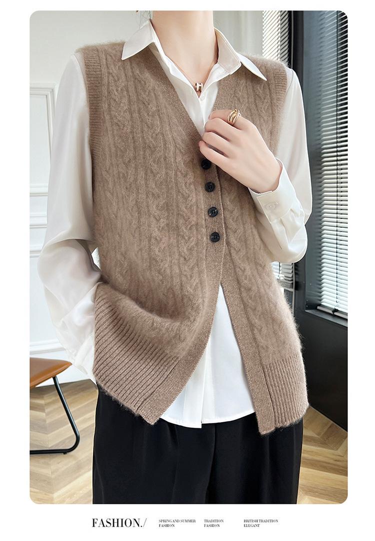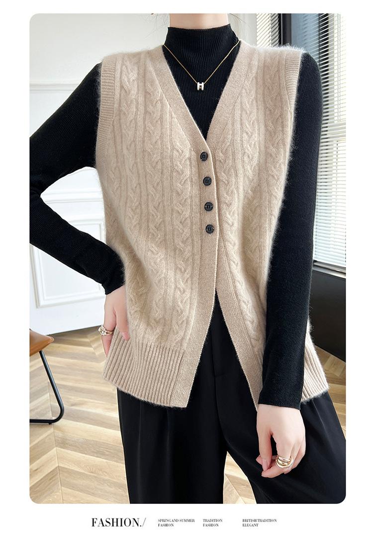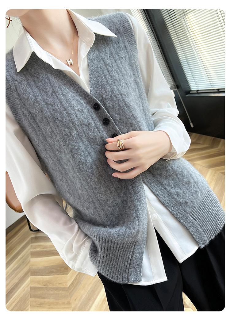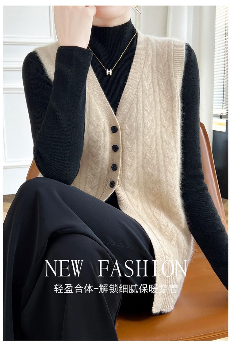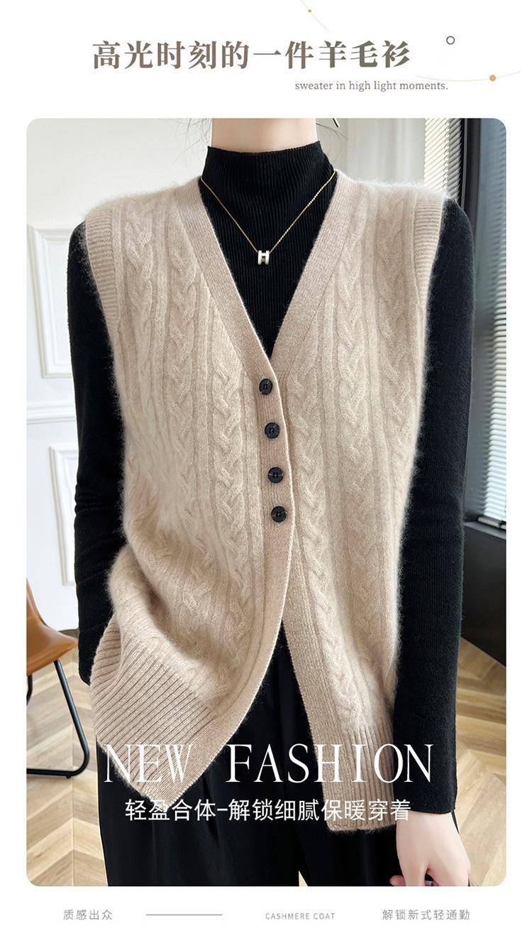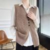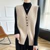 Cárdigan de punto con cuello en V para mujer, prenda exterior de lana, holgado, sin mangas, para otoño e invierno