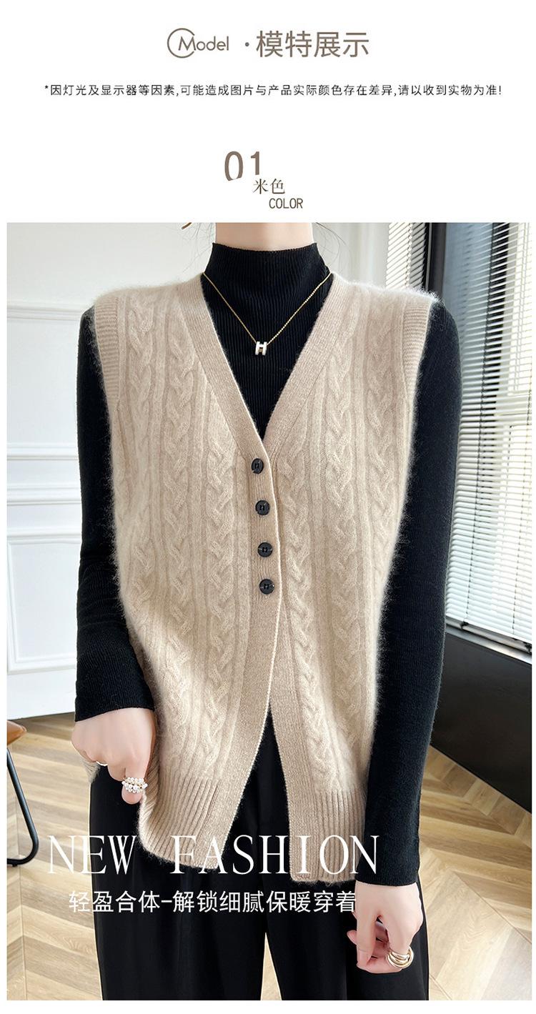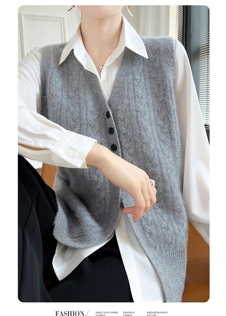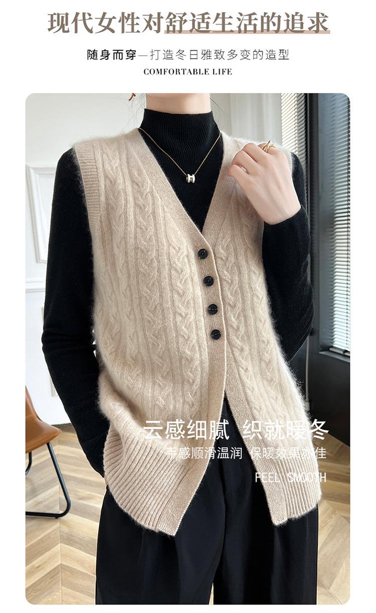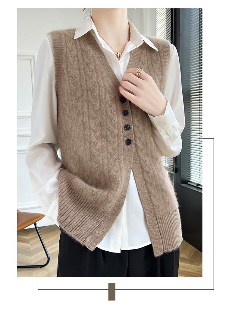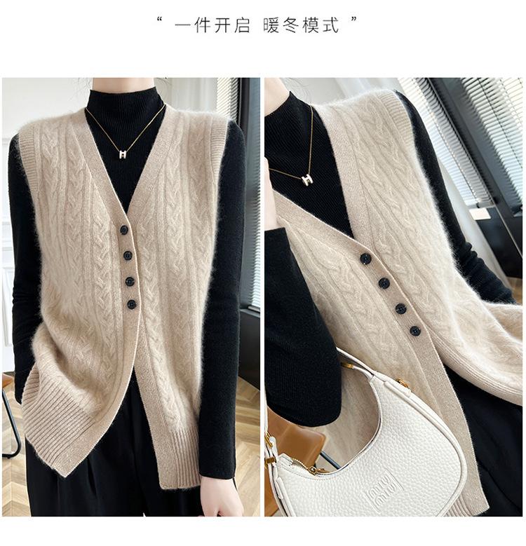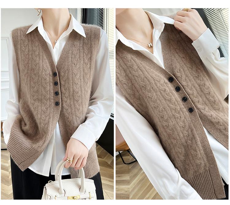 Cárdigan de punto con cuello en V para mujer, prenda exterior de lana, holgado, sin mangas, para otoño e invierno