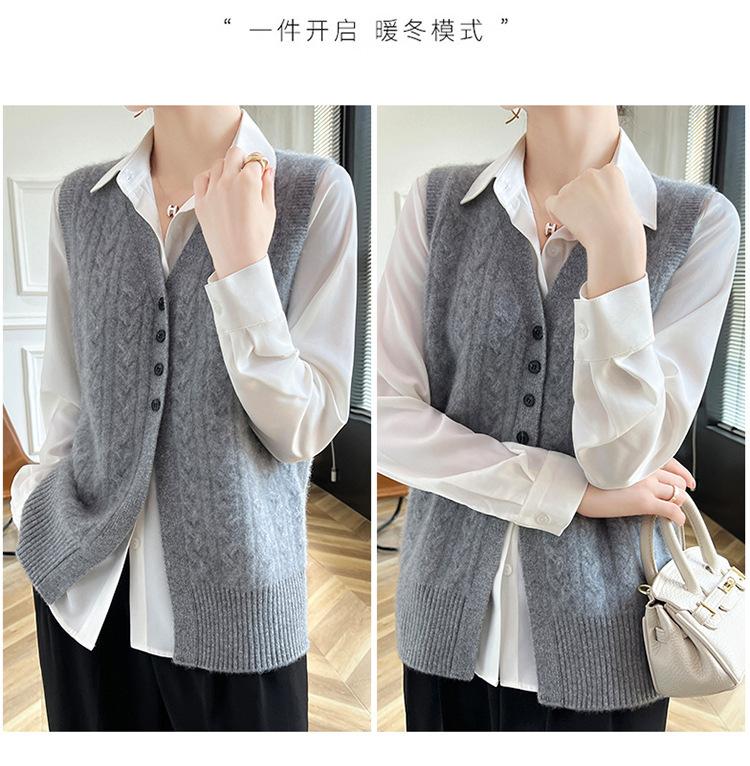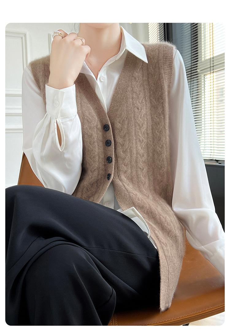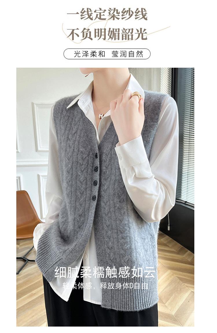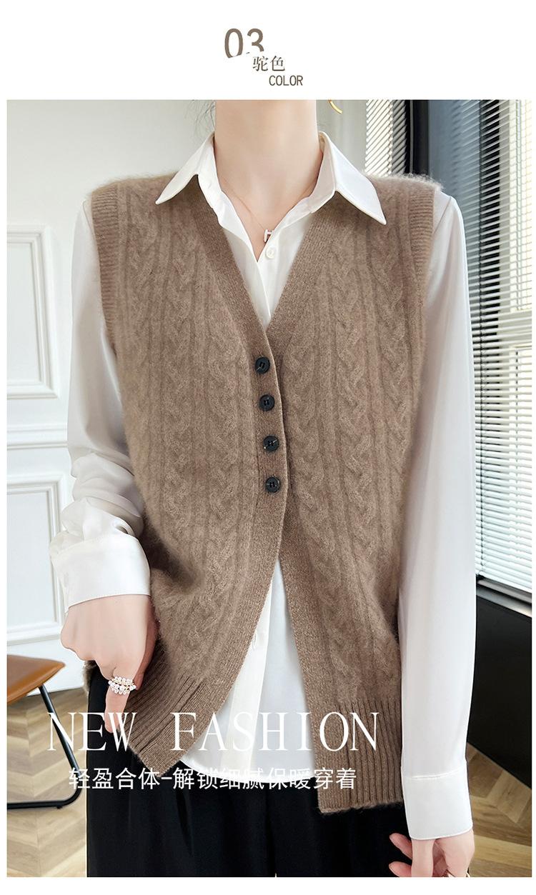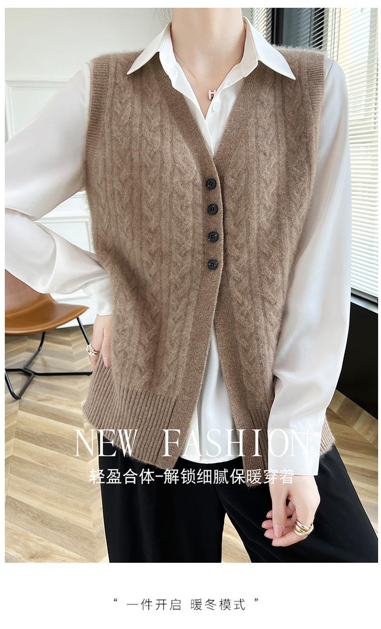 Cárdigan de punto con cuello en V para mujer, prenda exterior de lana, holgado, sin mangas, para otoño e invierno