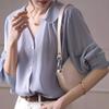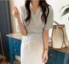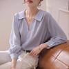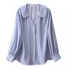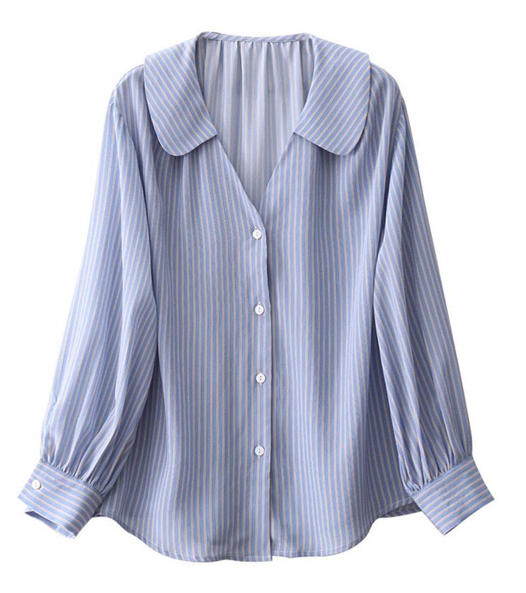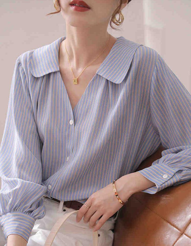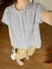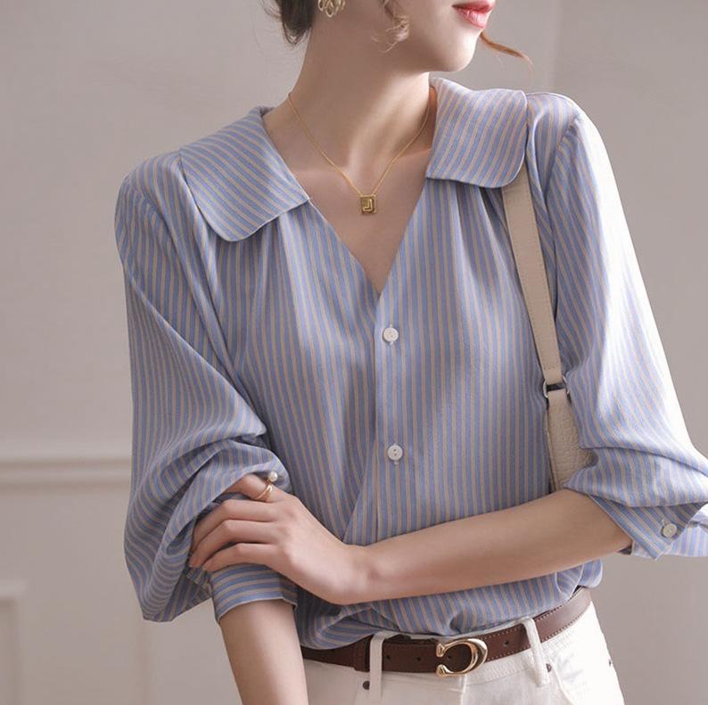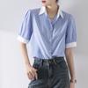 Camisa de rayas azules para mujer, diseño de verano, estilo nicho, manga de tres puntos, holgada, estilo europeo, elegante