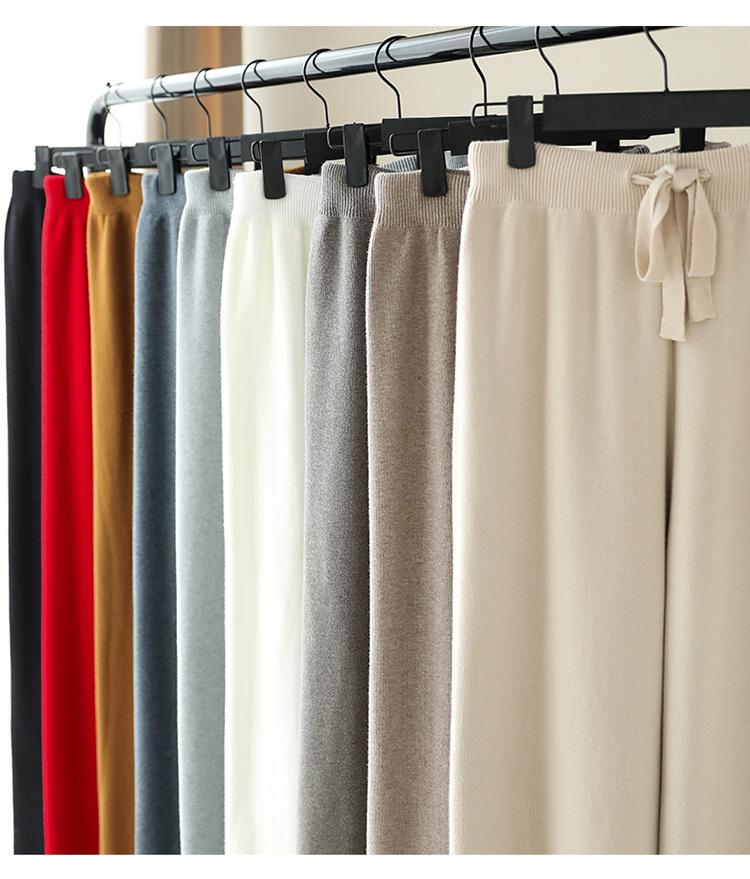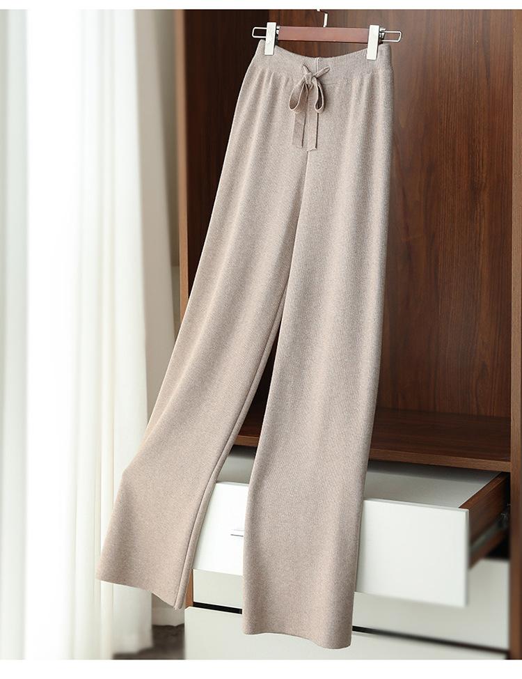 Pantalones de Pierna Ancha Nuevos para Otoño e Invierno 2025 Transfronterizos para Mujer, Pantalones Largos Rectos de Punto Casual Holgados de Cintura Alta con Caída hasta el Suelo