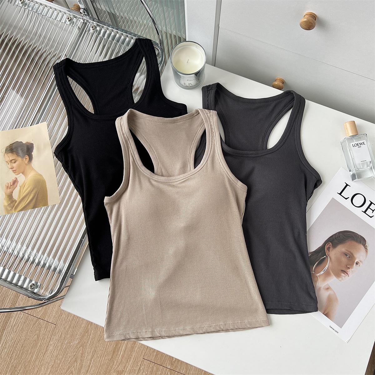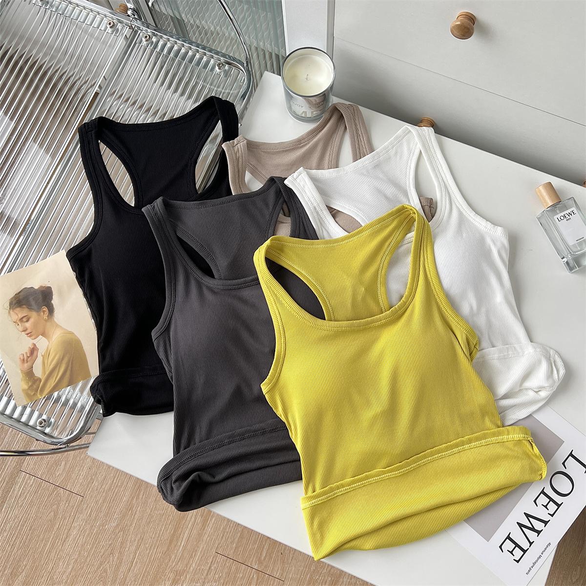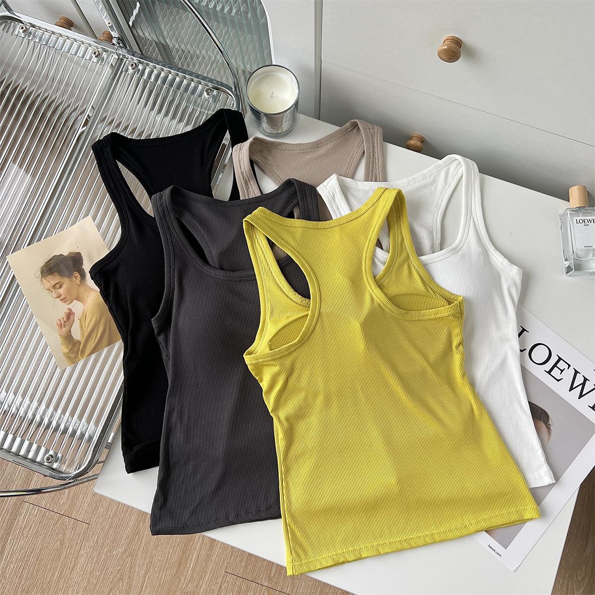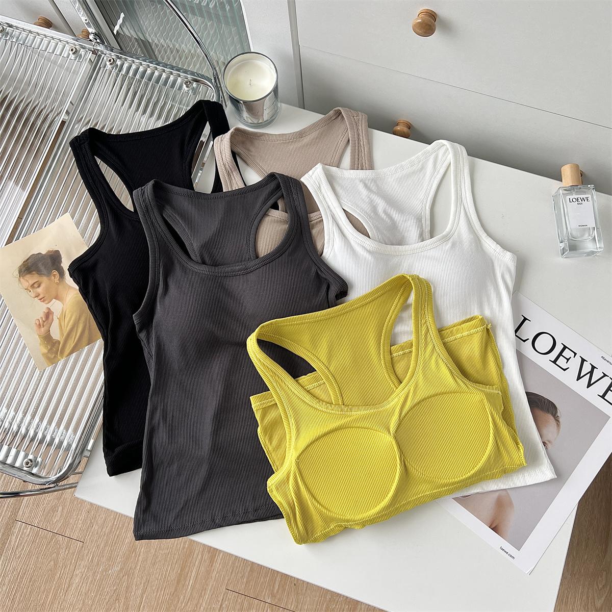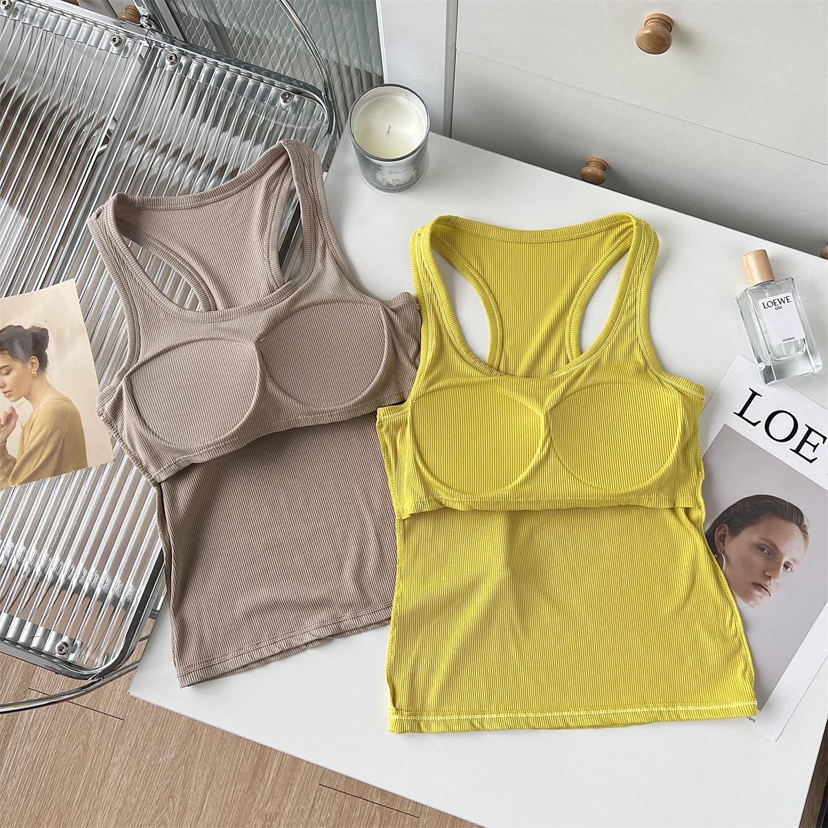 Camisola de verano para mujer, ropa interior de una pieza con almohadilla para el pecho, ropa interior de espalda de belleza, top fino de corte entallado que combina con todo.