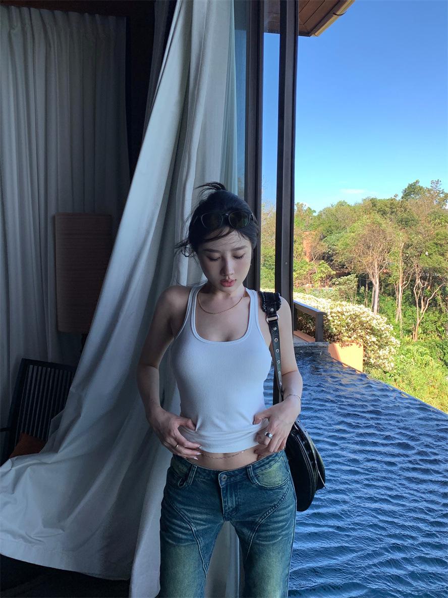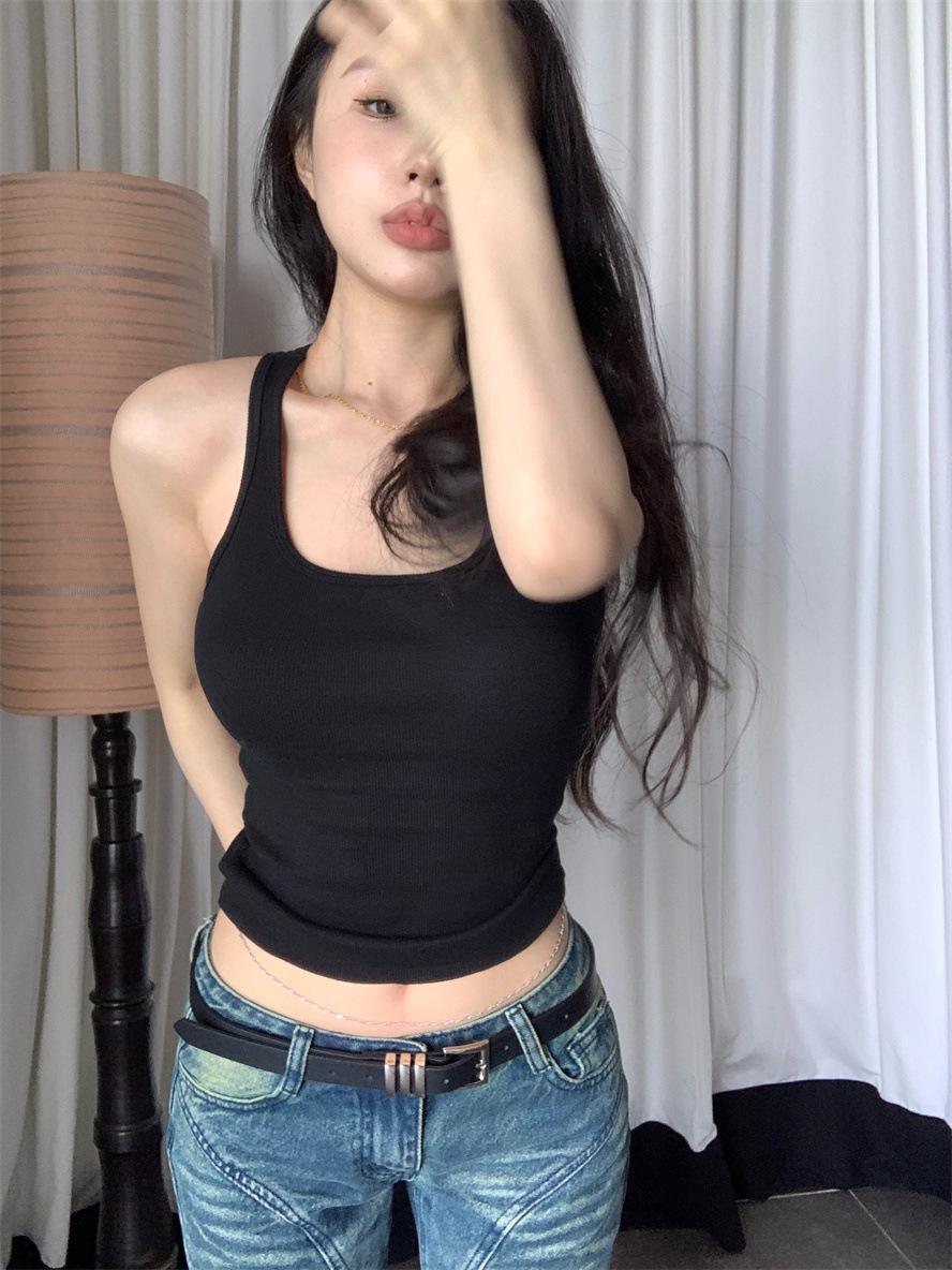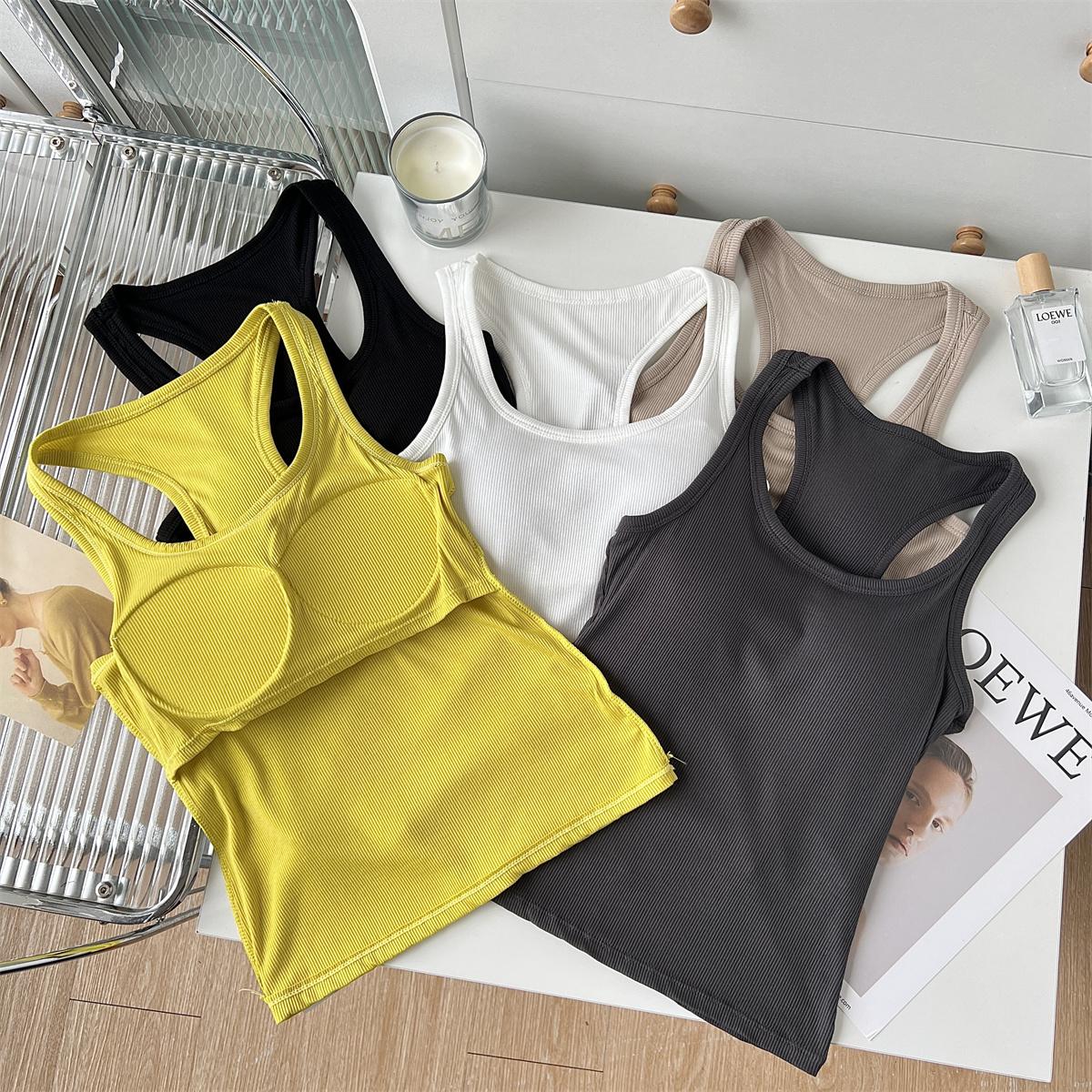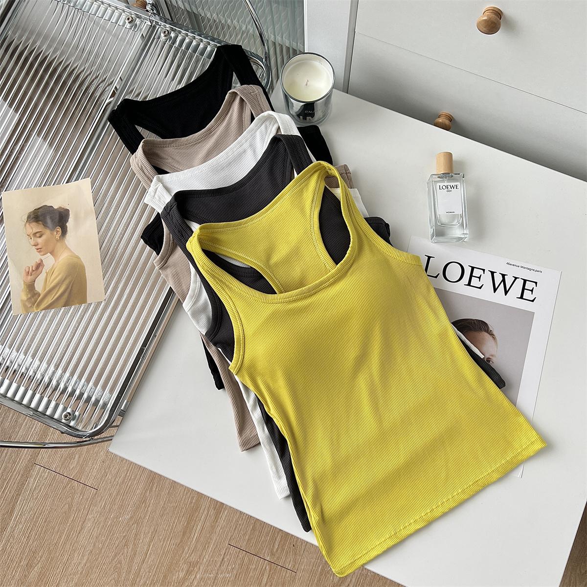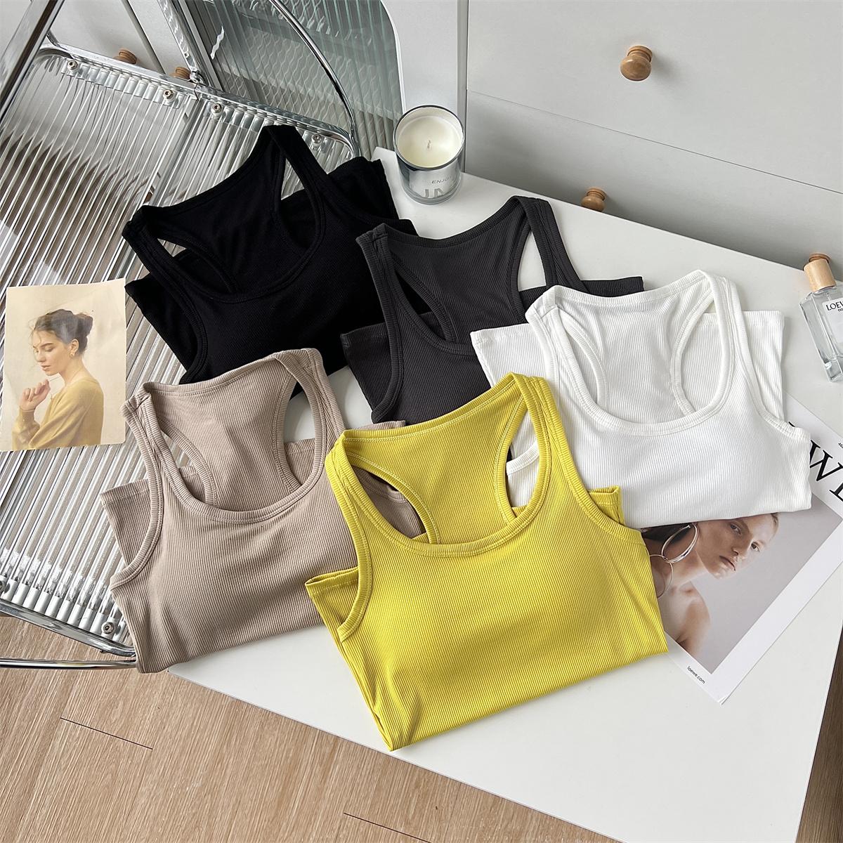 Camisola de verano para mujer, ropa interior de una pieza con almohadilla para el pecho, ropa interior de espalda de belleza, top fino de corte entallado que combina con todo.