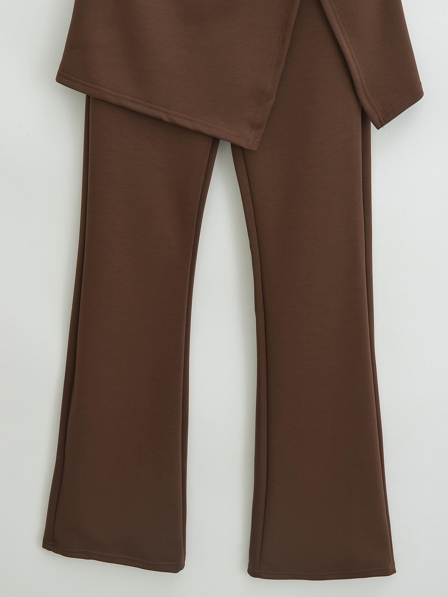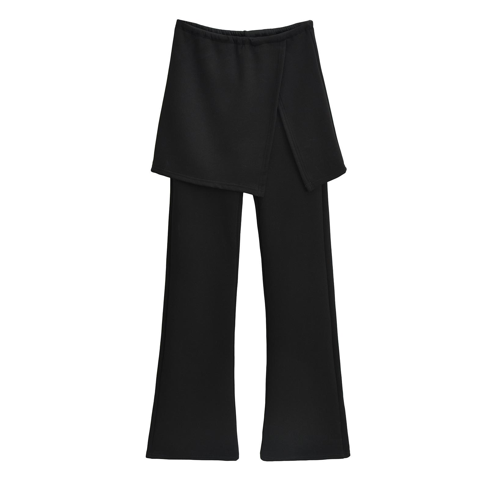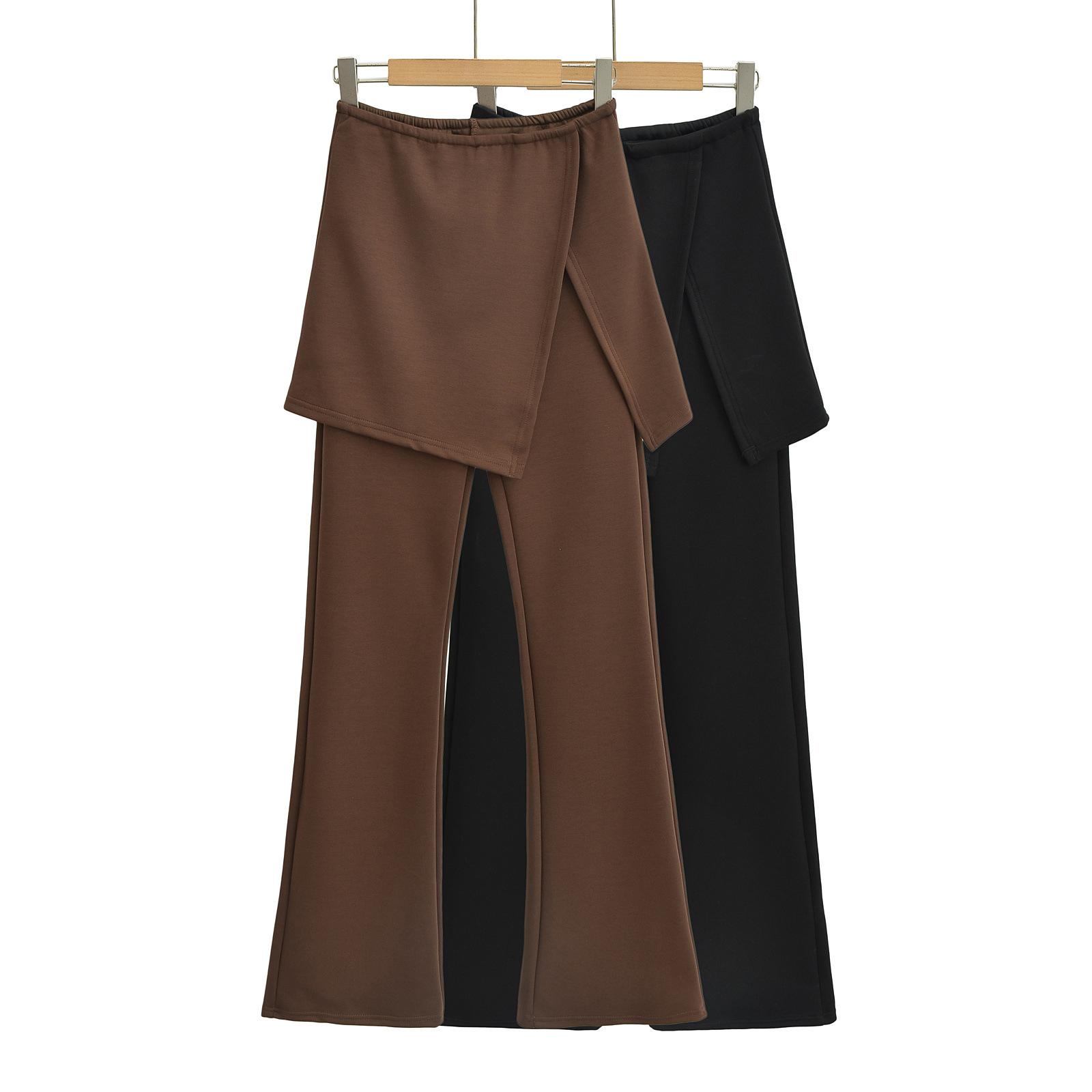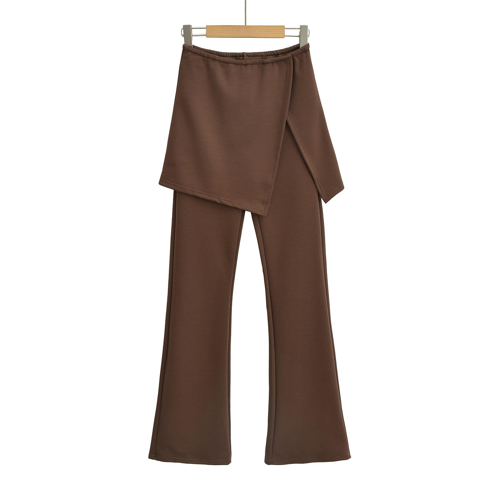 Pantalones acampanados ajustados de dos piezas falsos para mujer, otoño 2024, nuevos pantalones casuales ajustados de cintura alta