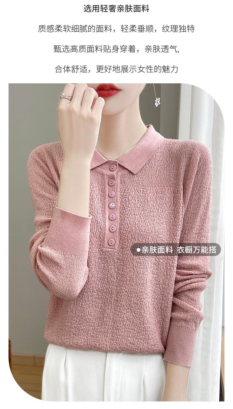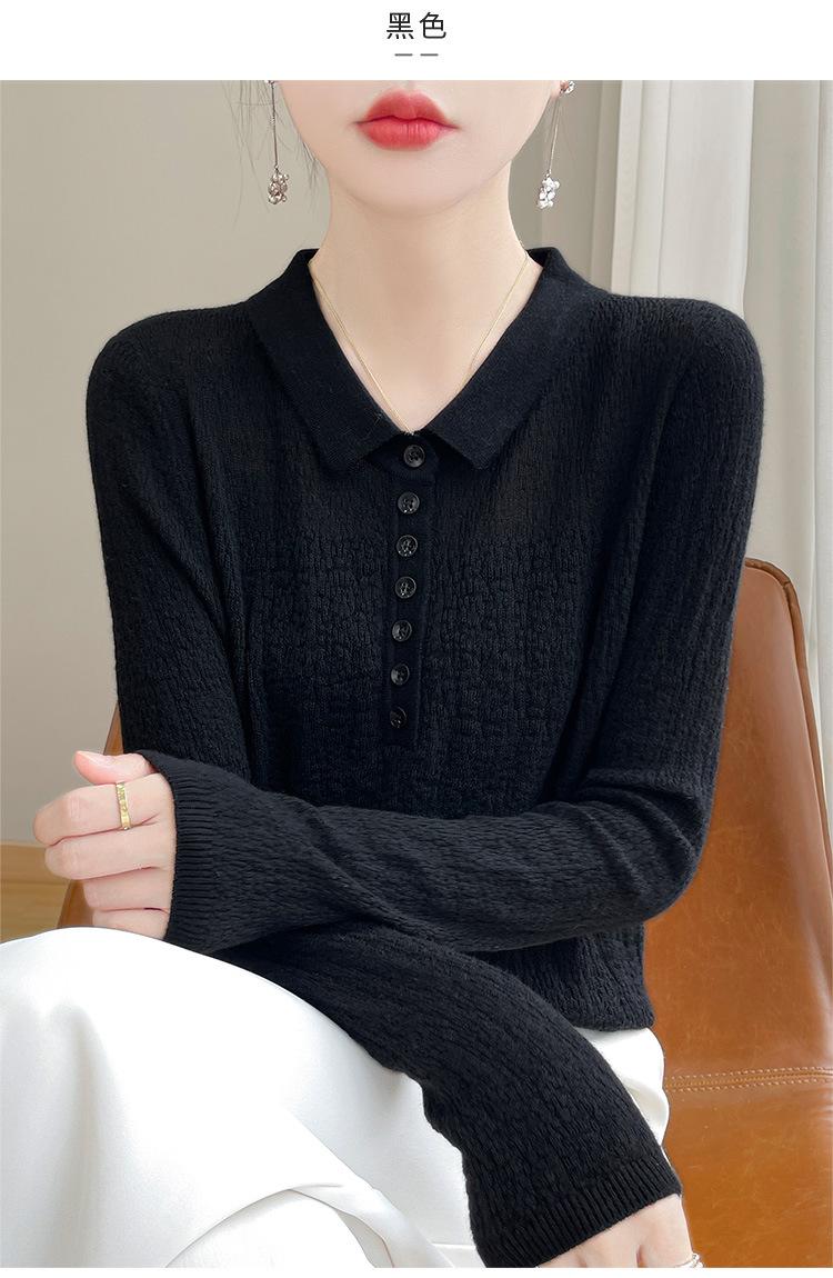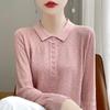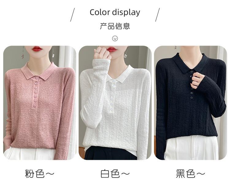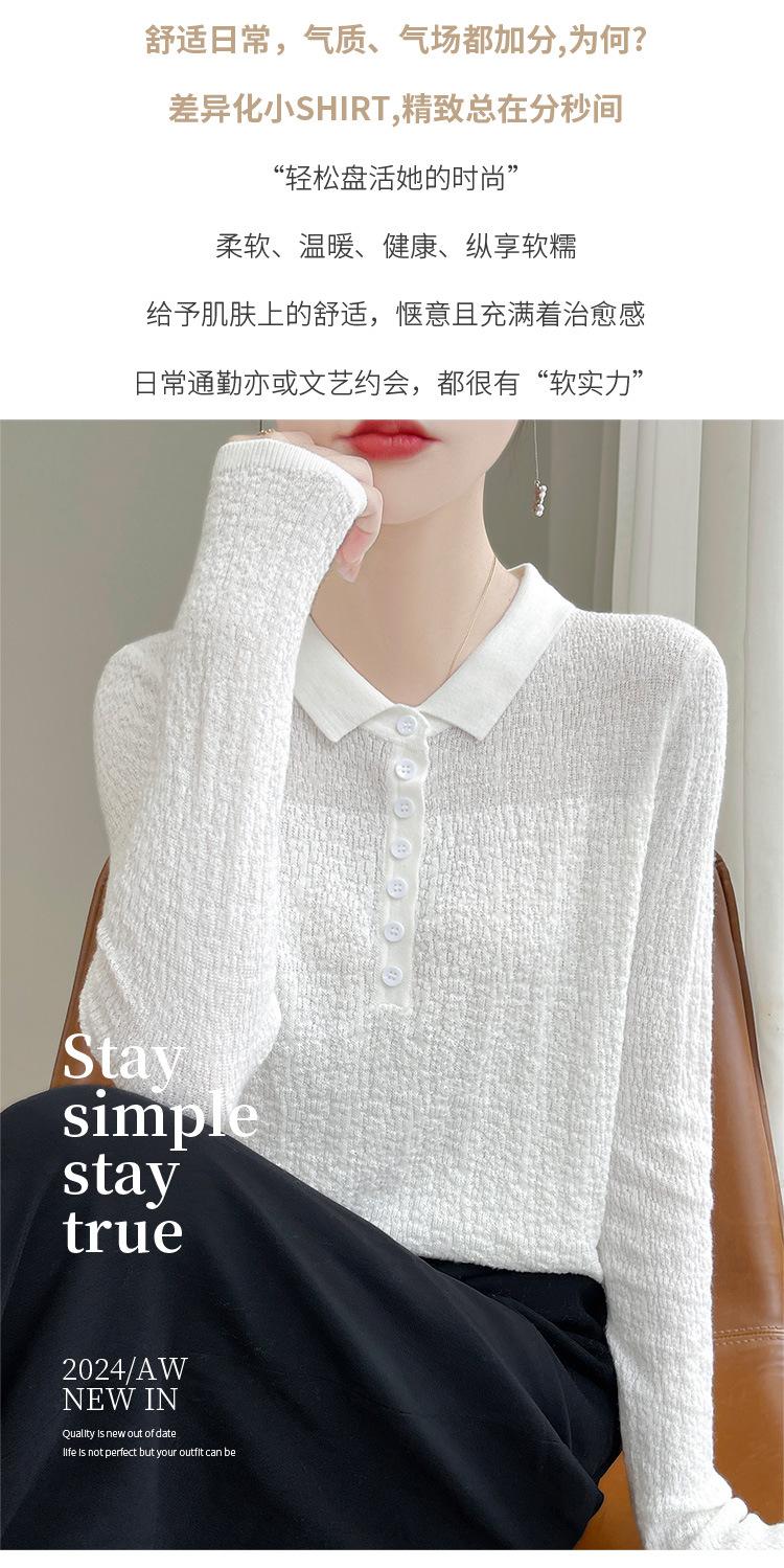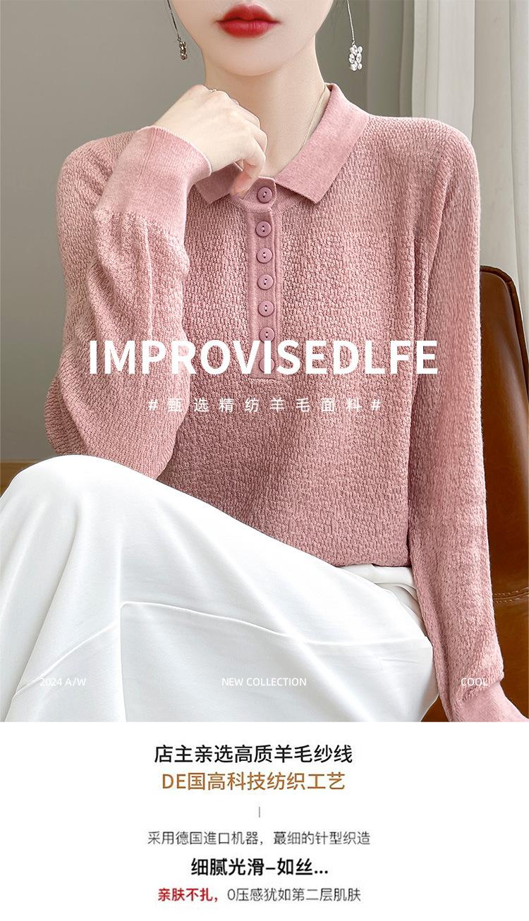 Camiseta Base de Cuello Polo de Otoño Top Delgado 2024 Nuevo Color Sólido Casual Delgado Suéter de Punto de Lana para Mujer